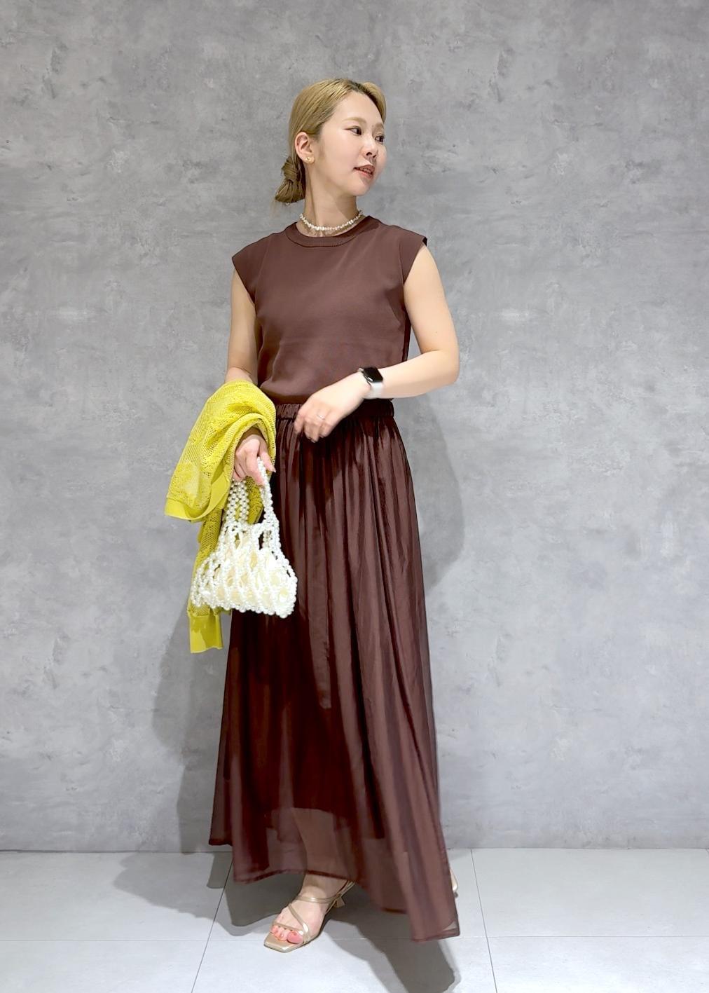 毎年大人気のノースリーブトップスです。肩先までは隠れるので腕を出すコーデも挑戦しやすいデザインです。