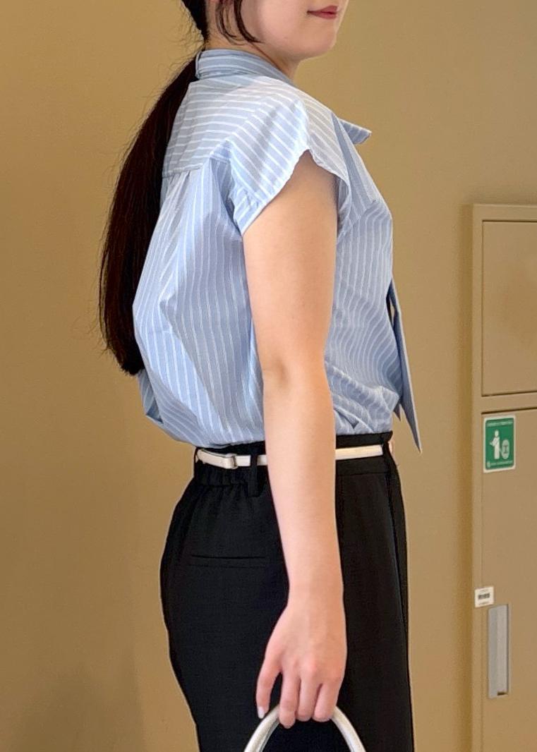 【防シワ】リボンフレンチスリーブシャツ