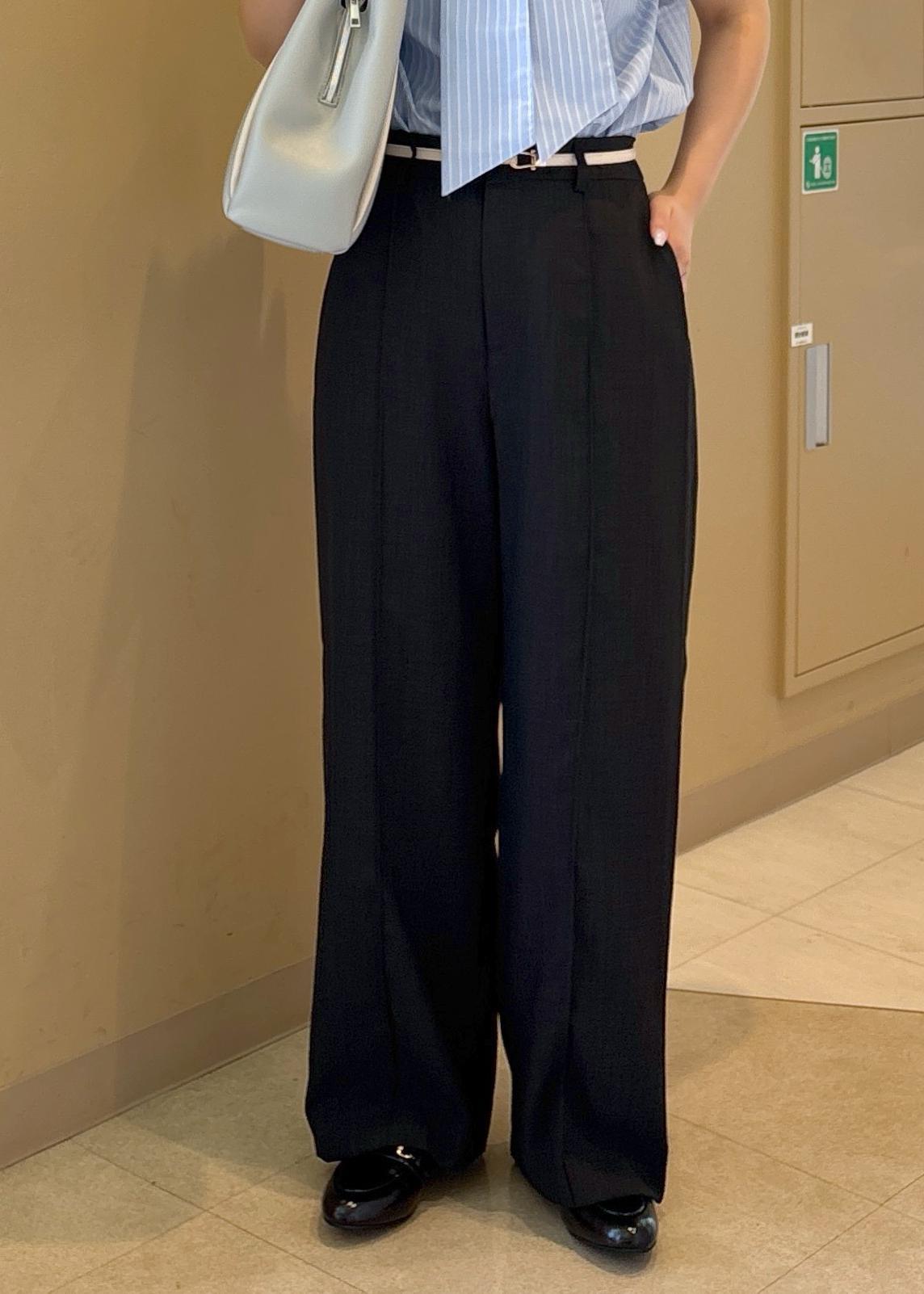 161cm38サイズで足の甲にかかる丈感です。ストンとしたストレートシルエットでボディラインを拾いにくく感じました。サラッと肌離れの良い素材感で夏場も履きやすい一本です。
