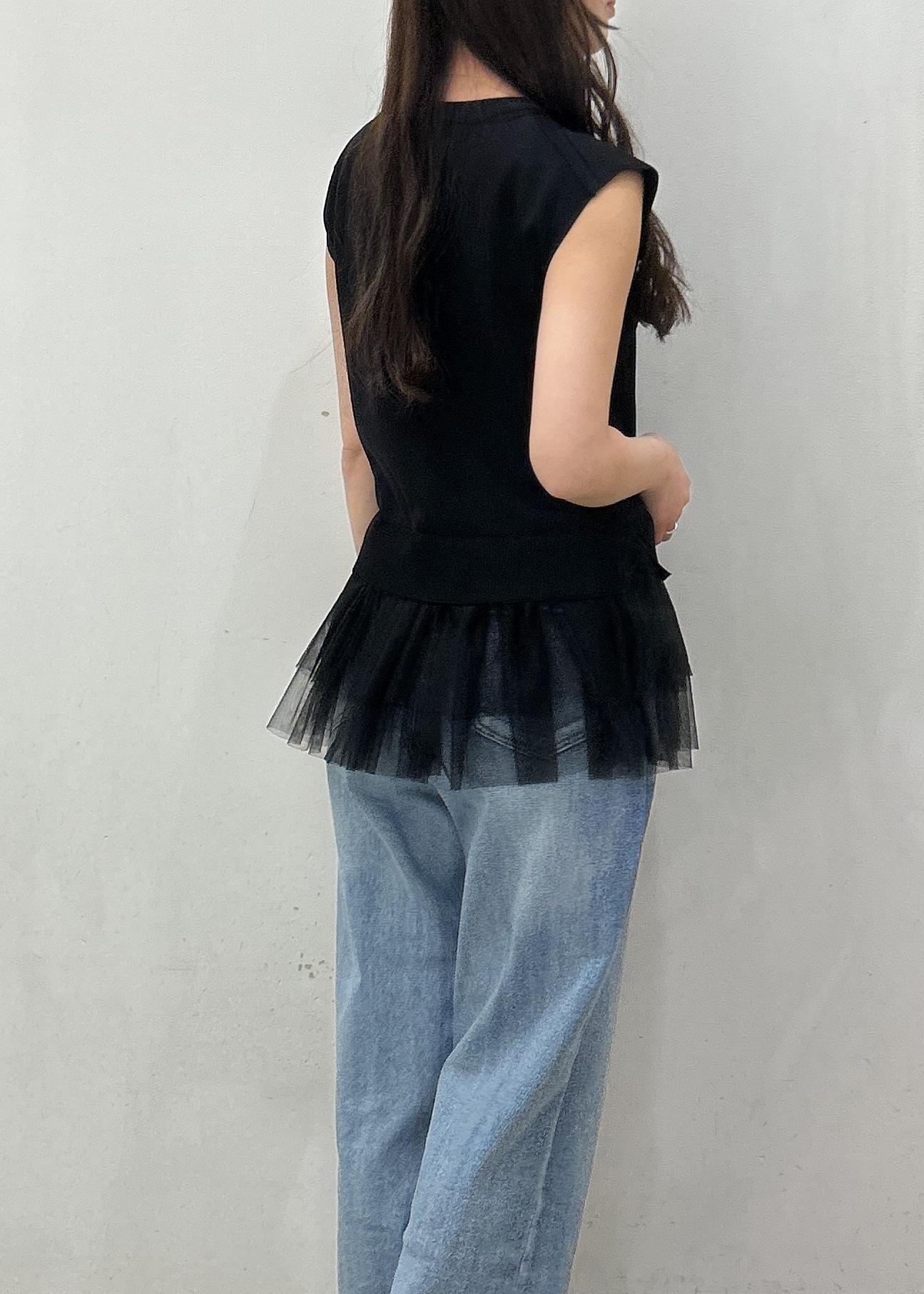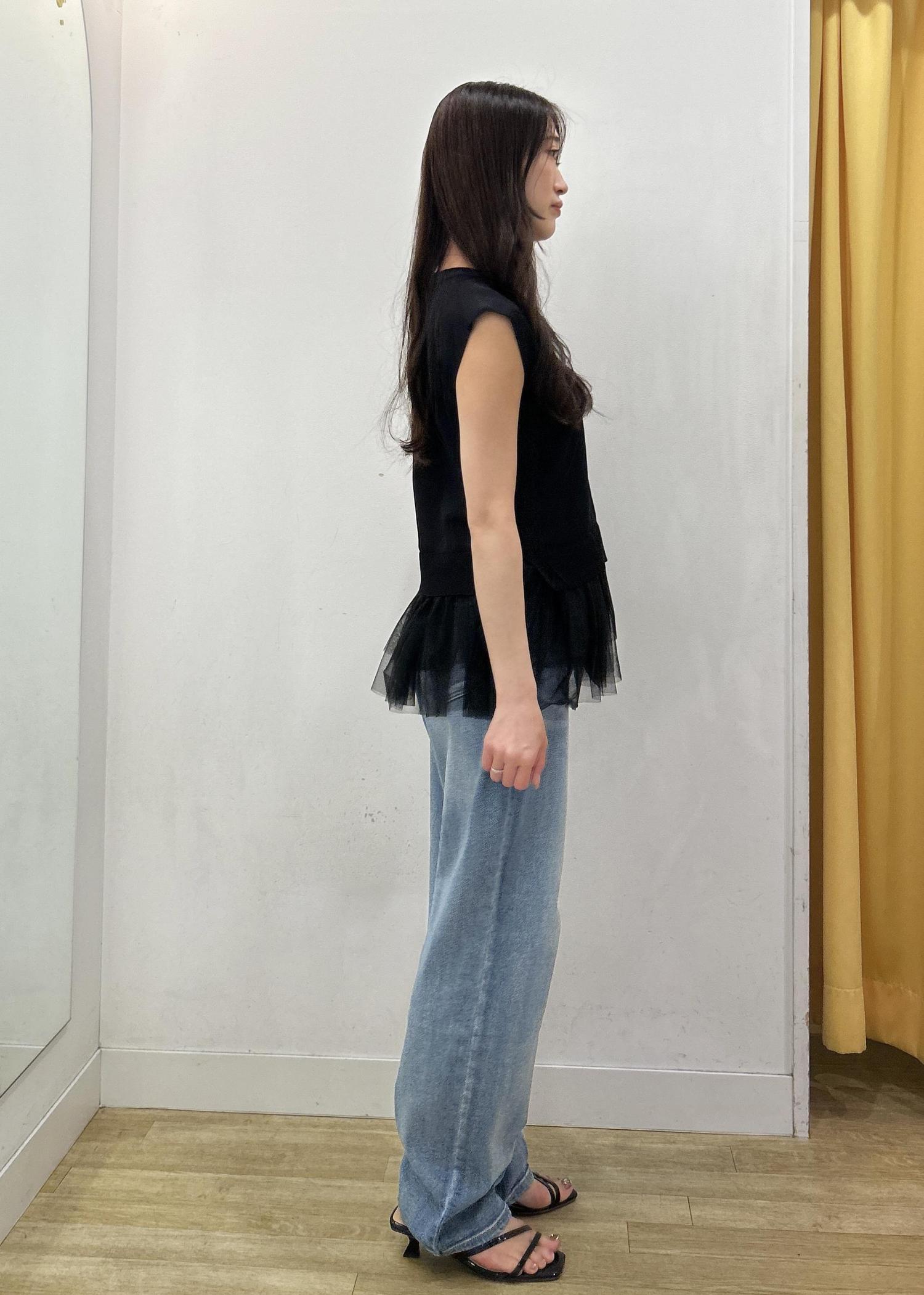 着丈はチュールのティアードで腰が隠れる程。