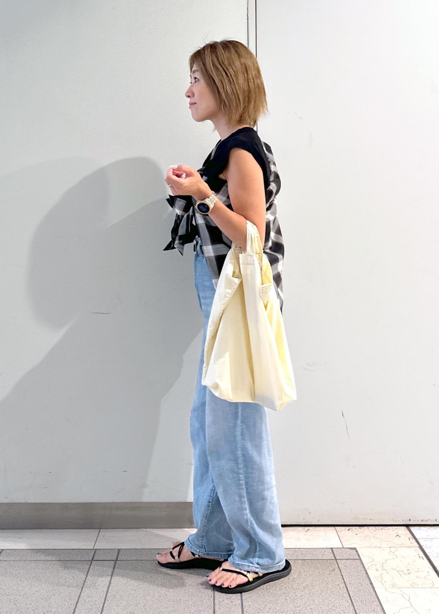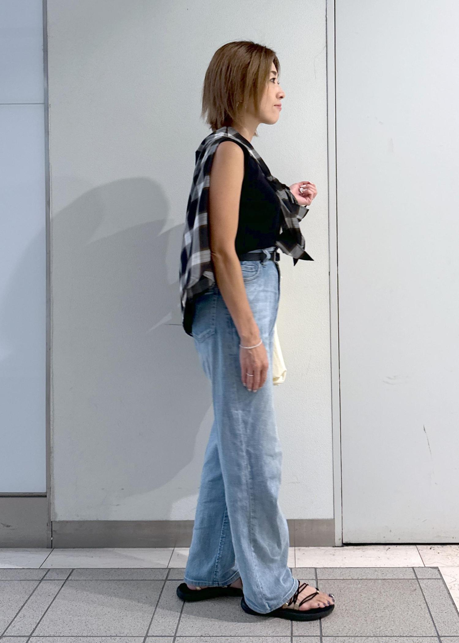 着丈もスッキリとしているので、スニーカーやフラットシューズの合わせもオススメです。 -