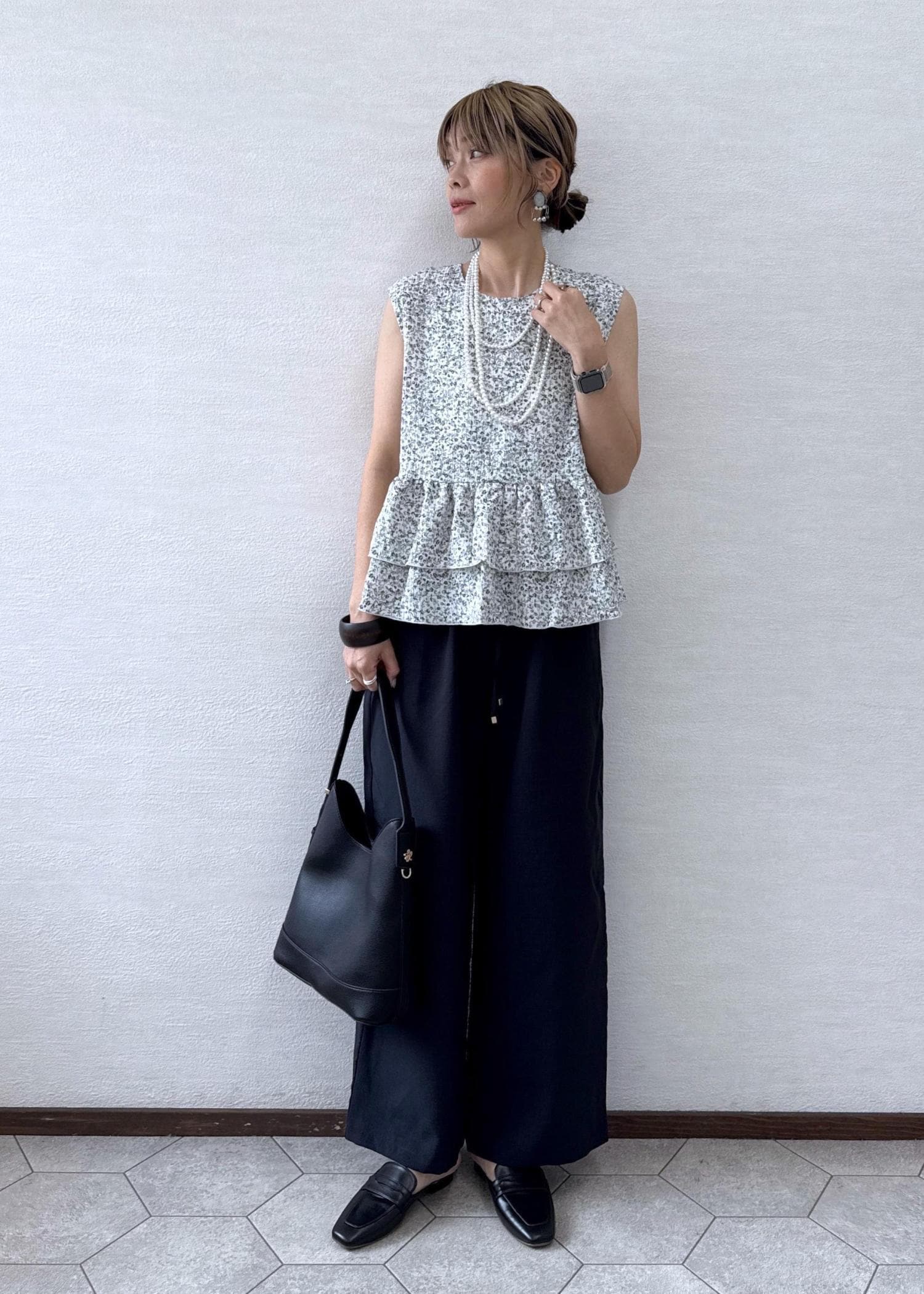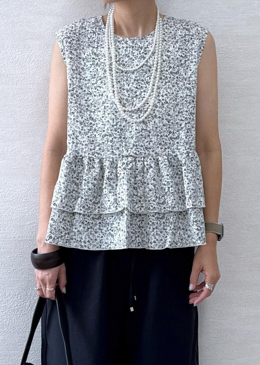 アウトレットROPÉ PICNIC小花柄ティアードゼロスリーブブラウスグレー / 38¥1,997レビューサラッとした生地感で、とても涼しく着心地抜群。
