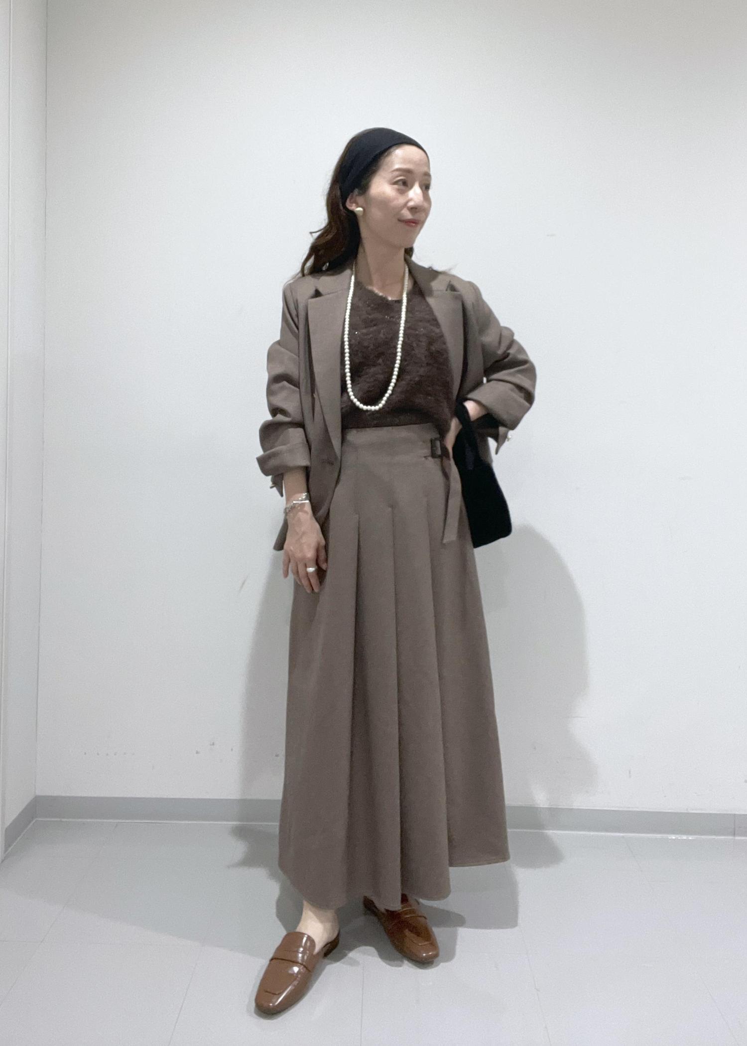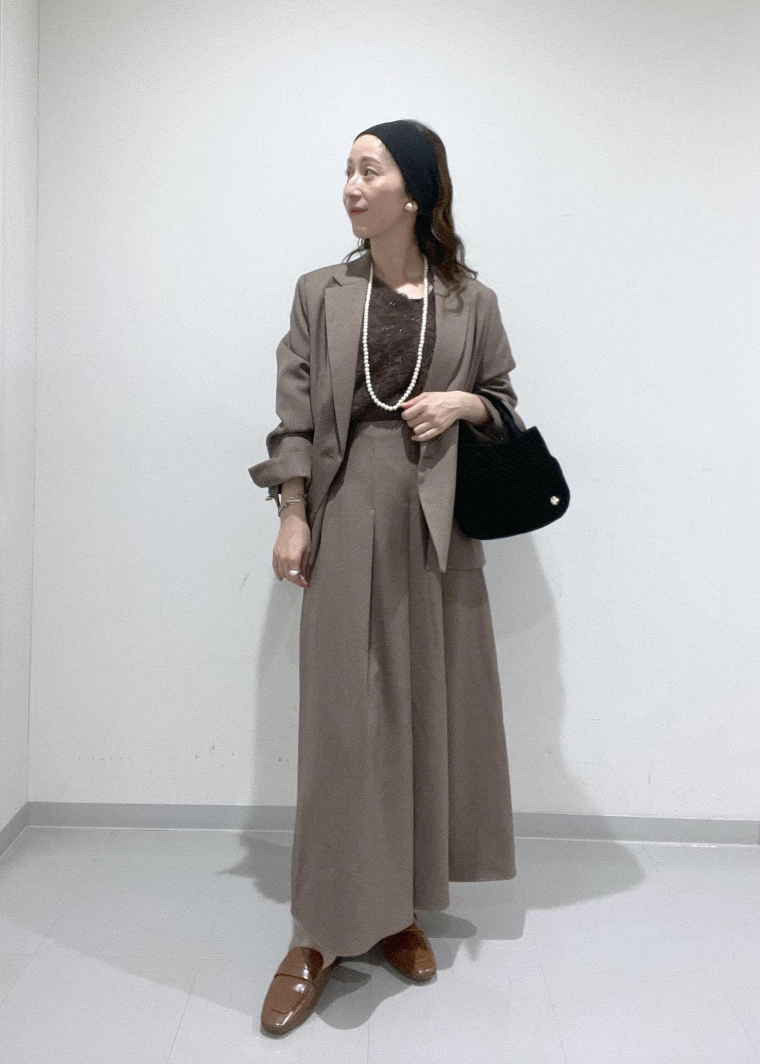 今回着ているジャケットは小柄さん向けのデザインの為、サイズ感も綺麗に着れました♫セットアップのスカートとのバランスもばっちり◎