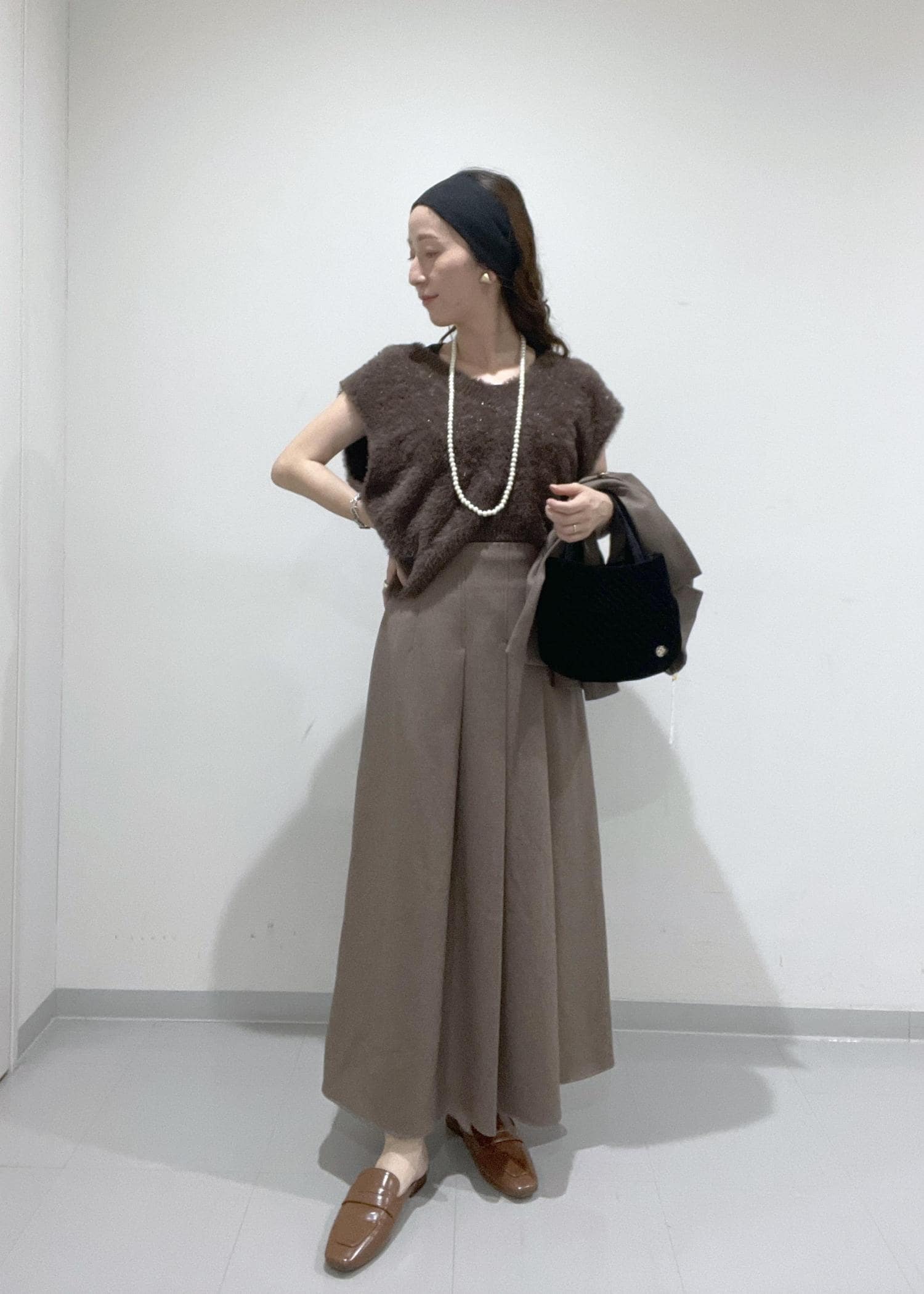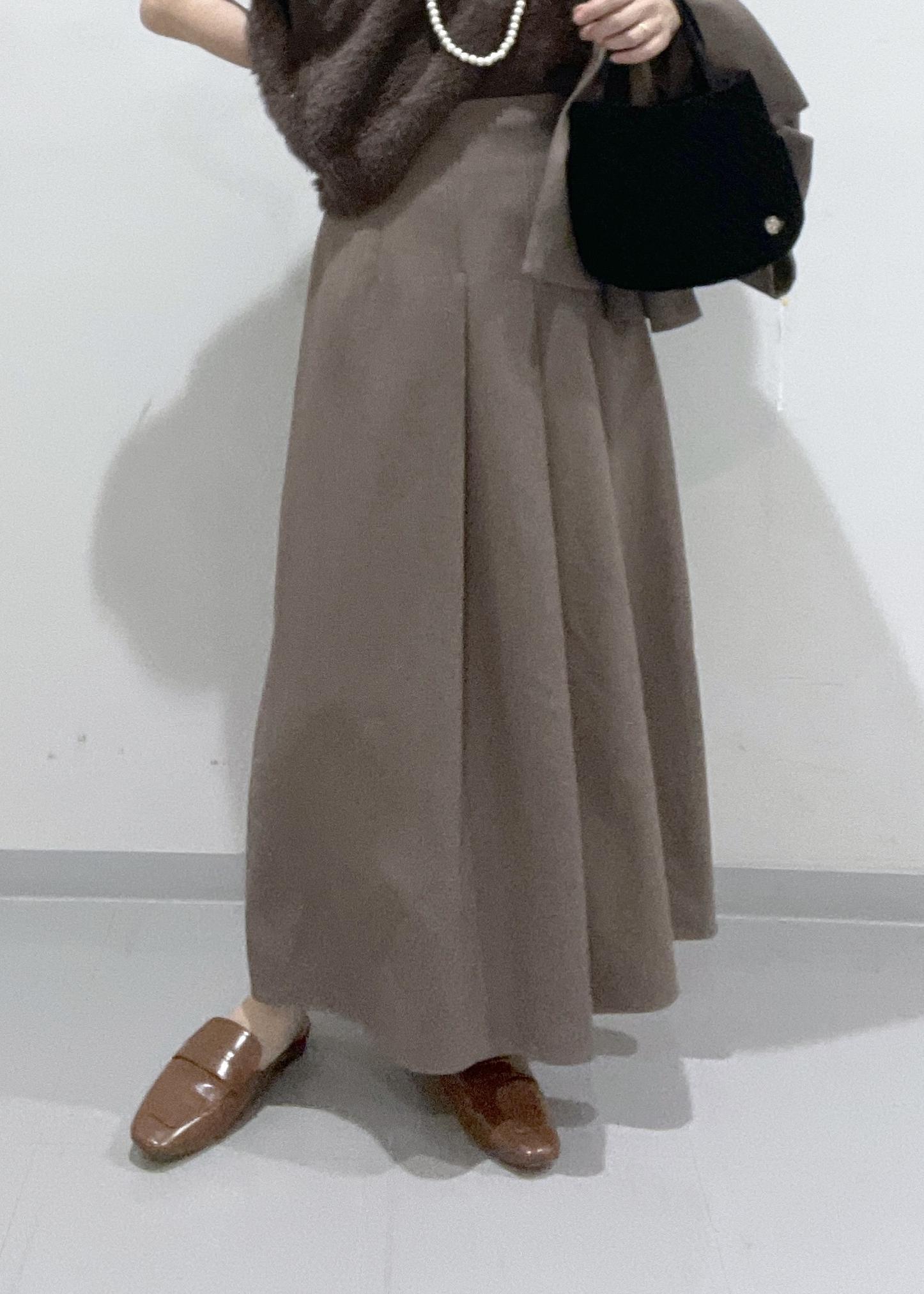 丈は足首までくるマキシ丈です。広がりすぎないシルエットの為、すっきりと着用して頂けます! -