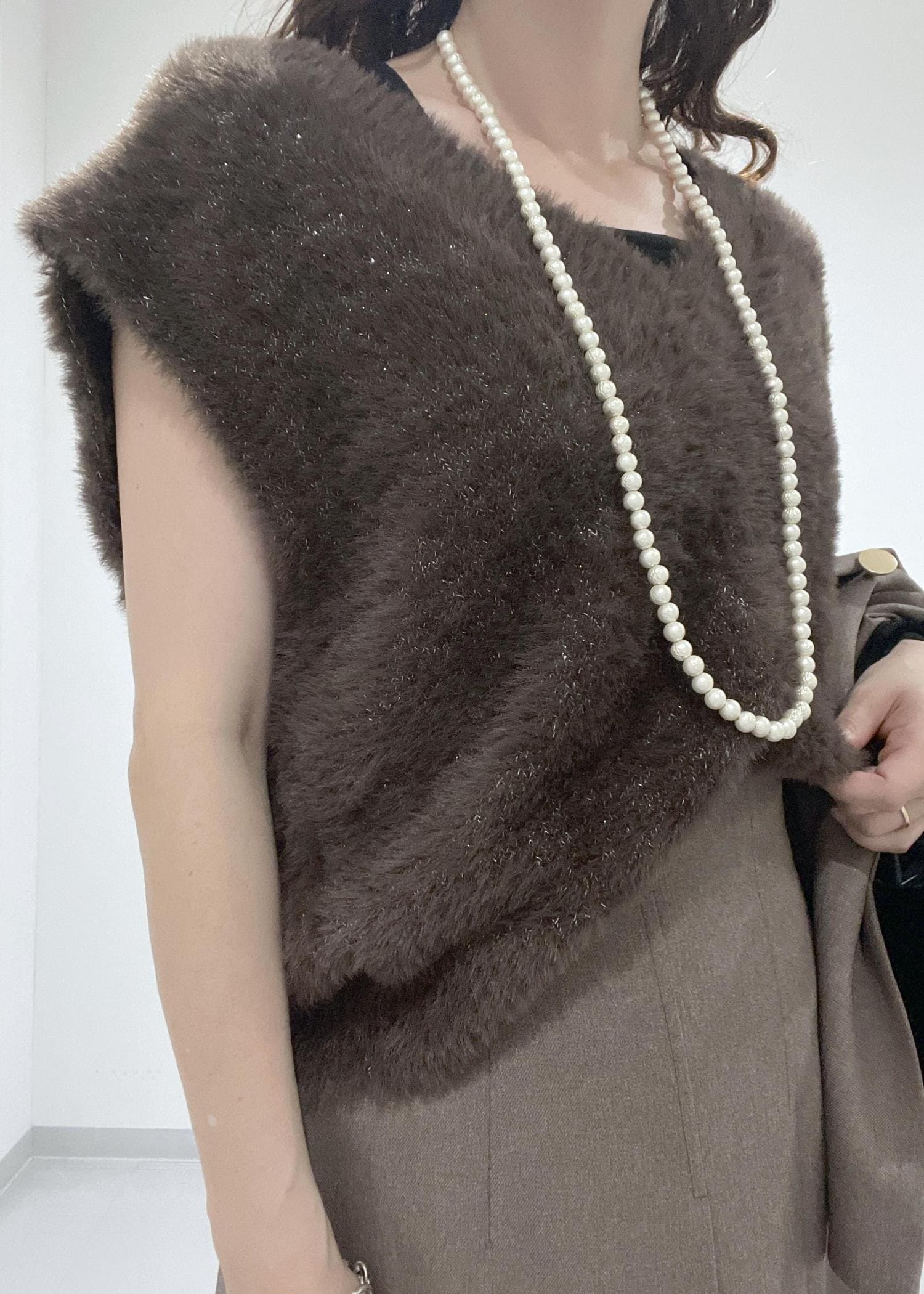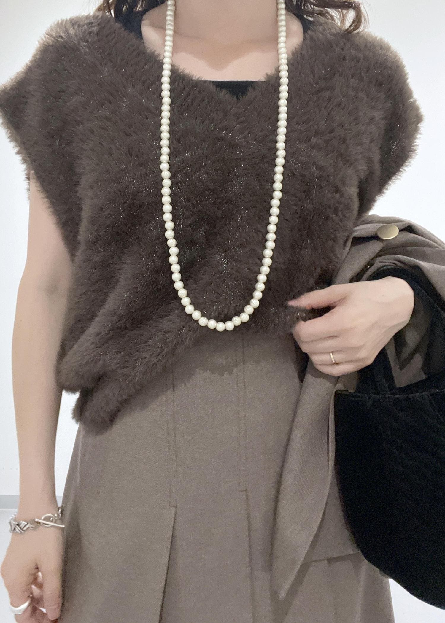 ROPÉ PICNICショートフェザーニットベストダークブラウン / F¥3,993レビュー肌触りがとても柔らかく、チクチク感が全くないのでキャミソールやタンクトップとの合わせでも、ストレスなく着て頂けます!ショート丈でコンパクトなシルエットなので、スカートやワイドパンツとの合わせが◎