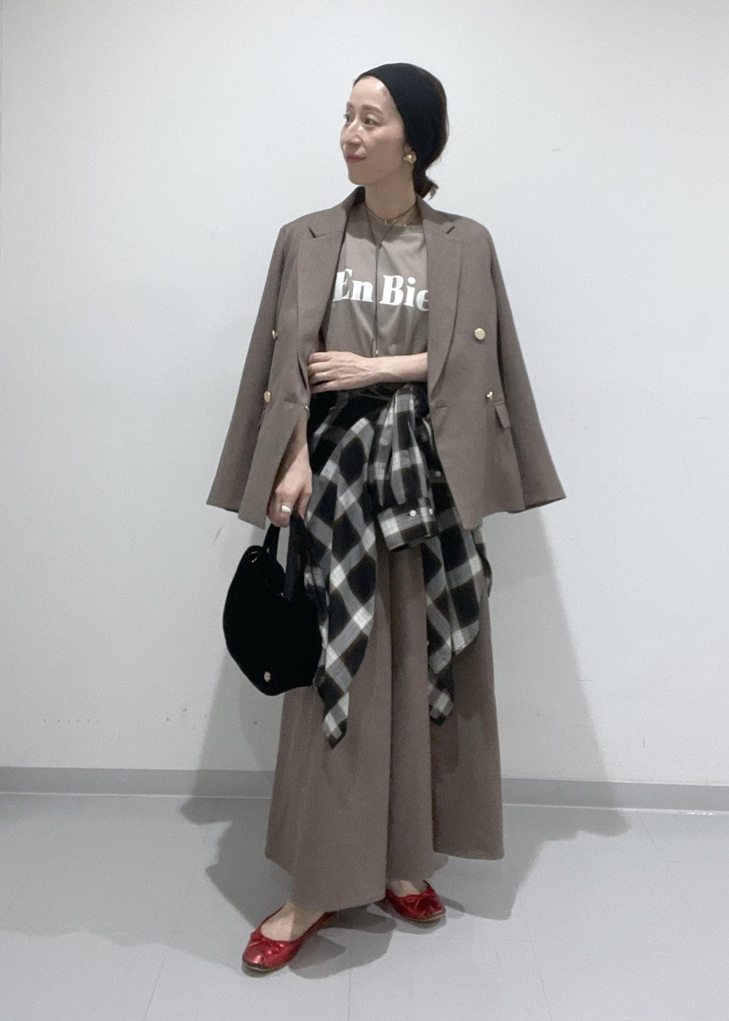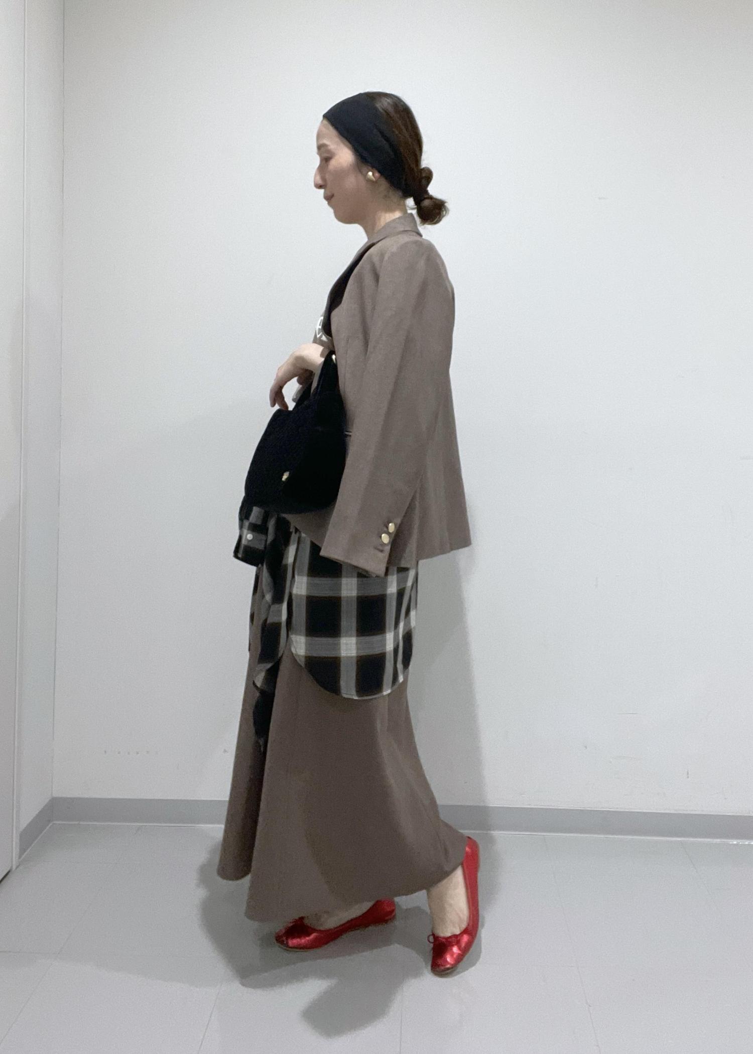 今回着ているジャケットは小柄さん向けのデザインの為、サイズ感も綺麗に着れました♫セットアップのスカートとのバランスもばっちり◎
