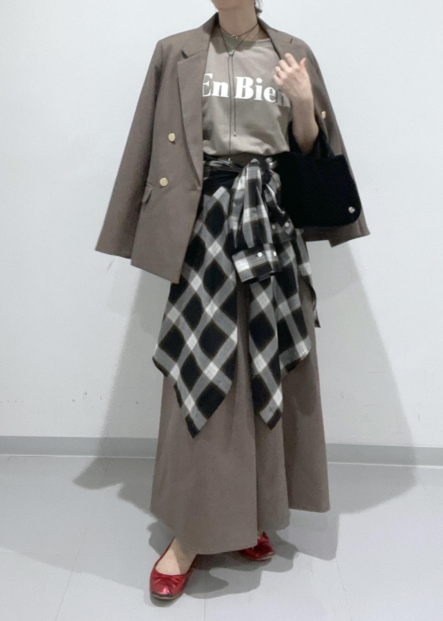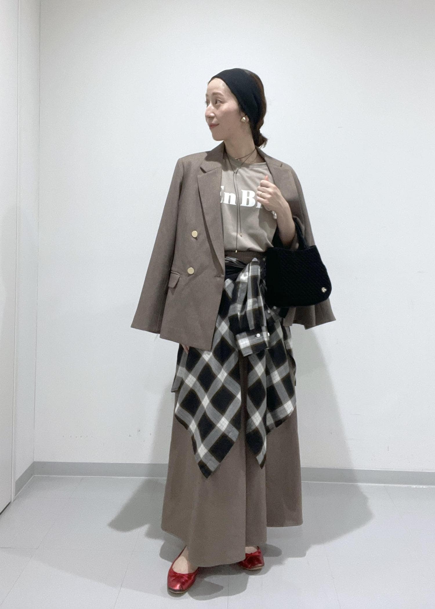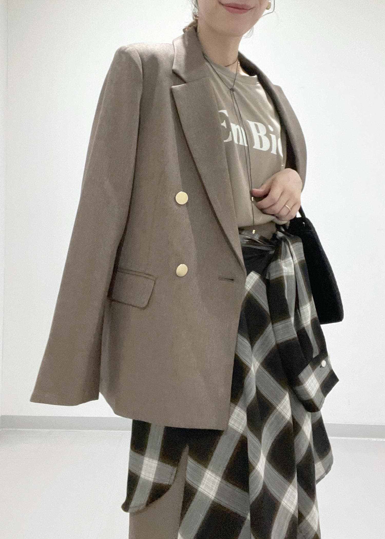 綺麗めなジャケットスタイルですが、あえてTシャツや、チェックシャツを合わせて、大人カジュアルにしてみました♫