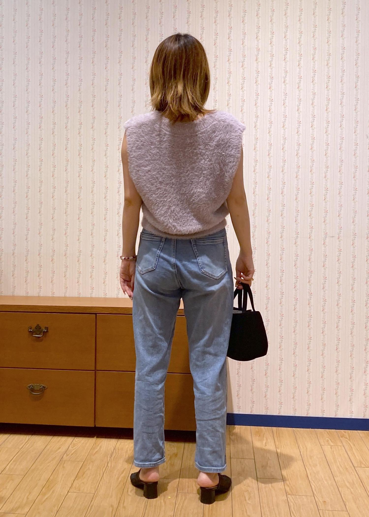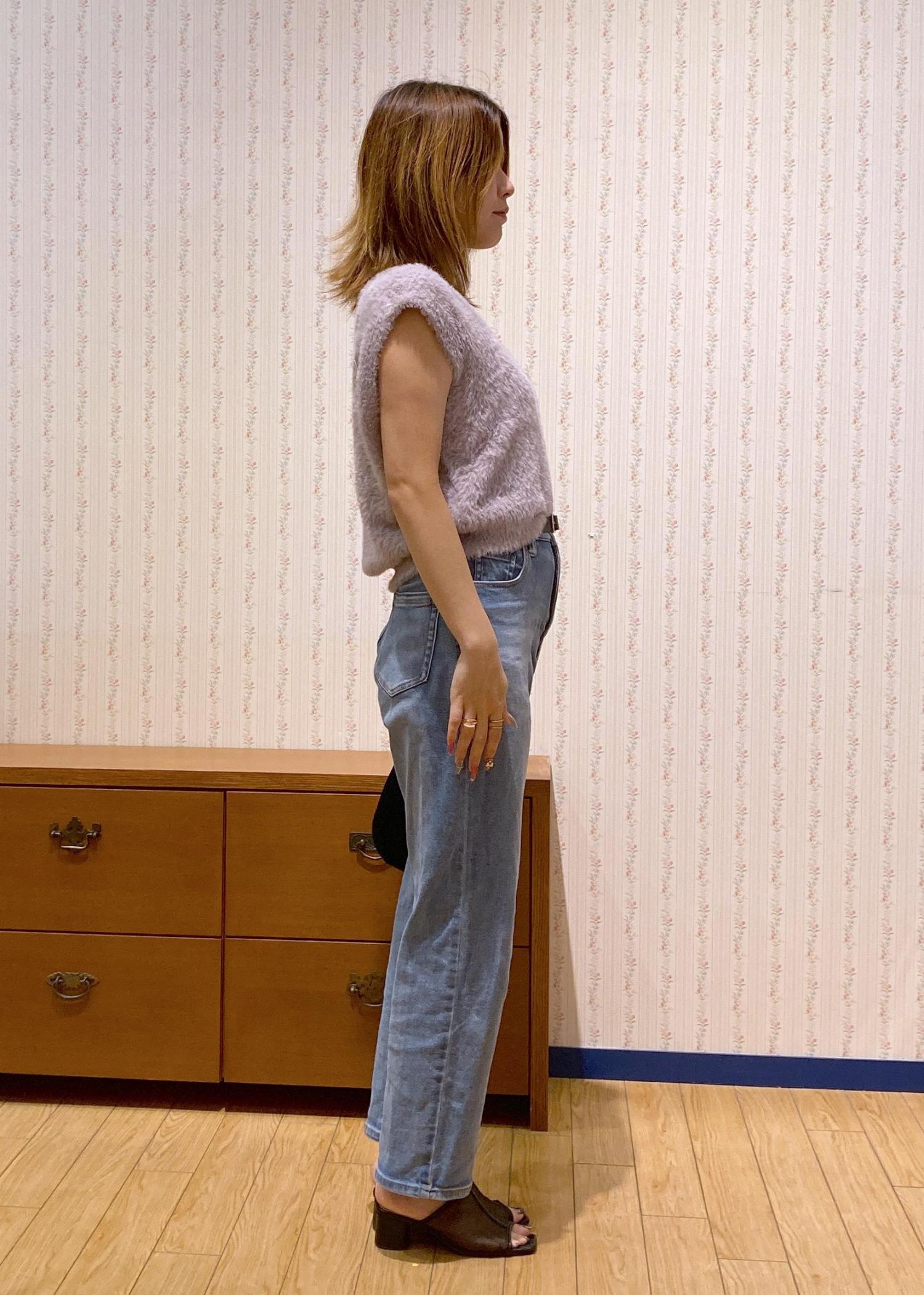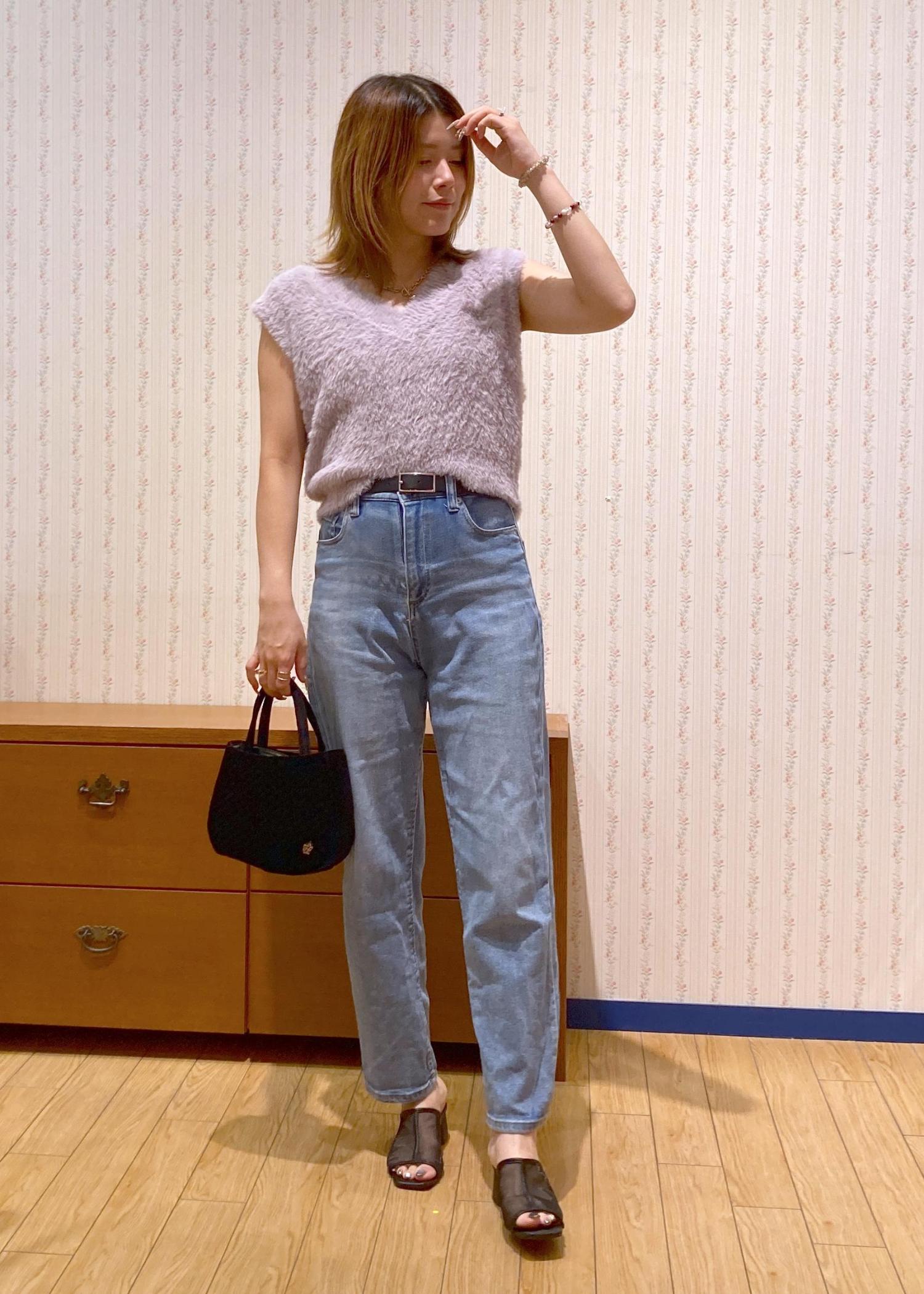 フェザーニットベスト×デニムのシンプルカジュアルコーデ