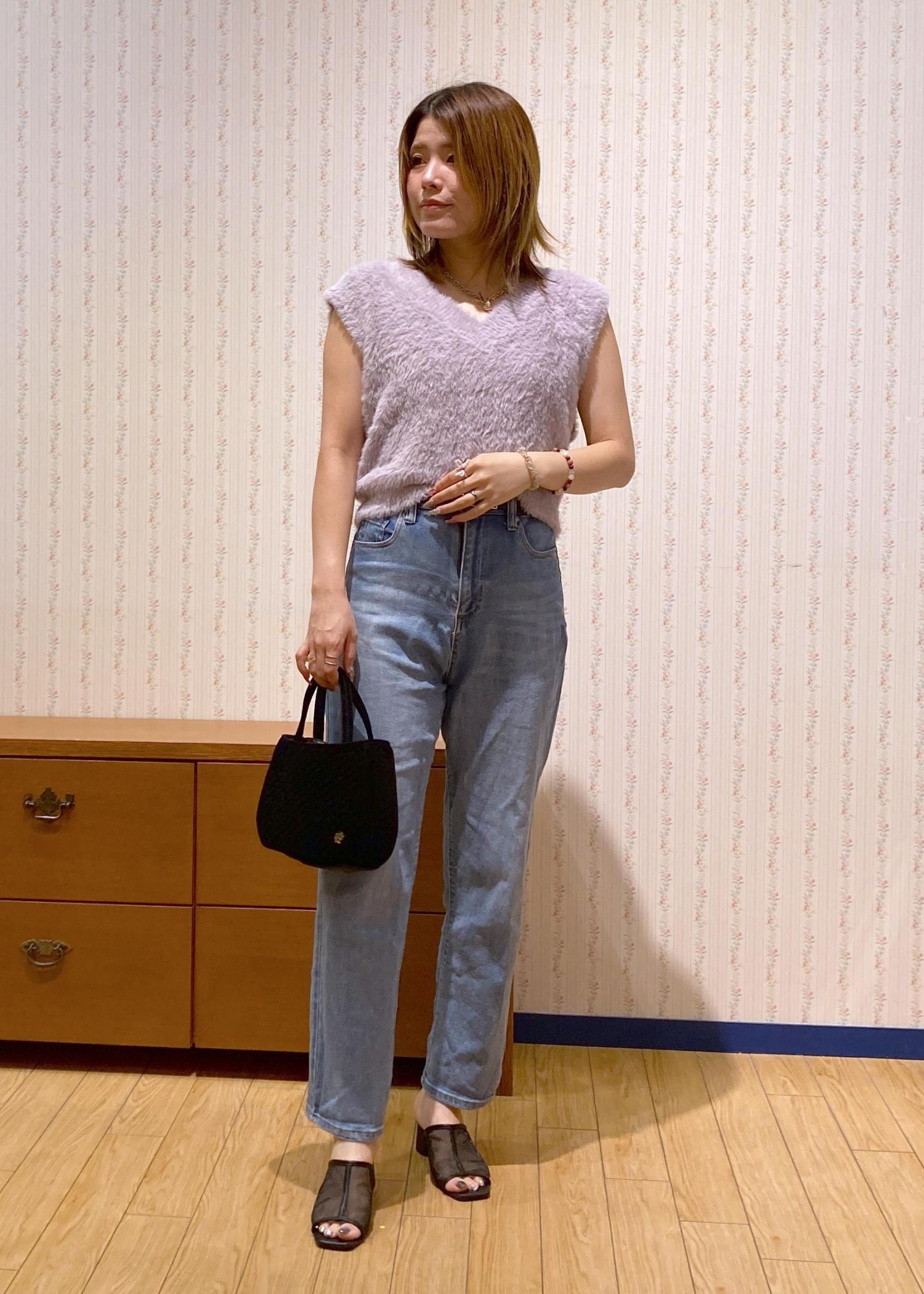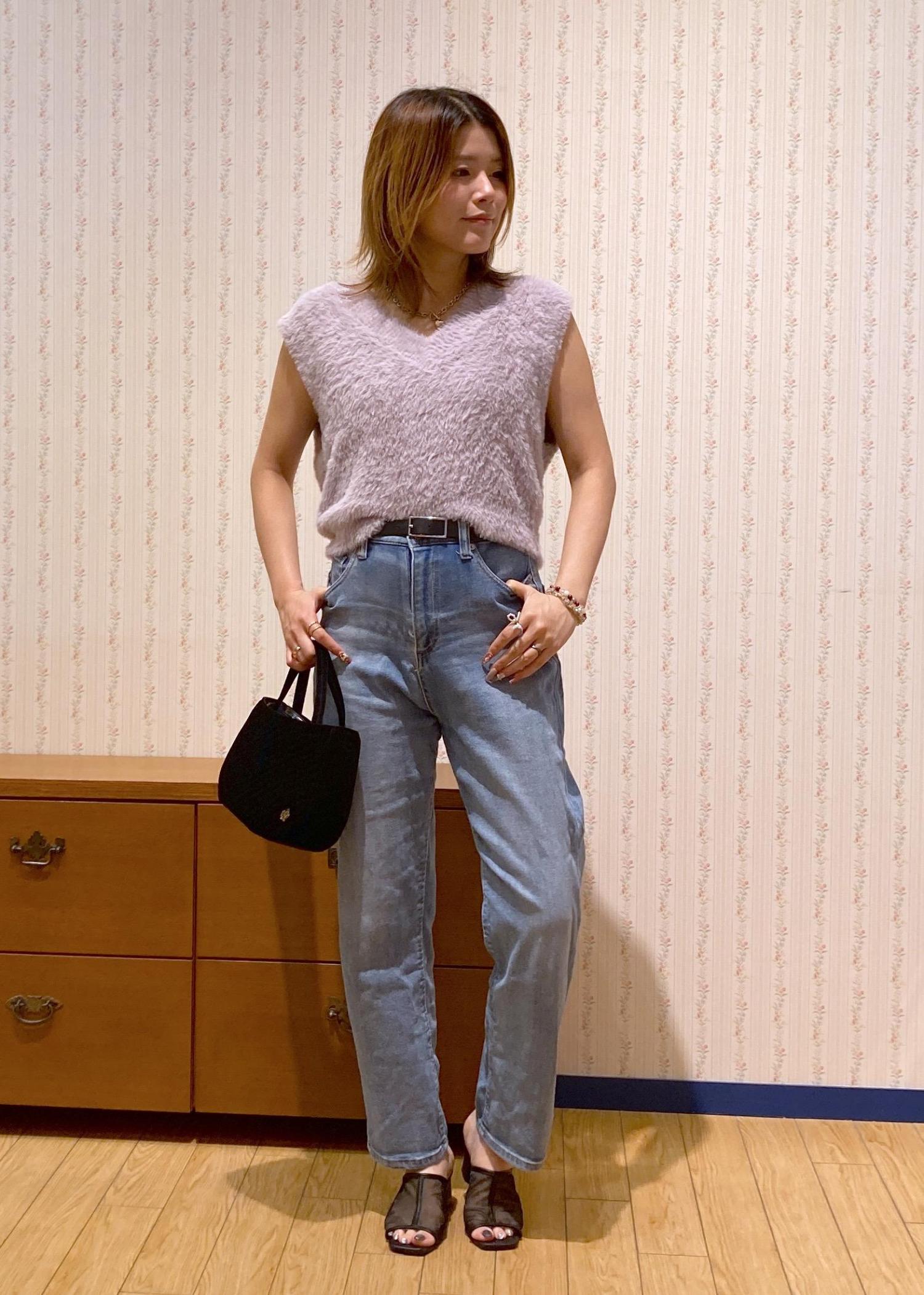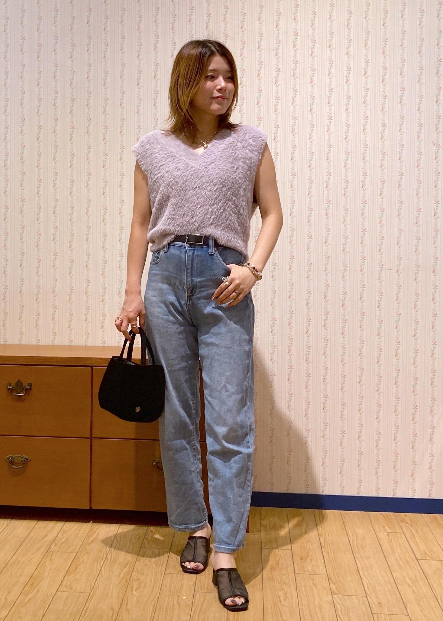 フェザーニットベスト×デニムのシンプルカジュアルコーデ