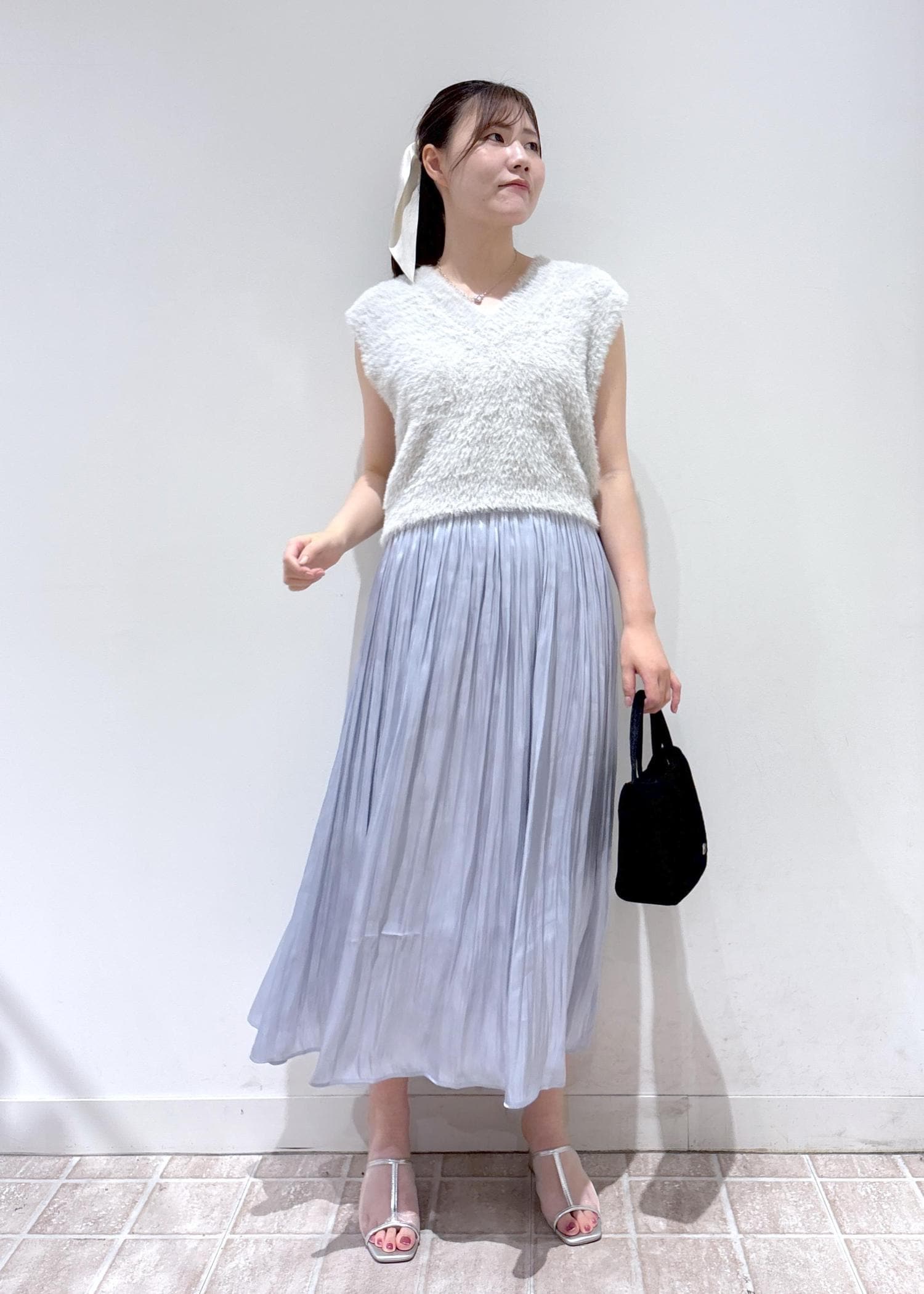 アウトレットROPÉ PICNICシャイニーリラックスプリーツスカートサックス / 38¥2,992レビューさらりとした生地感で肌離れが良いです。秋を感じる暖かみのあるカラーで季節の変わり目にもおすすめです◎ウエストゴムで締め付けもなく楽な気心地です。着丈はふくらはぎを覆う丈感です。