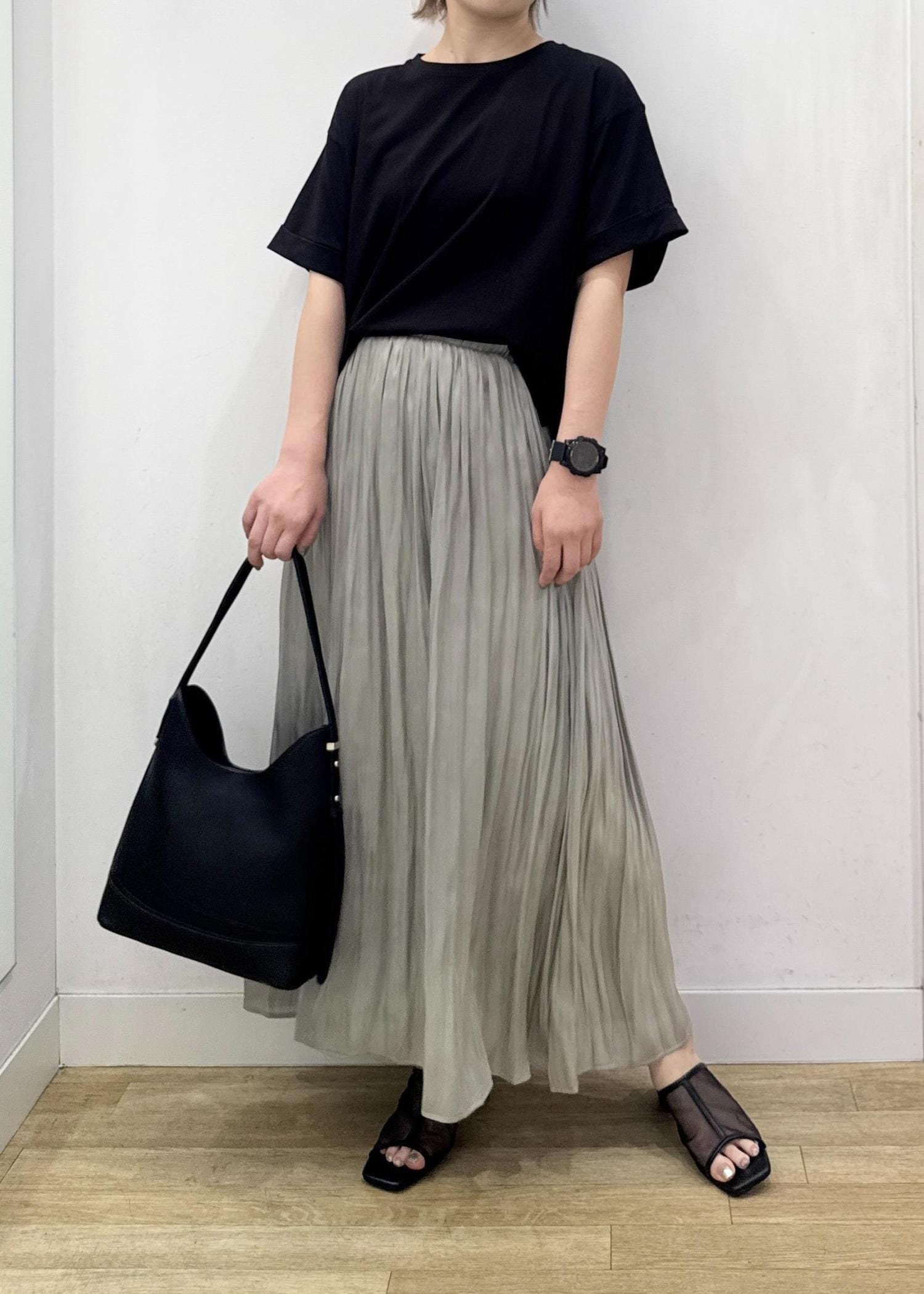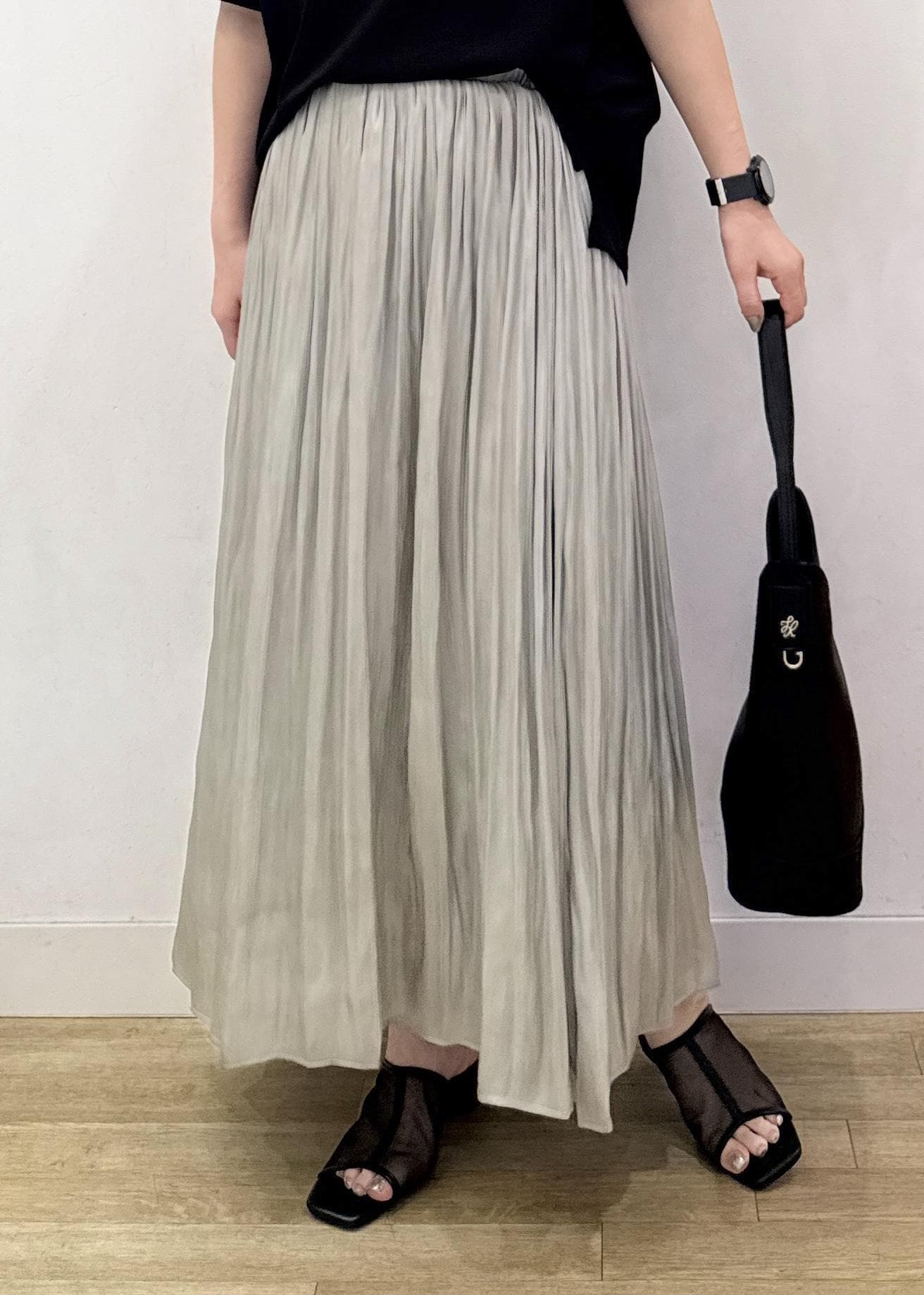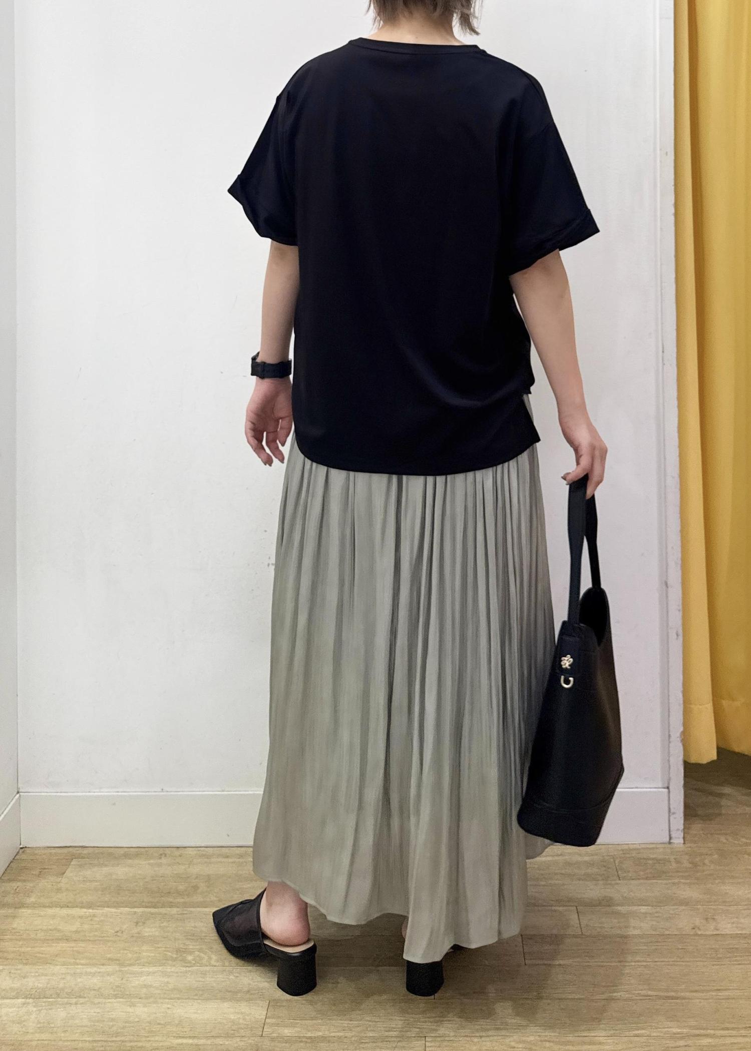 細かめのプリーツデザインなので、ボリューム感も抑えめなキレイなフレアシルエットで穿いていただけます。 -