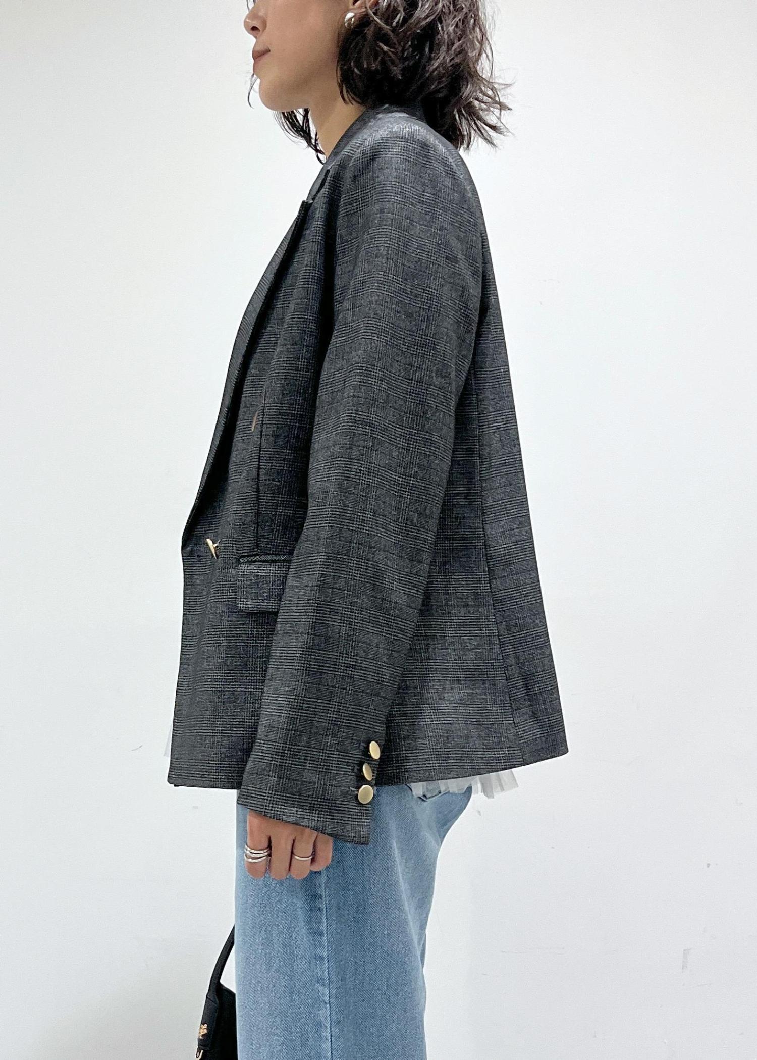 グレンチェックのジャケットとライトブルーデニムがいい塩梅でカジュアルダウンさせてくれるので、大人カジュアルなジャケットスタイルにぴったりです。
