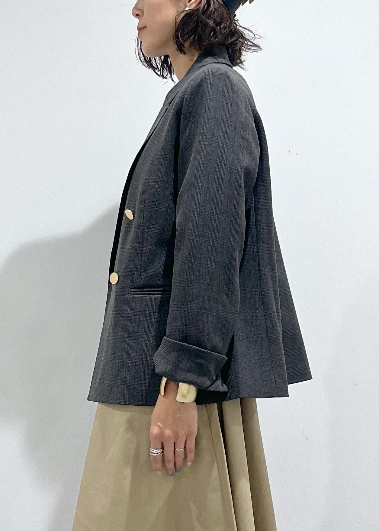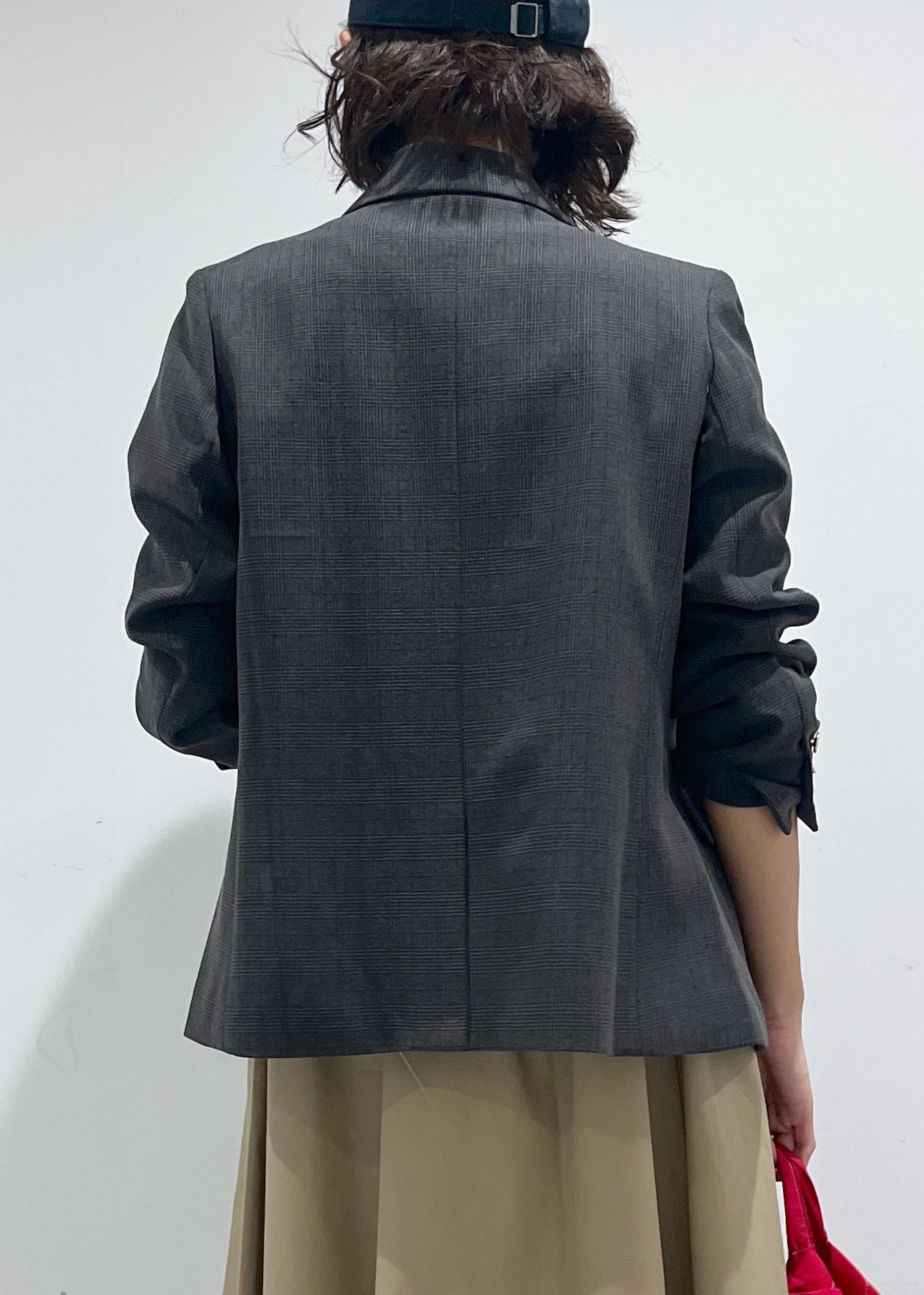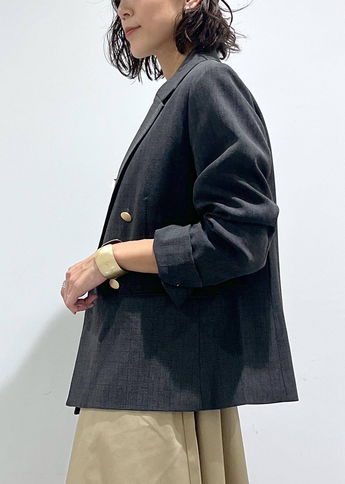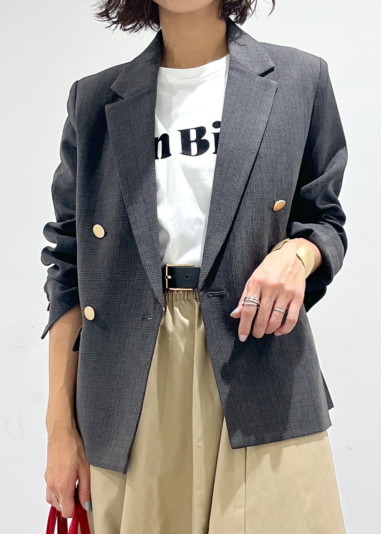 グレンチェックのジャケットとパリッと感のあるスカートがハンサムレディなフレンチカジュアルスタイルに。