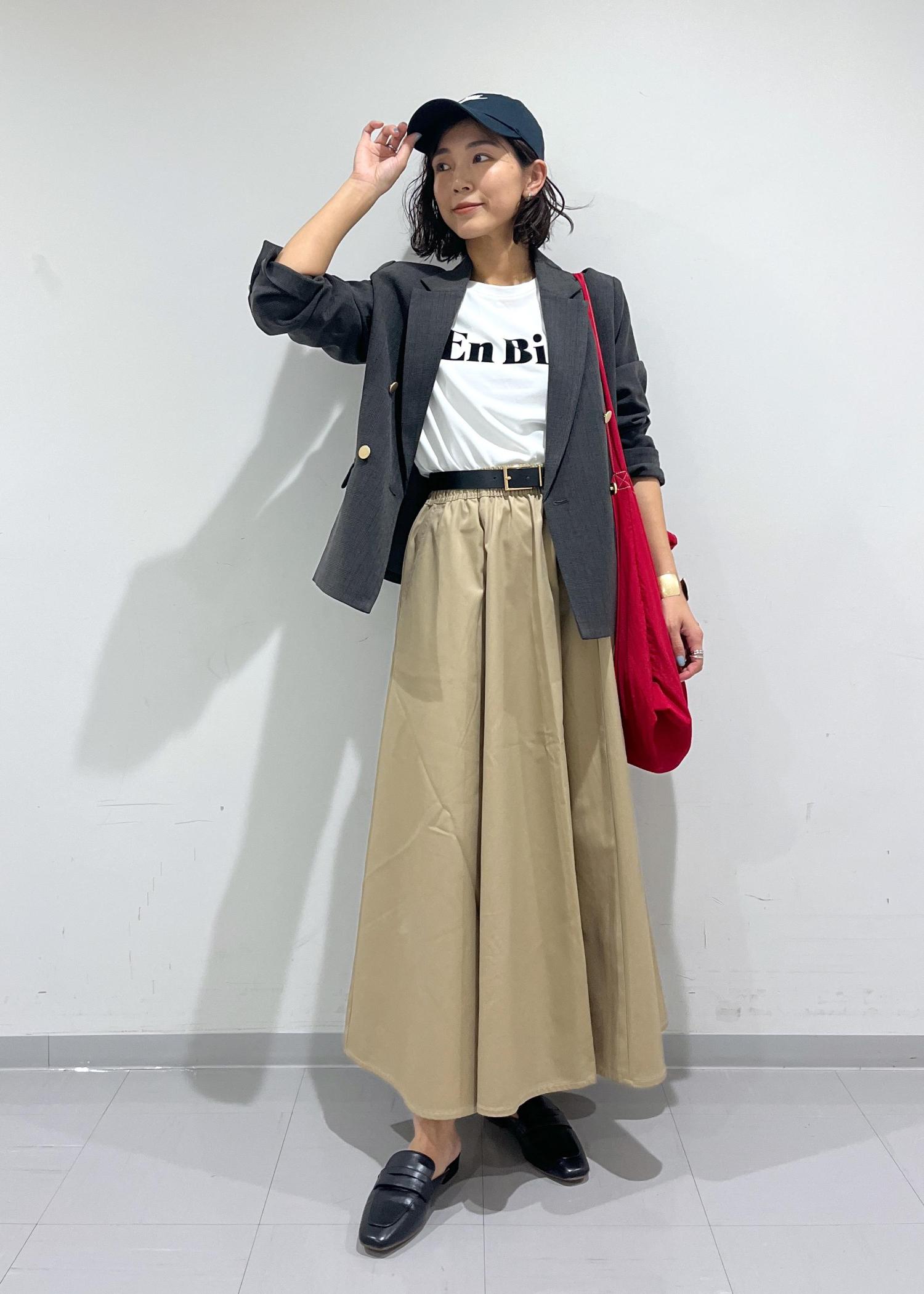 シンプルにTシャツと合わせてフレンチカジュアルな着こなしがおすすめです。