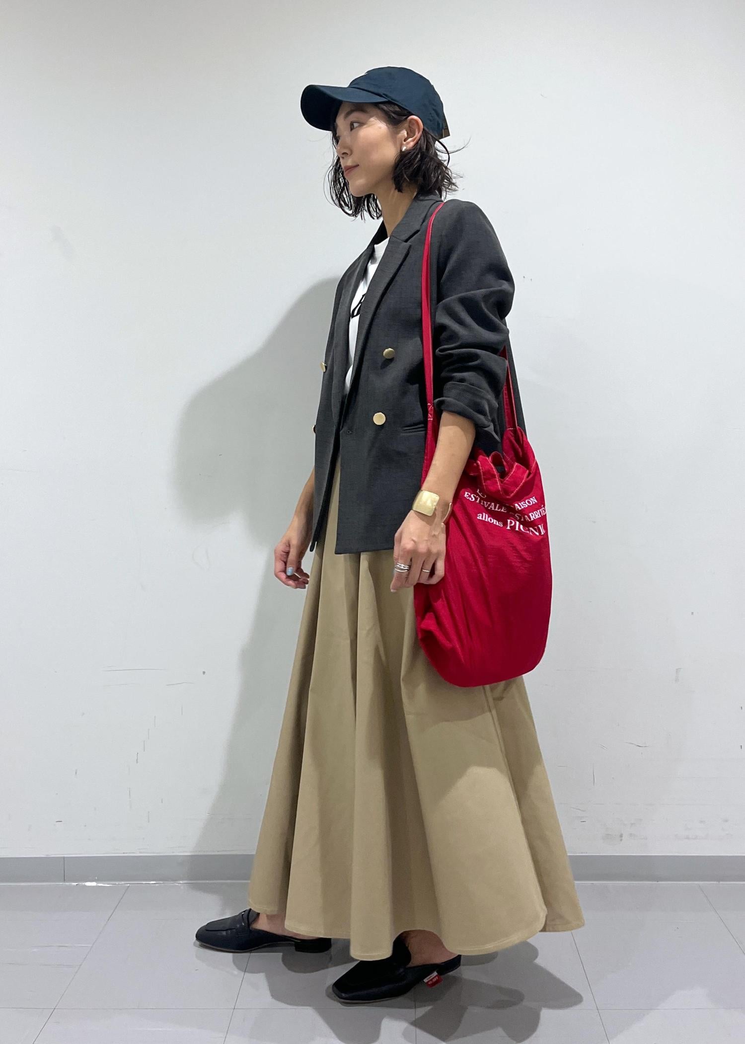 パリッとしたハリのある生地で、贅沢なボリューム感の主役級スカートです。