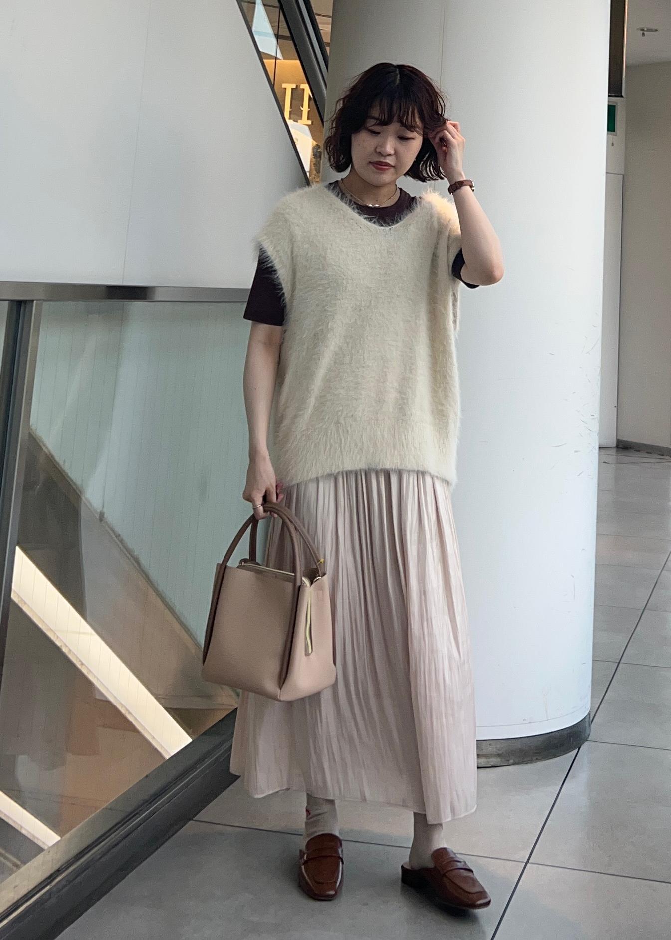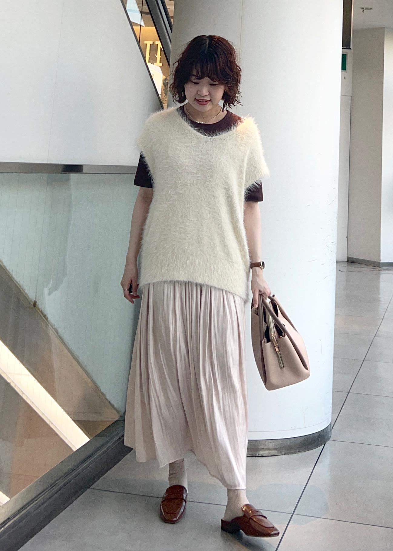 秋感がでる、ファーベストをメインにコーデを組みました。