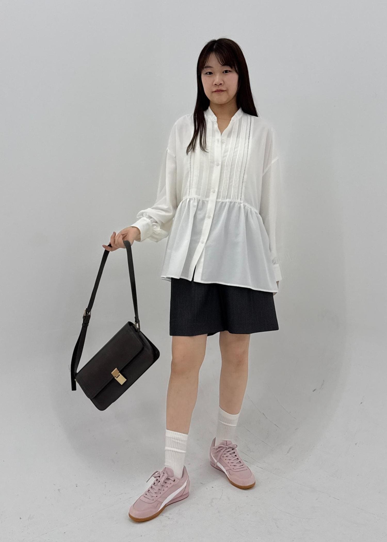 フロントのピンタックデザインが華やかで上品な印象を与えてくれます。
