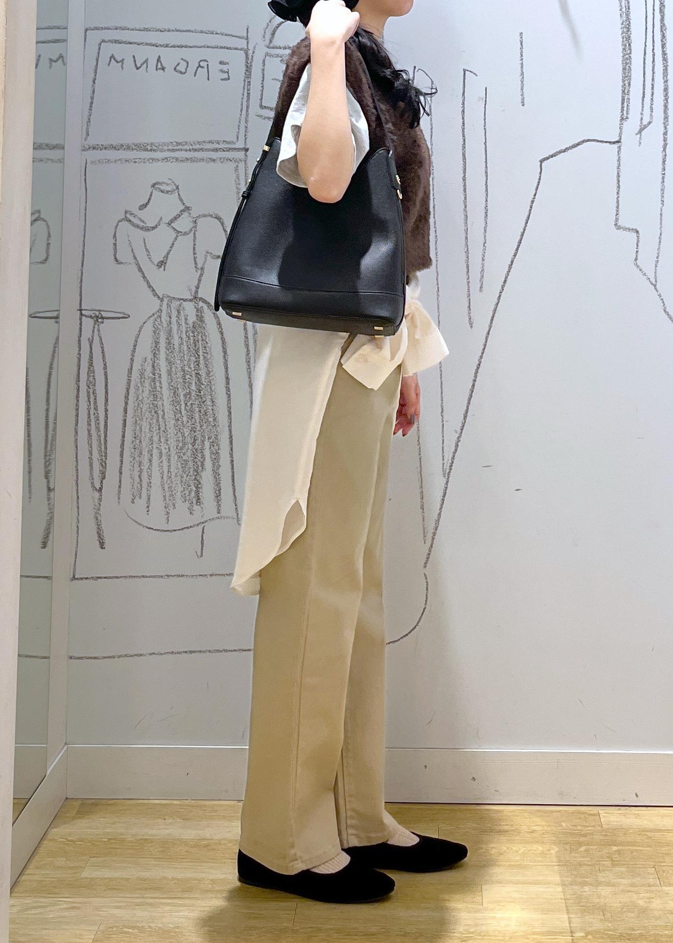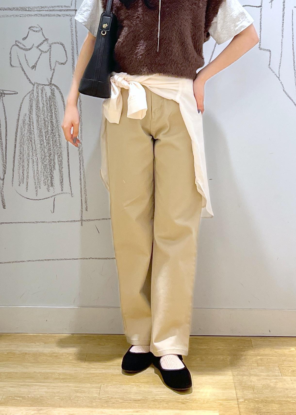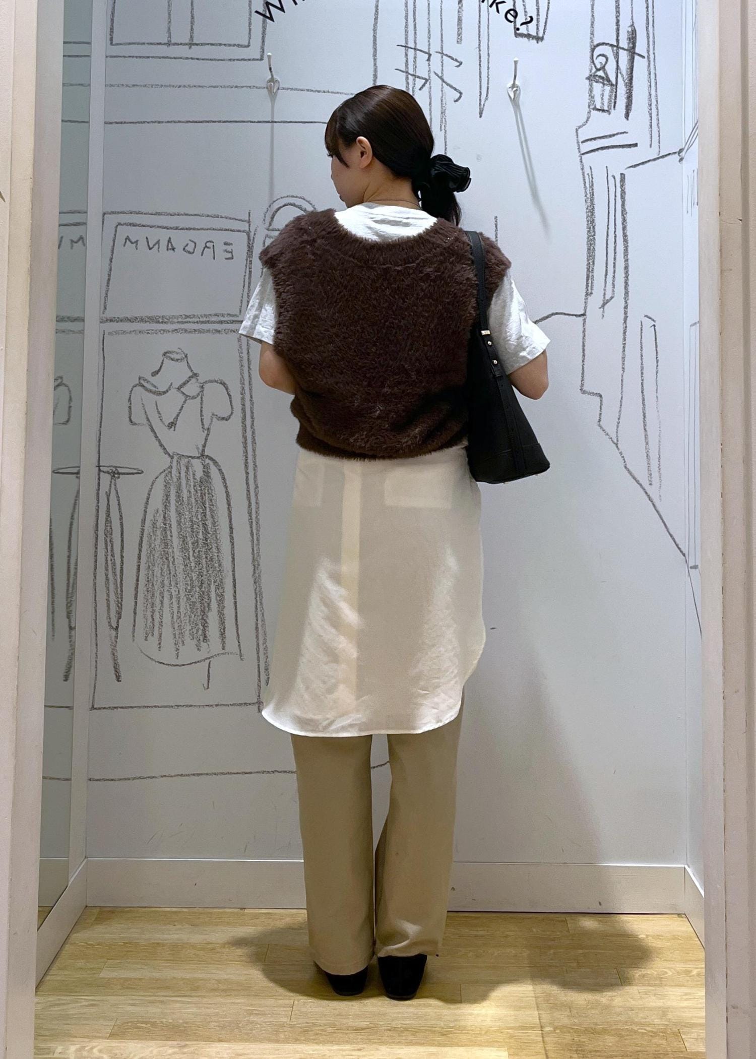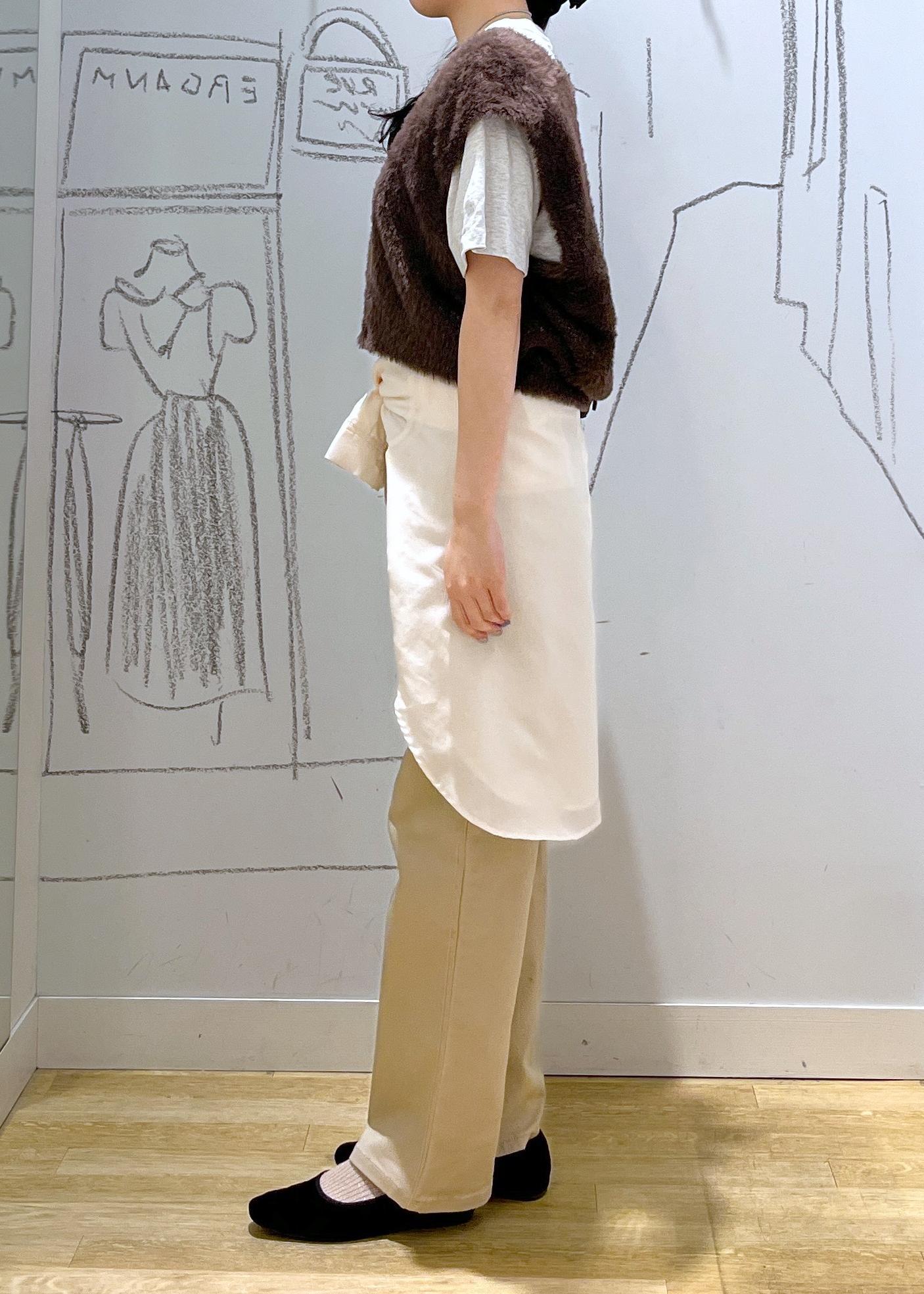柔らかい生地感なので、硬めのシャツやワンピースにも合わせても動きが出ます