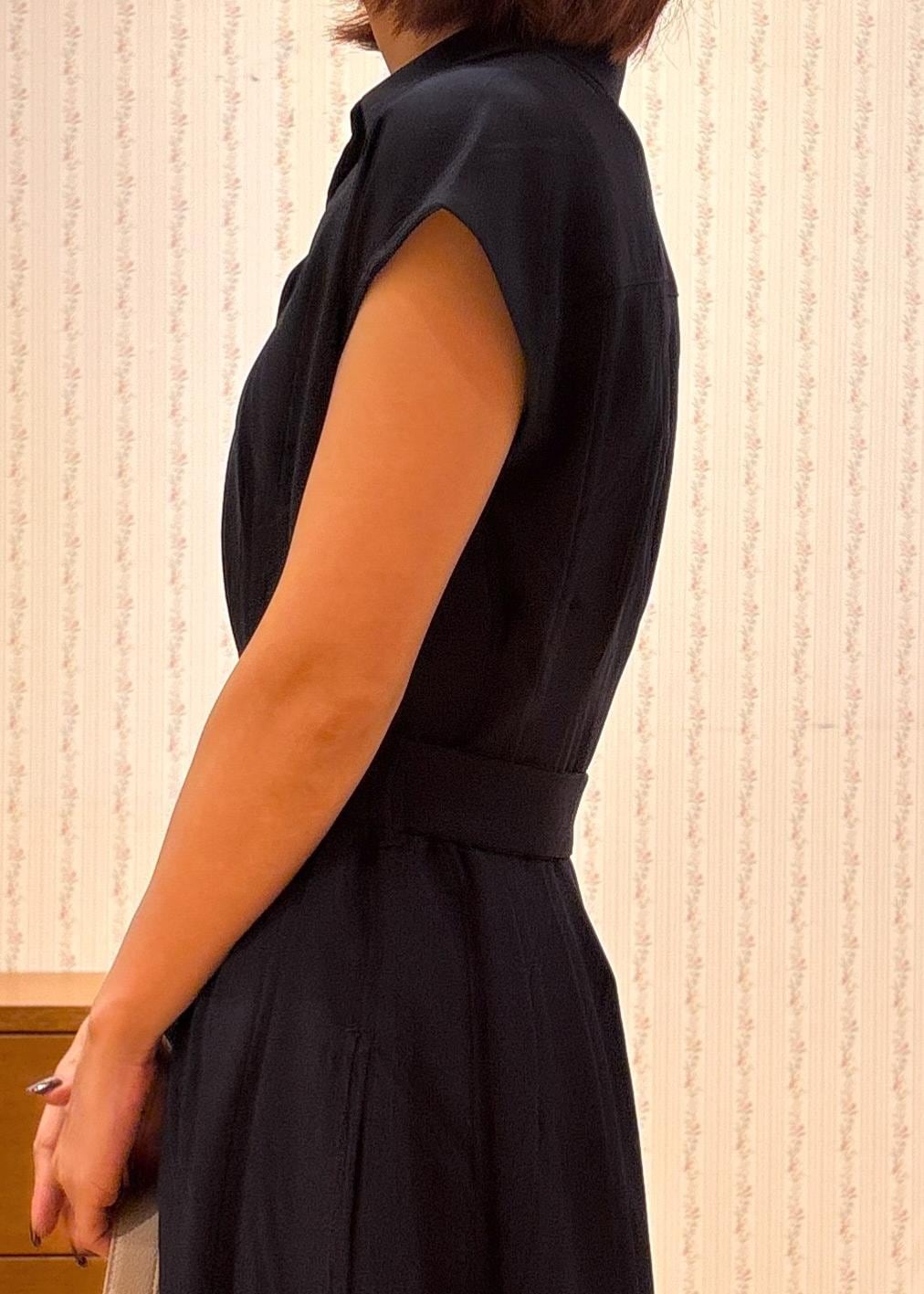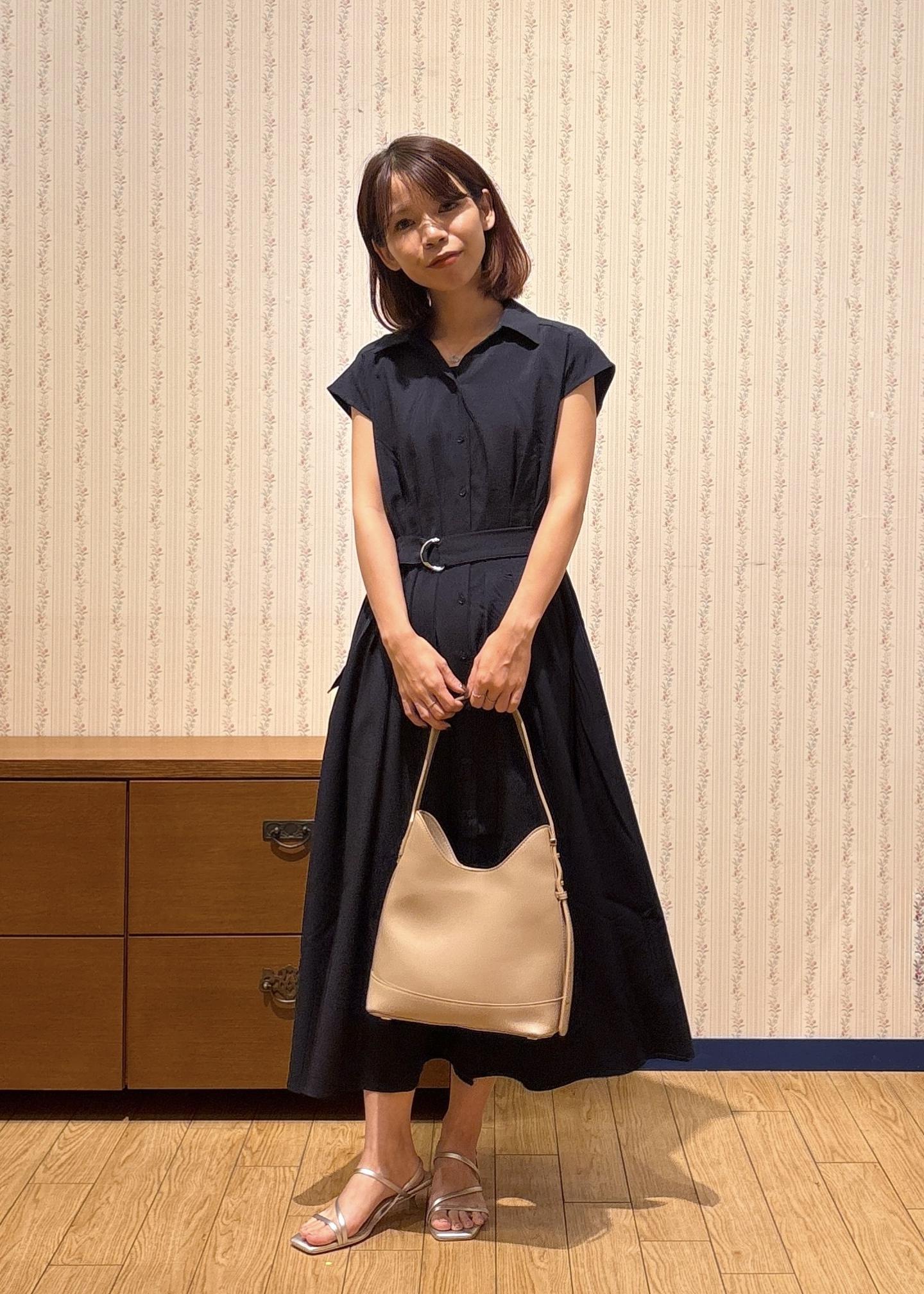 太めなウエストベルトでメリハリが付くのでスタイルアップにも◎ -