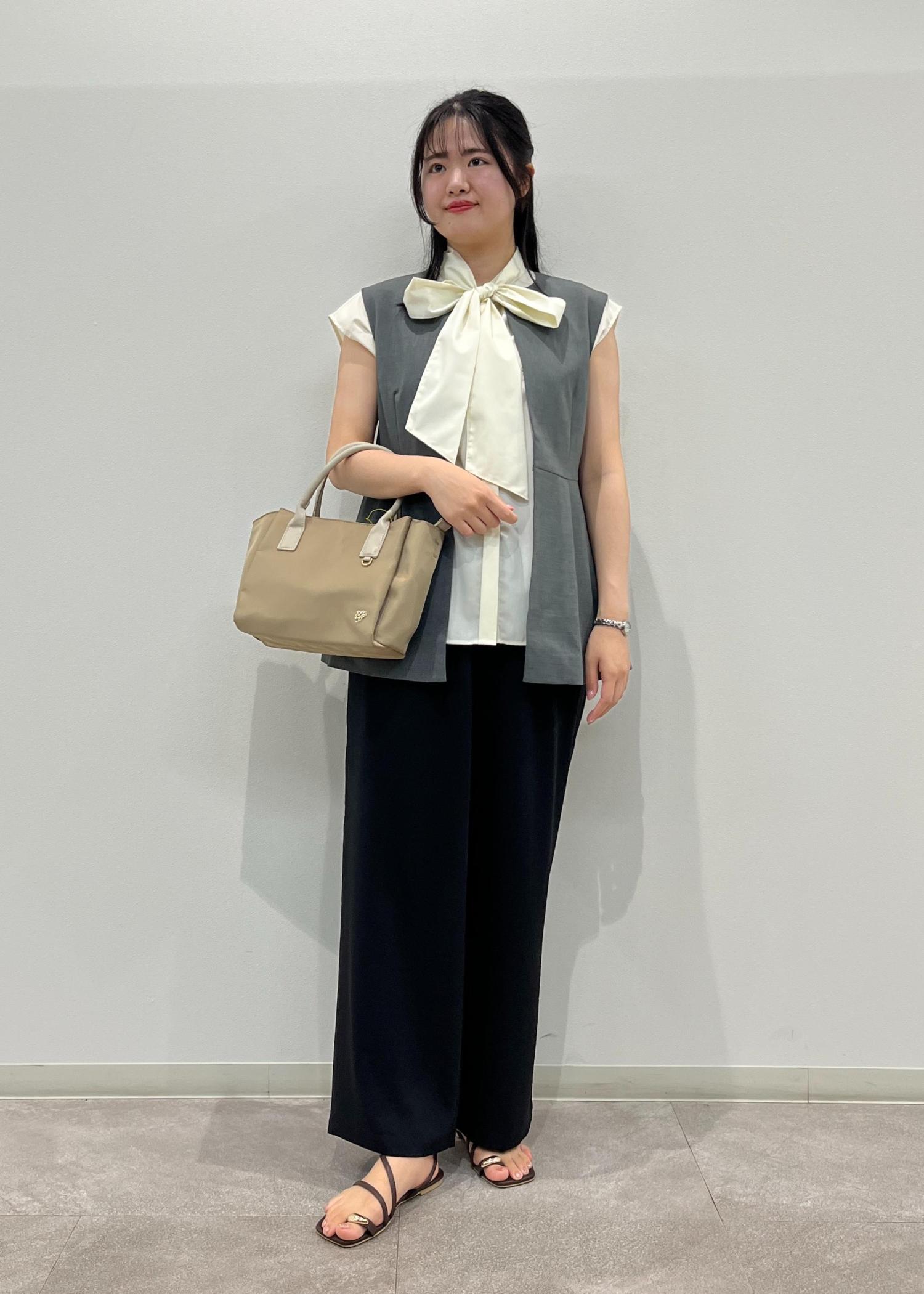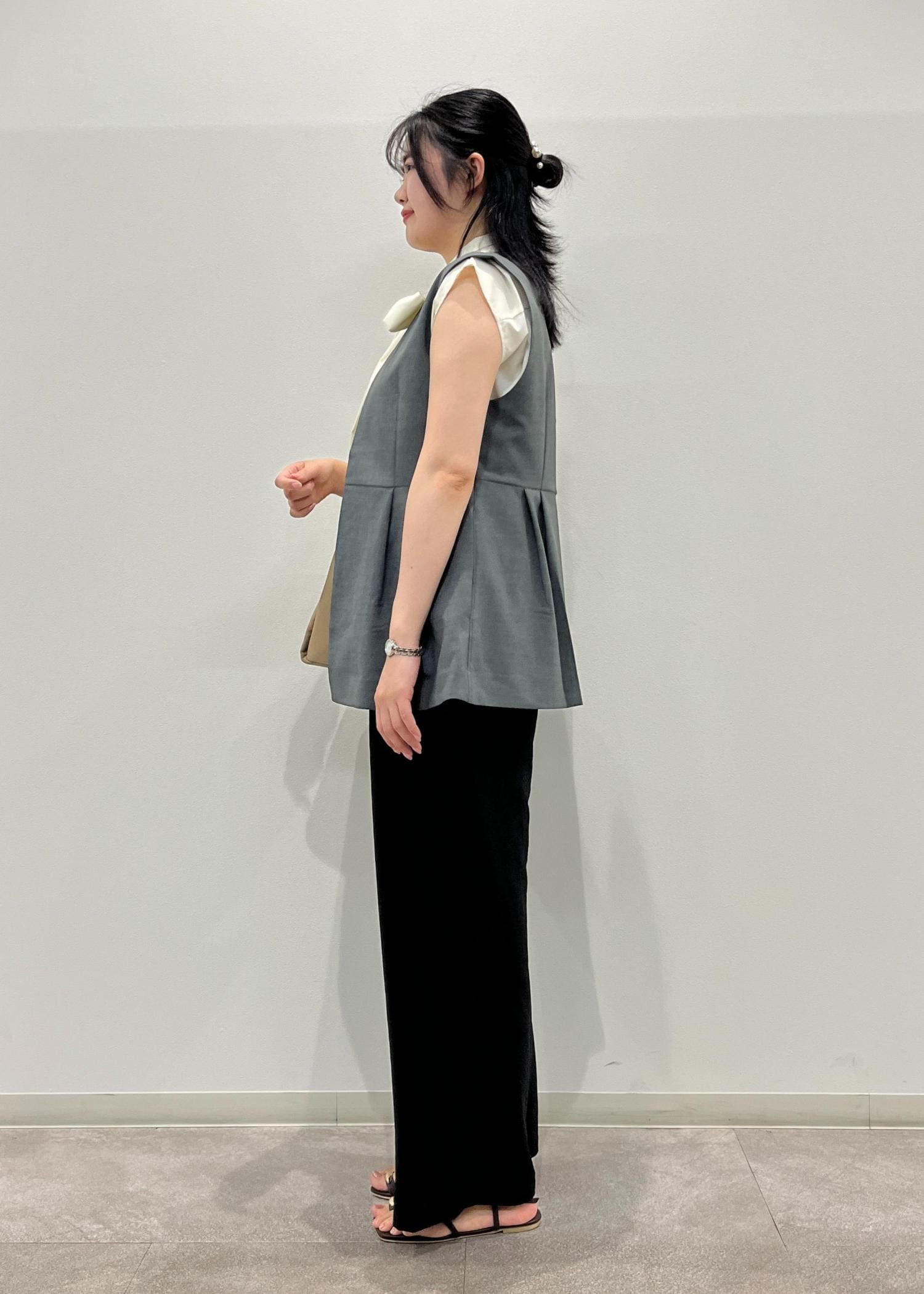 しっかりめの生地で胸元のリボンも程よいボリュームになり、フレンチスリーブで肩が少し隠れるので骨格ストレートさんでも合わせやすいです。