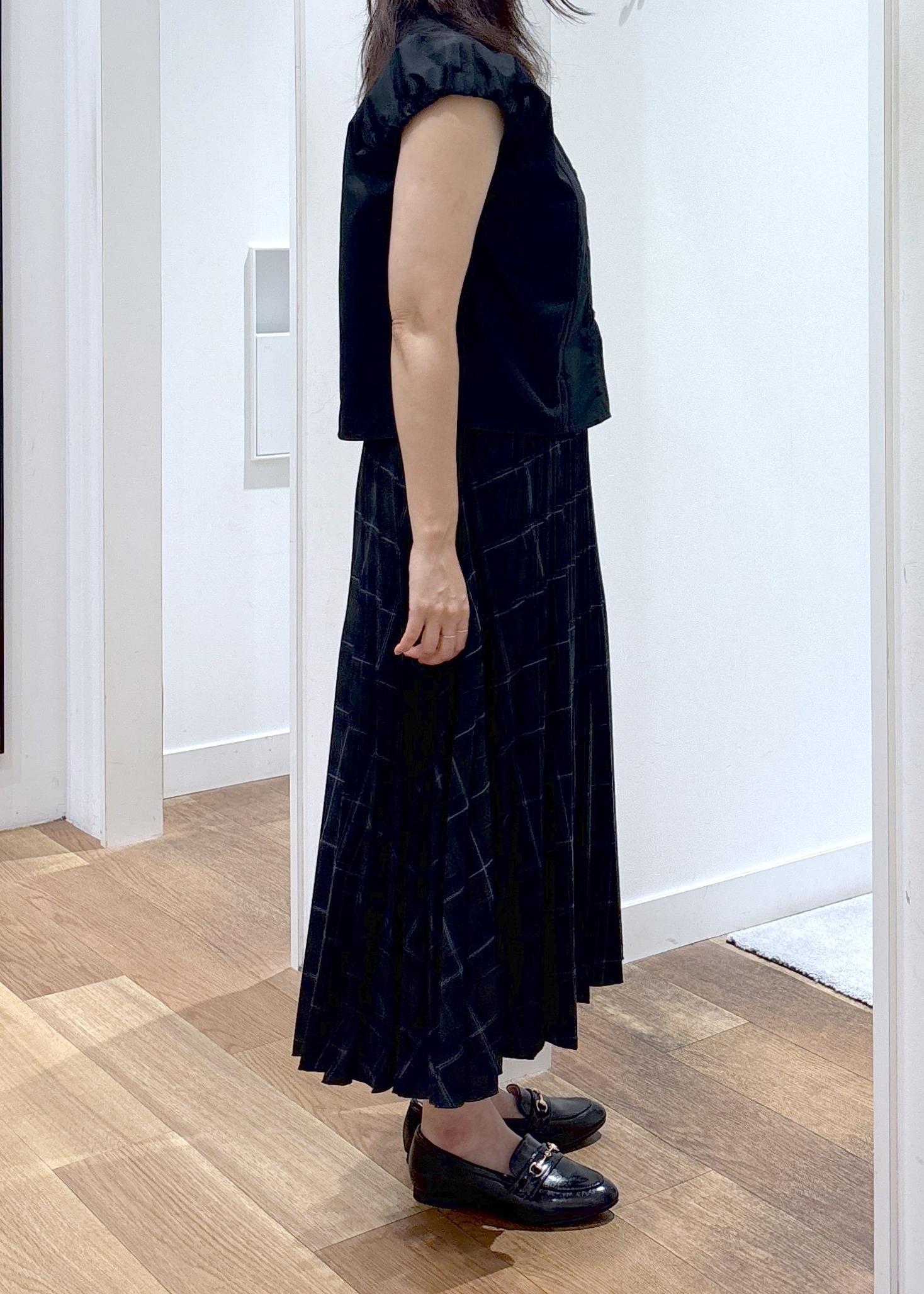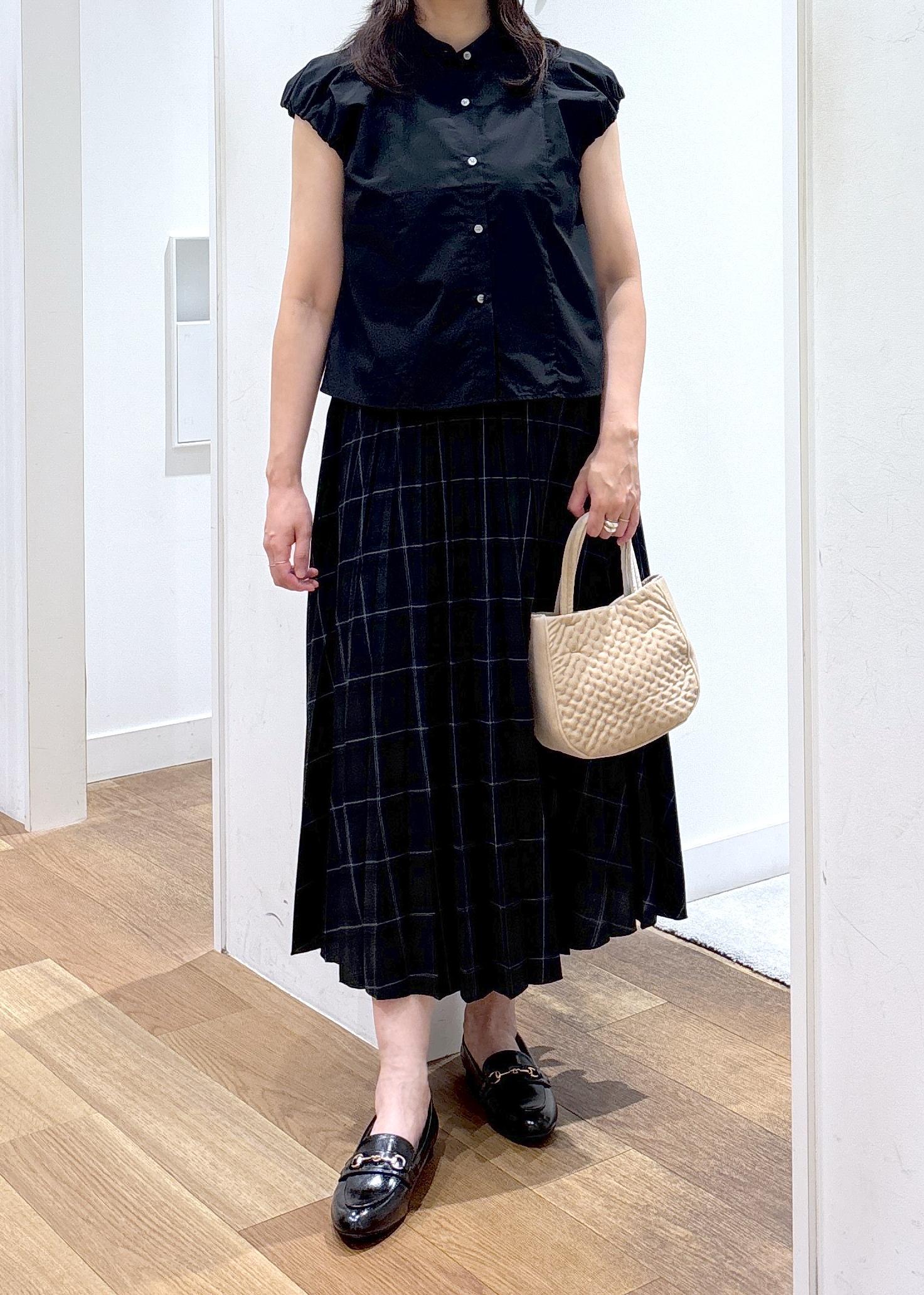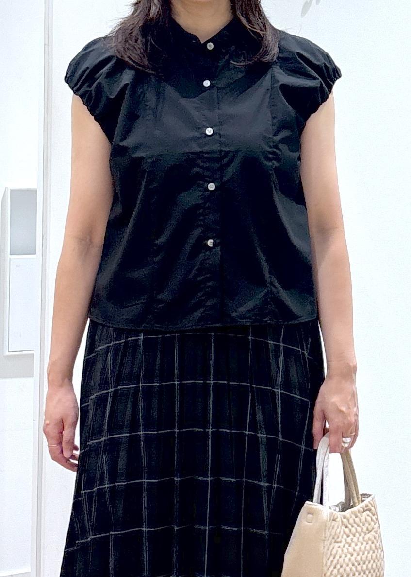 シャリっとした接触冷感素材で、シワになりにくいイージーケアが嬉しいブラウスです。