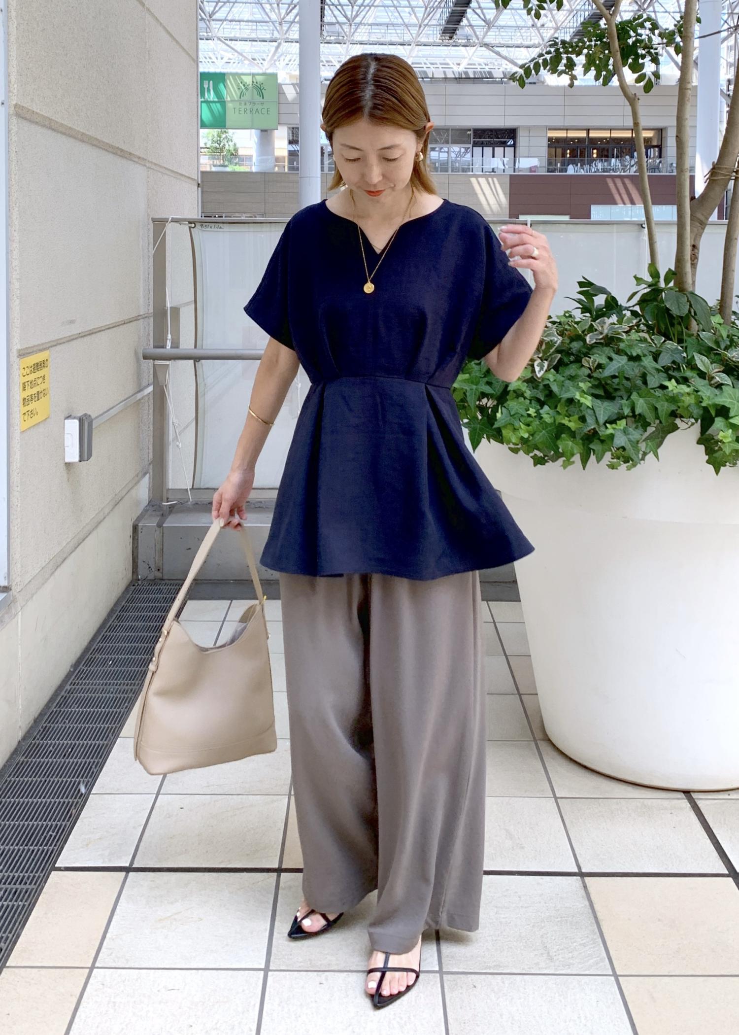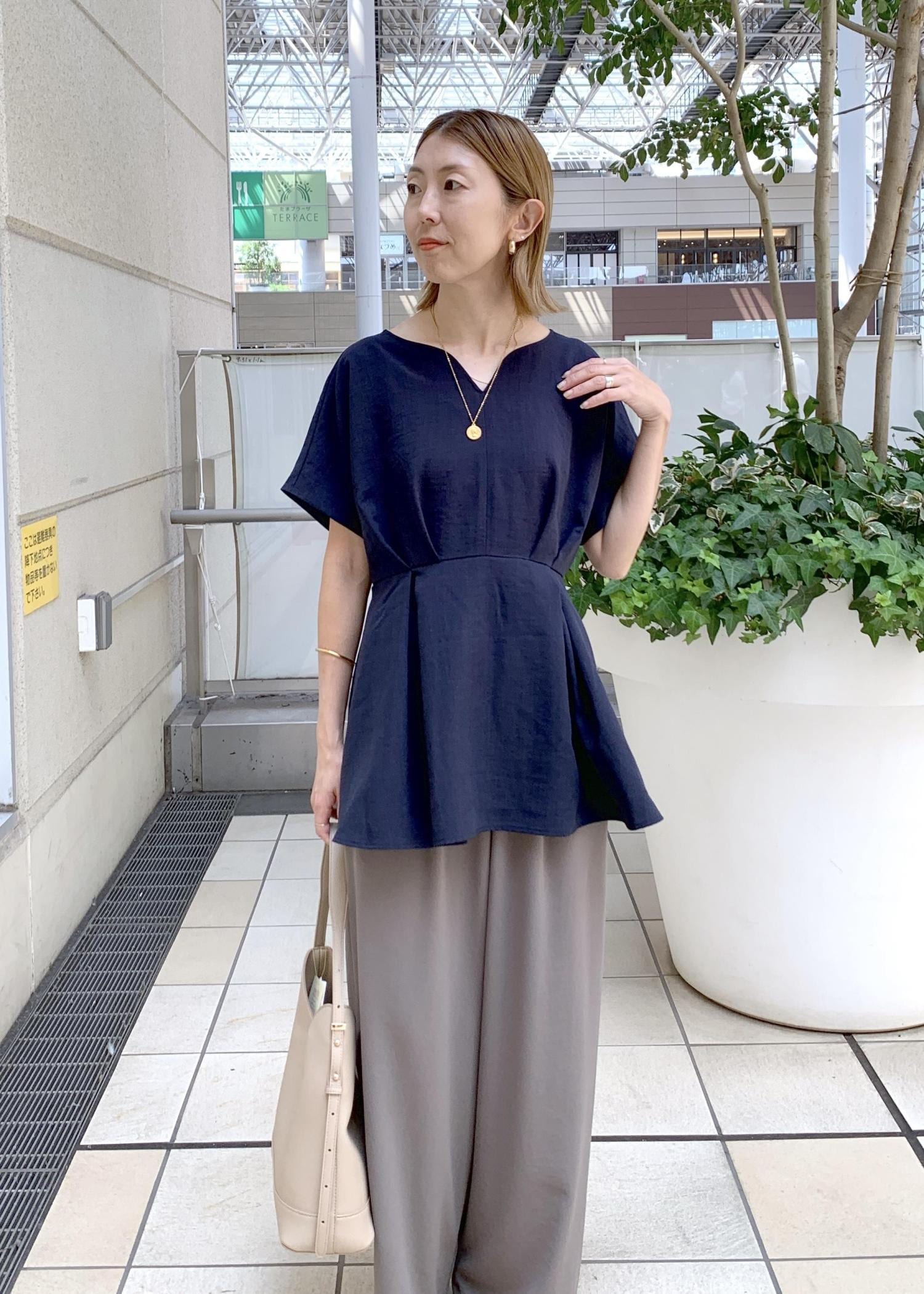 ROPÉ PICNIC【接触冷感】ハートネックペプラムブラウスネイビー / 38¥4,994レビュー38サイズ(ワンサイズ)着用