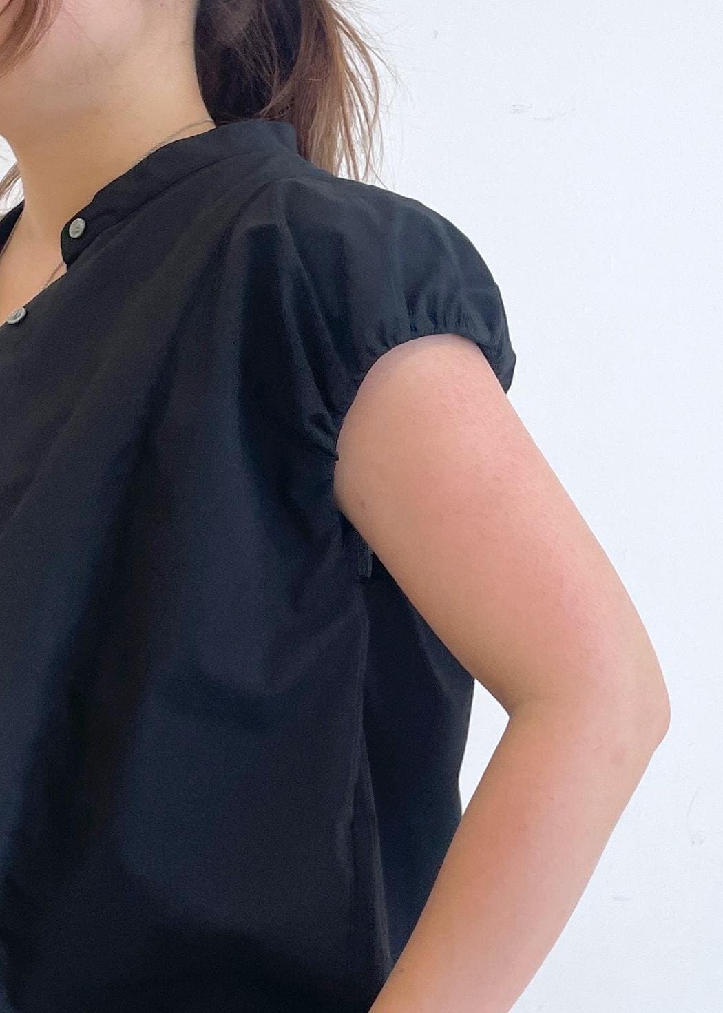 バルーン袖が少し甘めな印象ですが、羽織りにすることで甘さが抑えられスッキリ着れます!