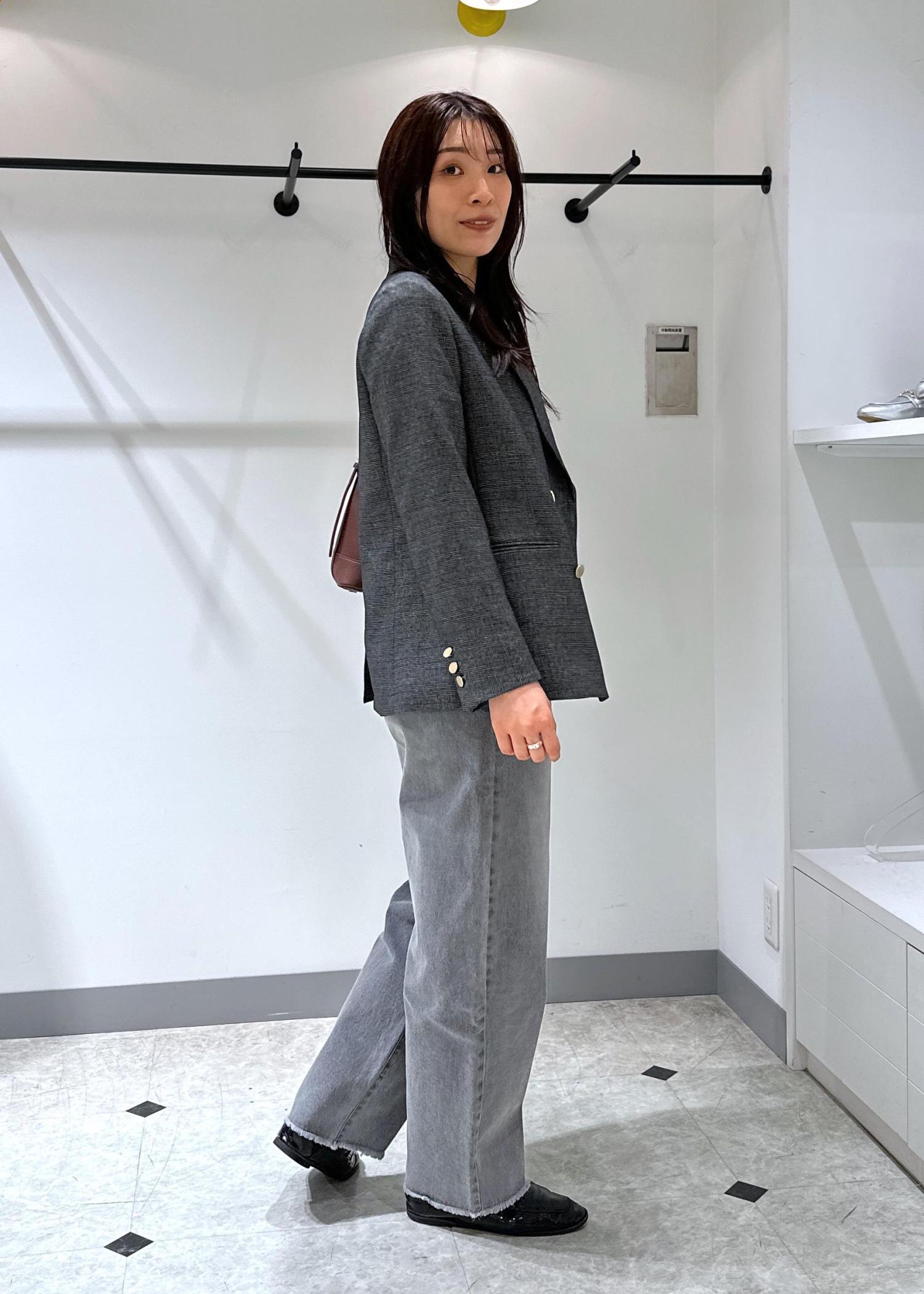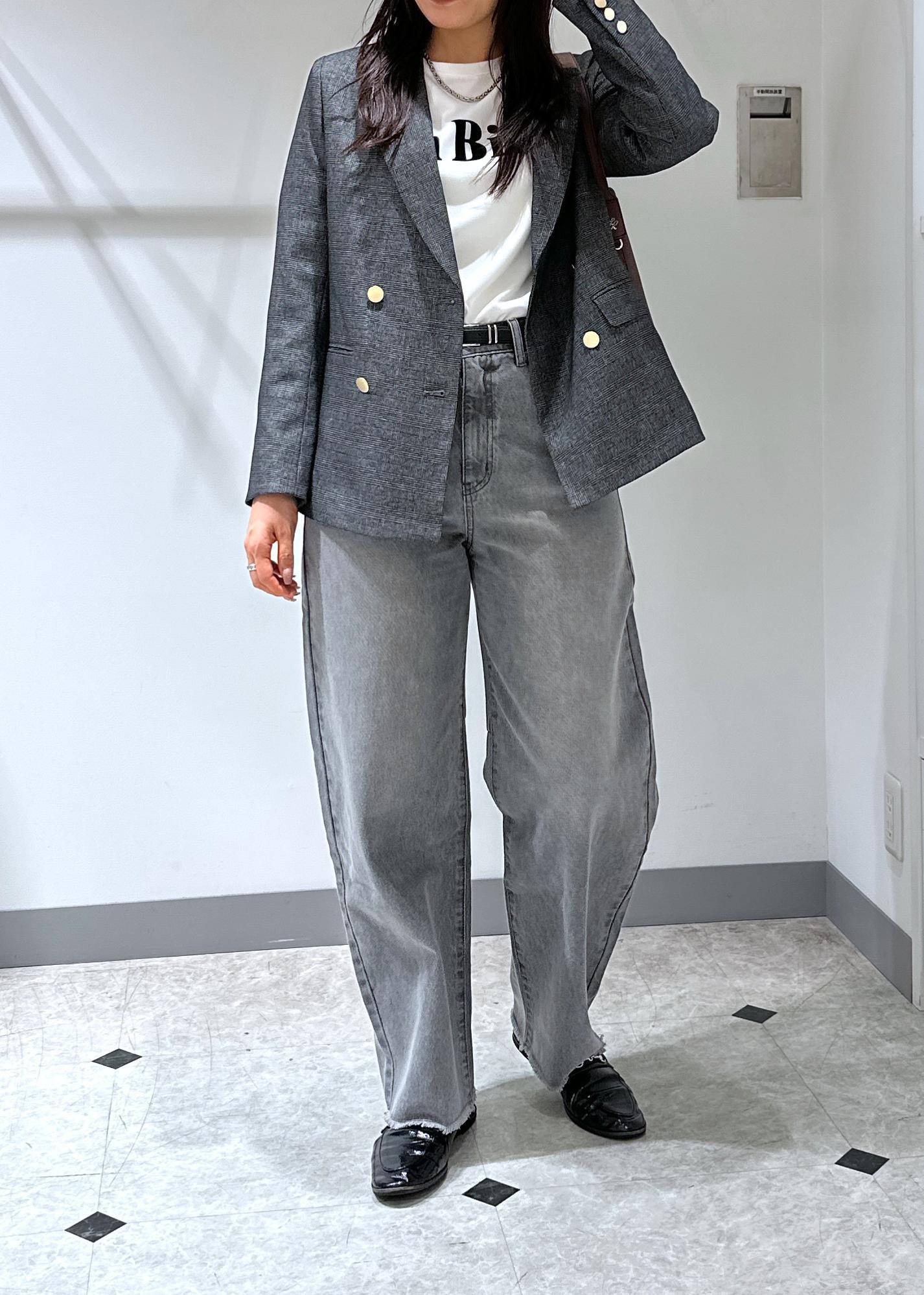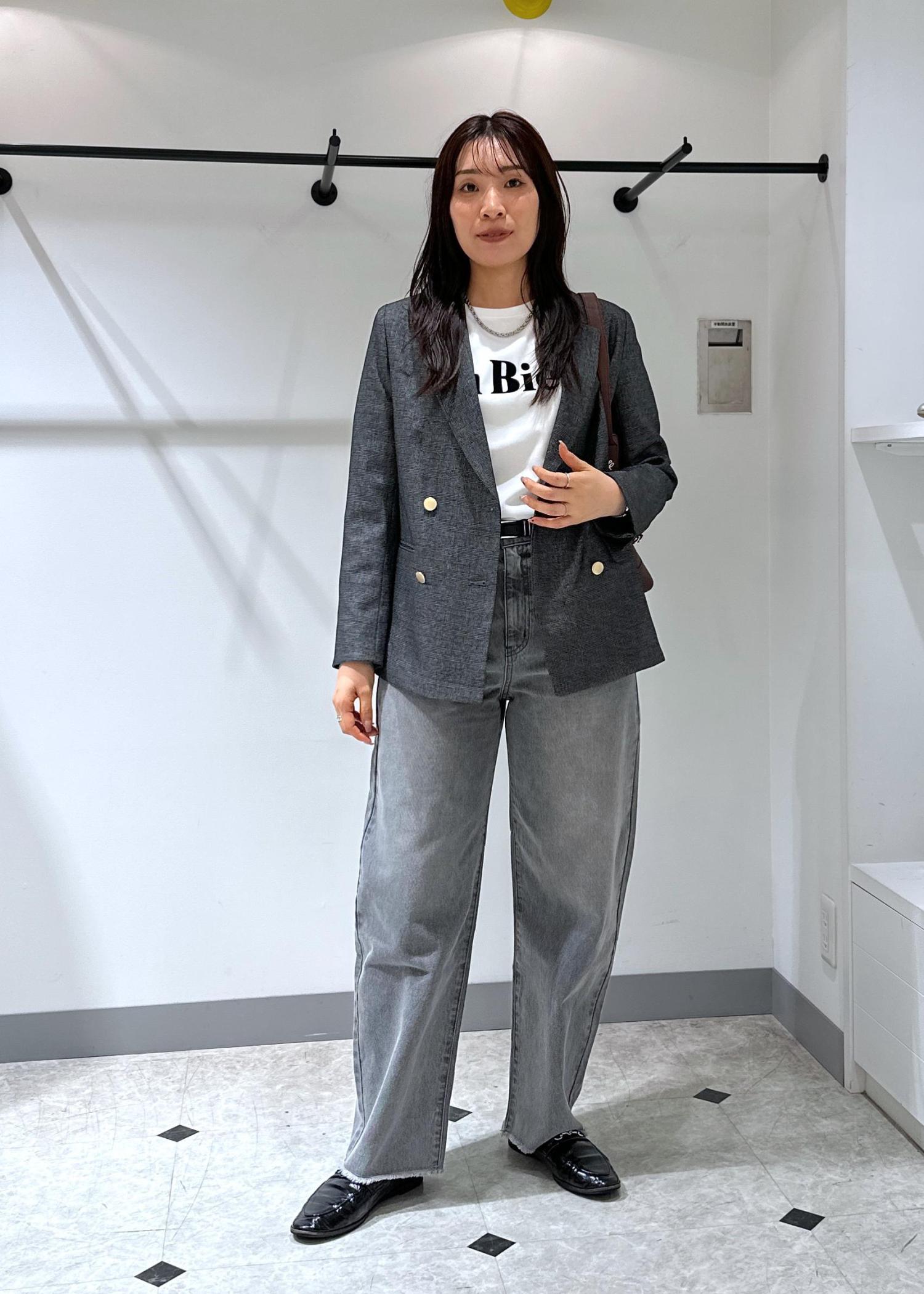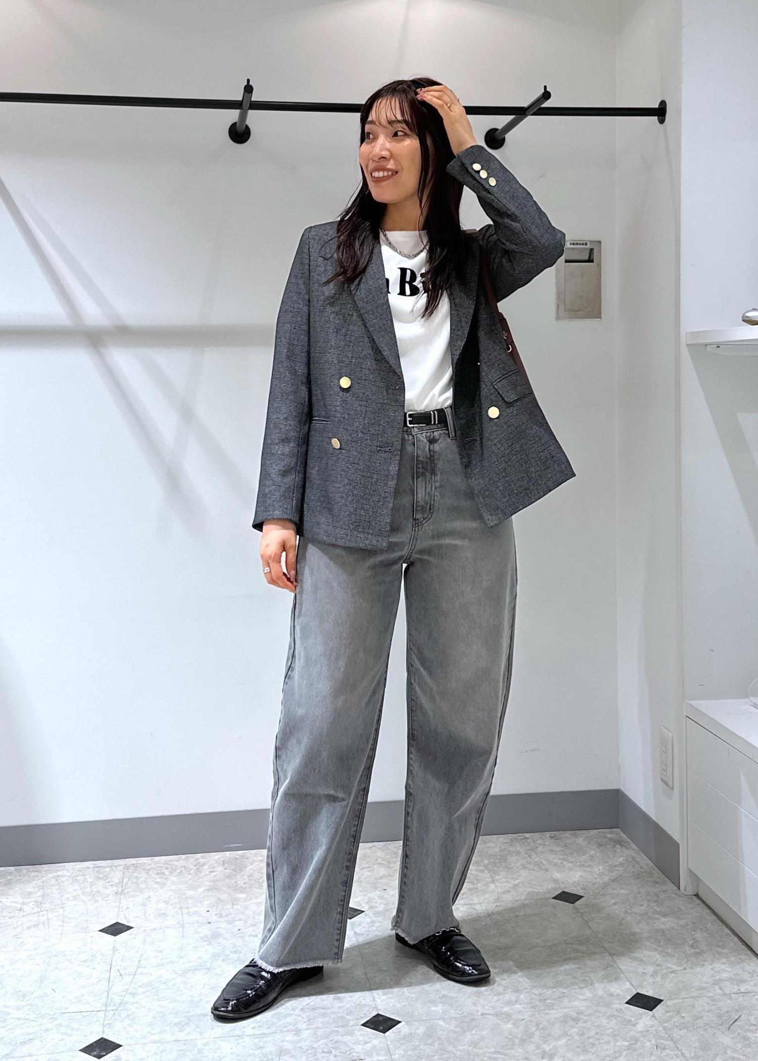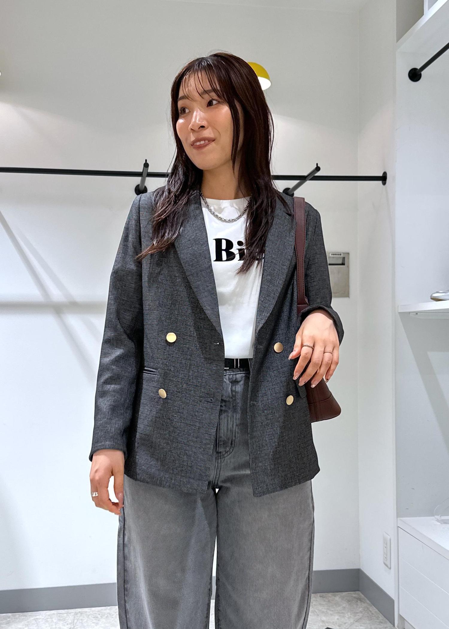 ロペピクニック定番の金ボタンジャケットにTシャツとデニムを合わせたカジュアルなスタイル。