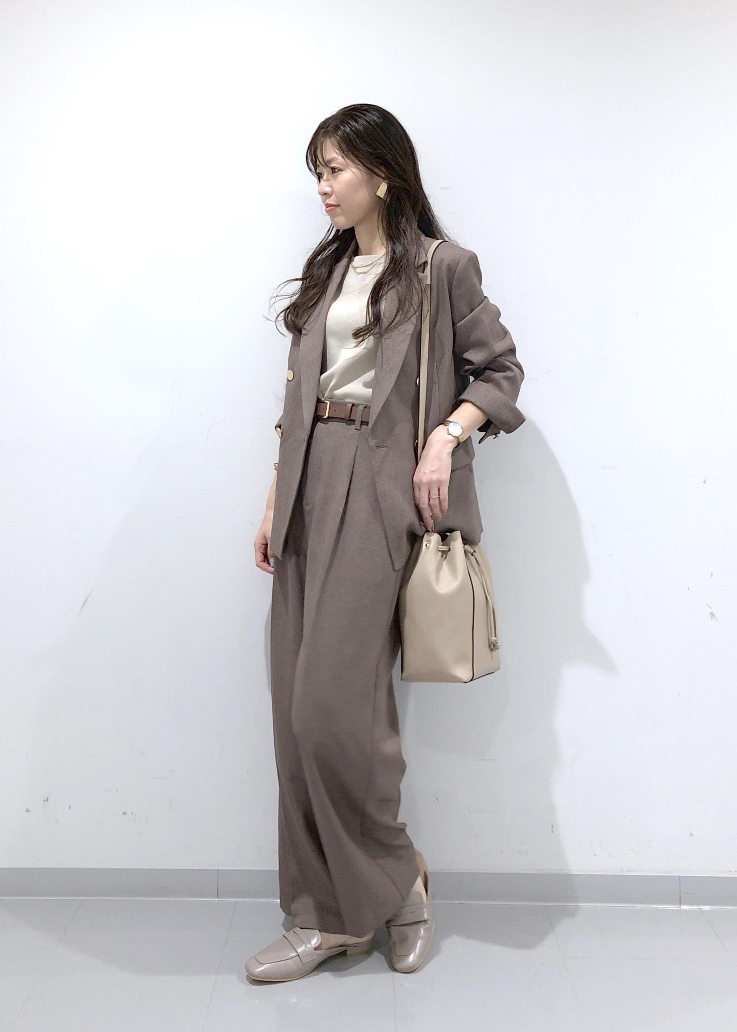 インナーやバッグ、シューズを同系色でまとめ、ワントーンコーデに仕上げました!