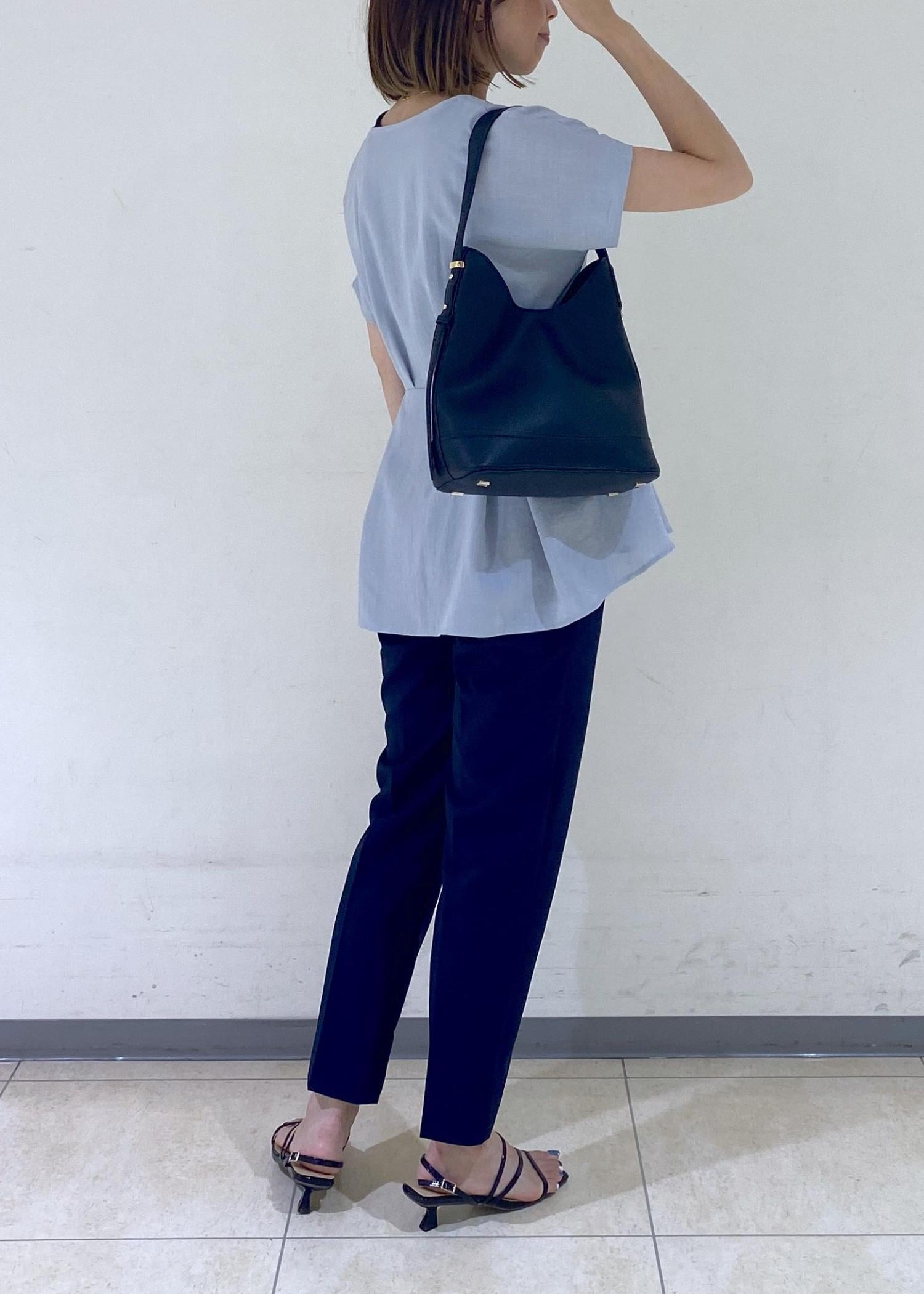 ウエストはサイドゴムで1タックが入っているので腰まわり窮屈感なく着用できます。