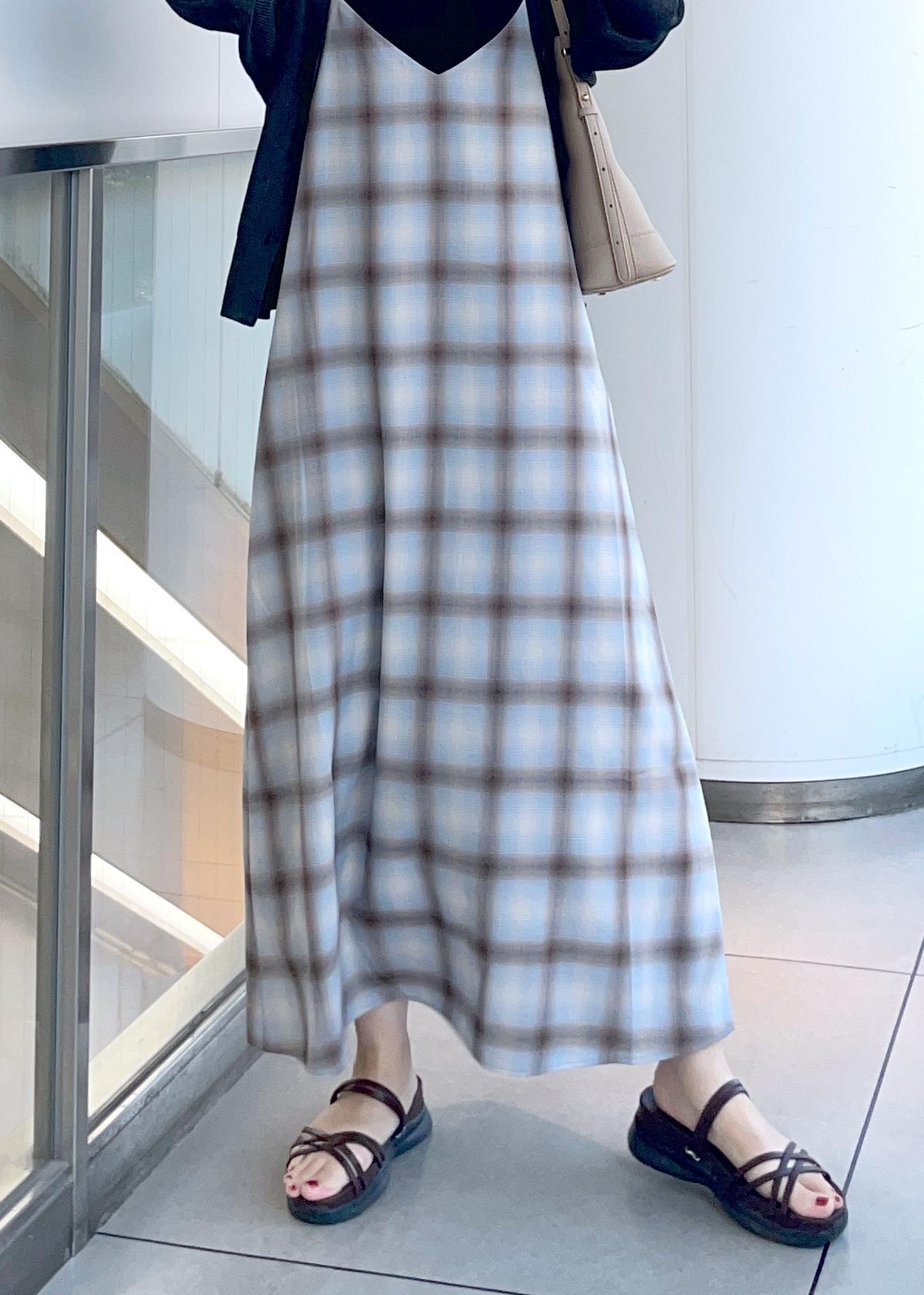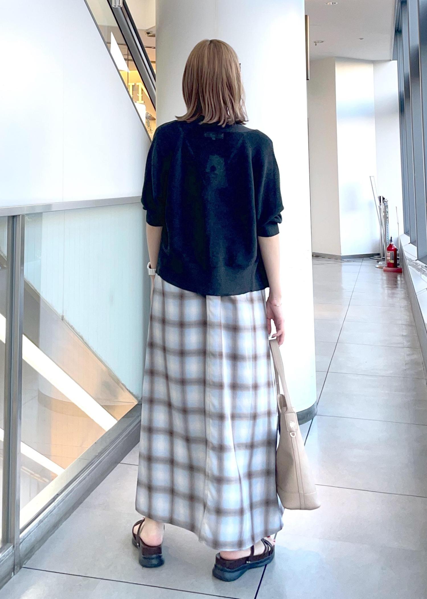 ROPÉ PICNICオンブレチェックキャミソールワンピースサックス / 38¥5,995レビュー後ろの紐で長さ調節ができるので好きな長さで着られます。身頃は程よいゆとりがあり、綿100%の厚めのTシャツなども着られそうです。