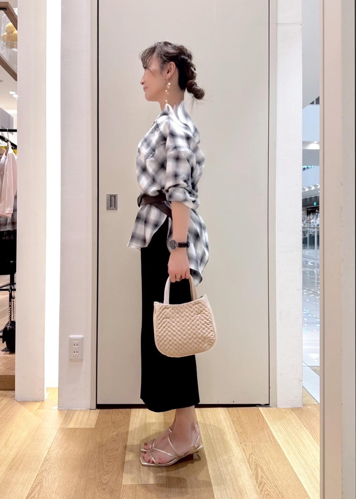 お盆休みも終わり秋が近づいてきたので、先日腰巻きしていたオンブレチェック柄シャツを着たコーデを考えてみました。