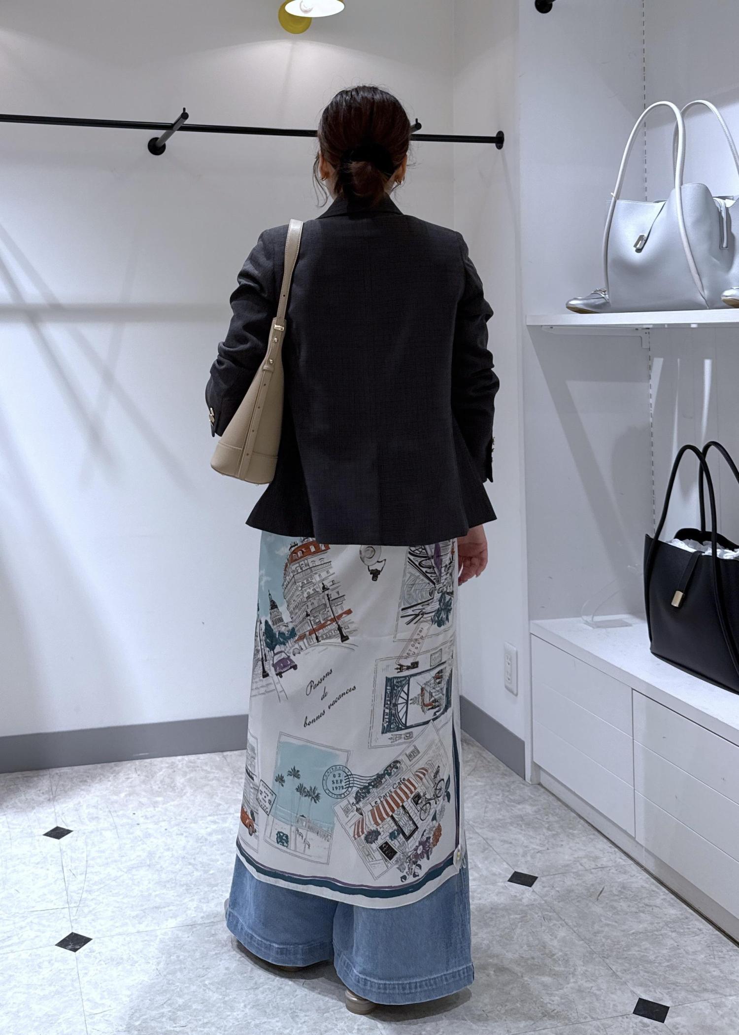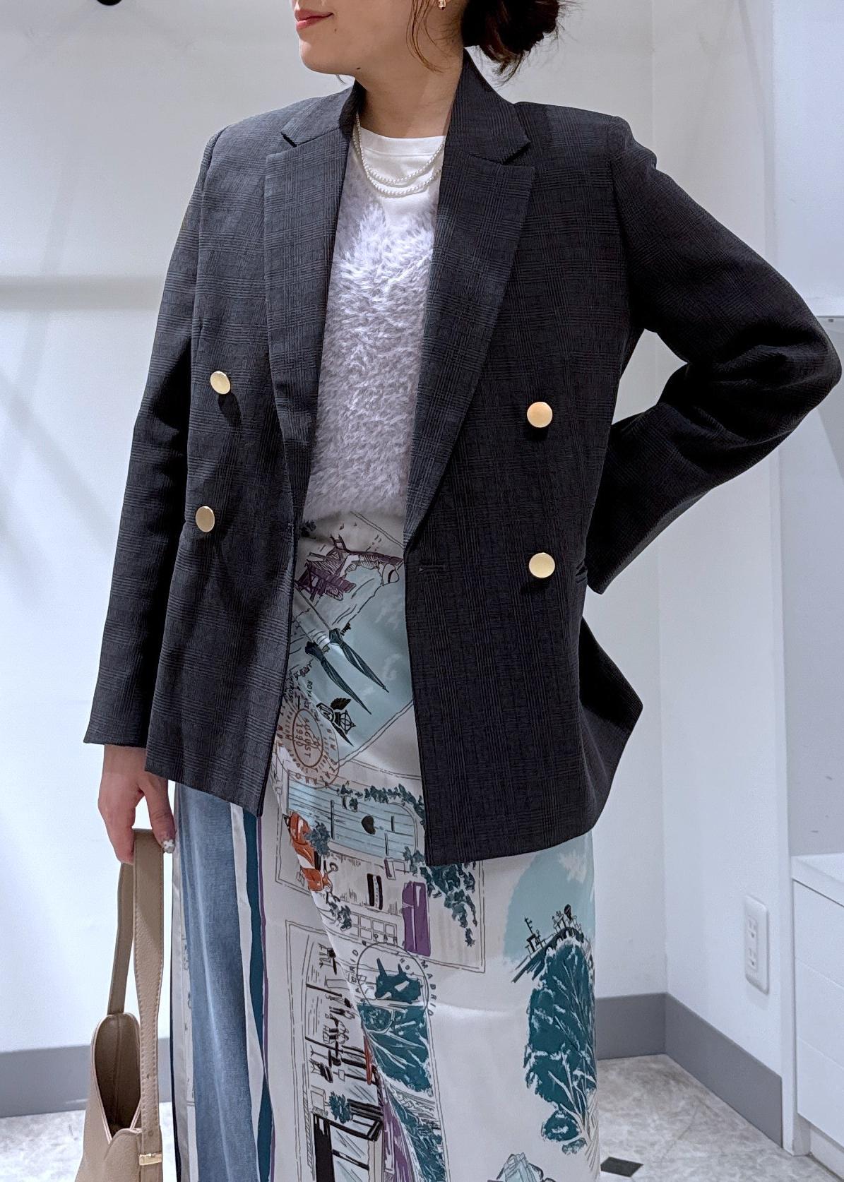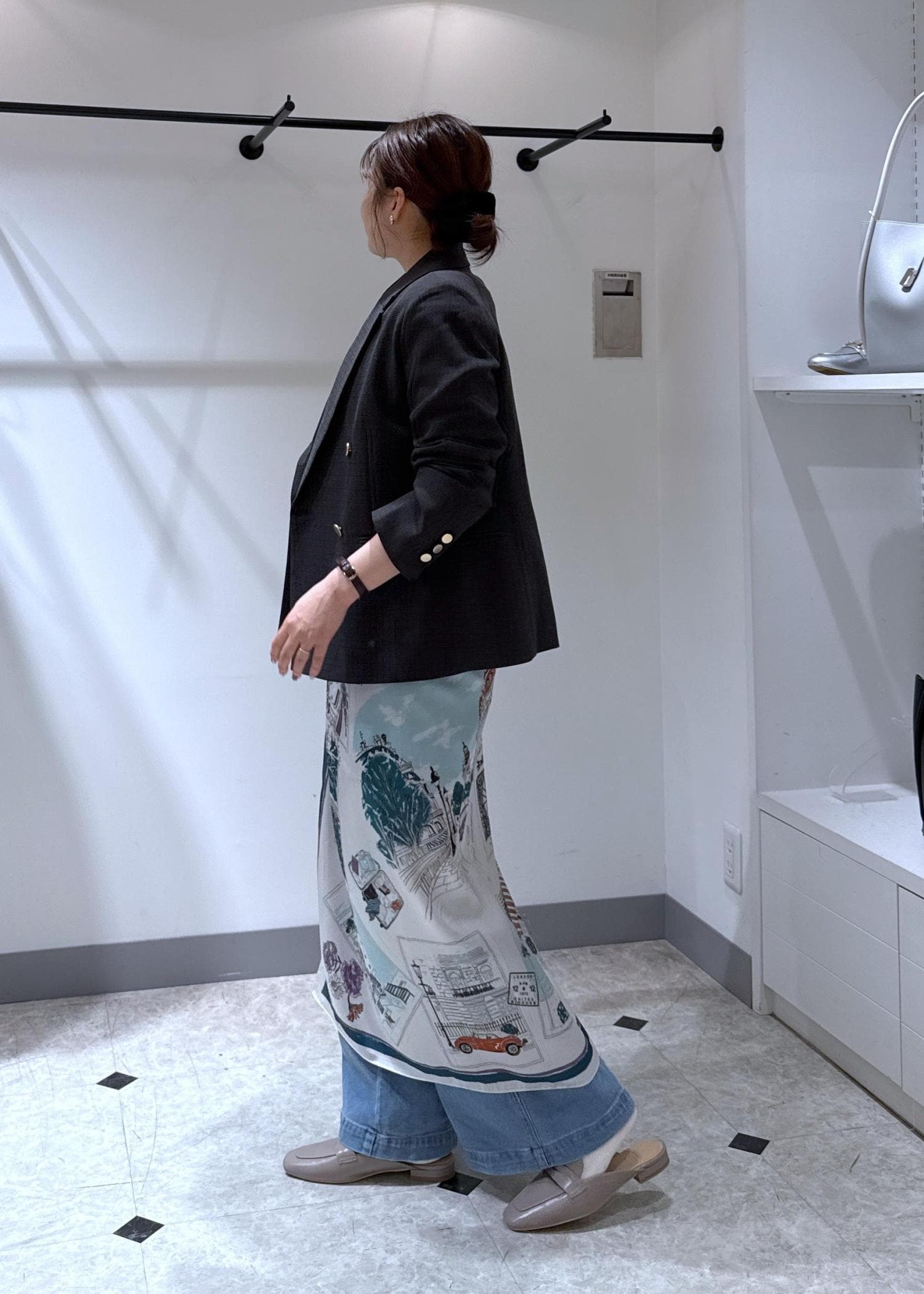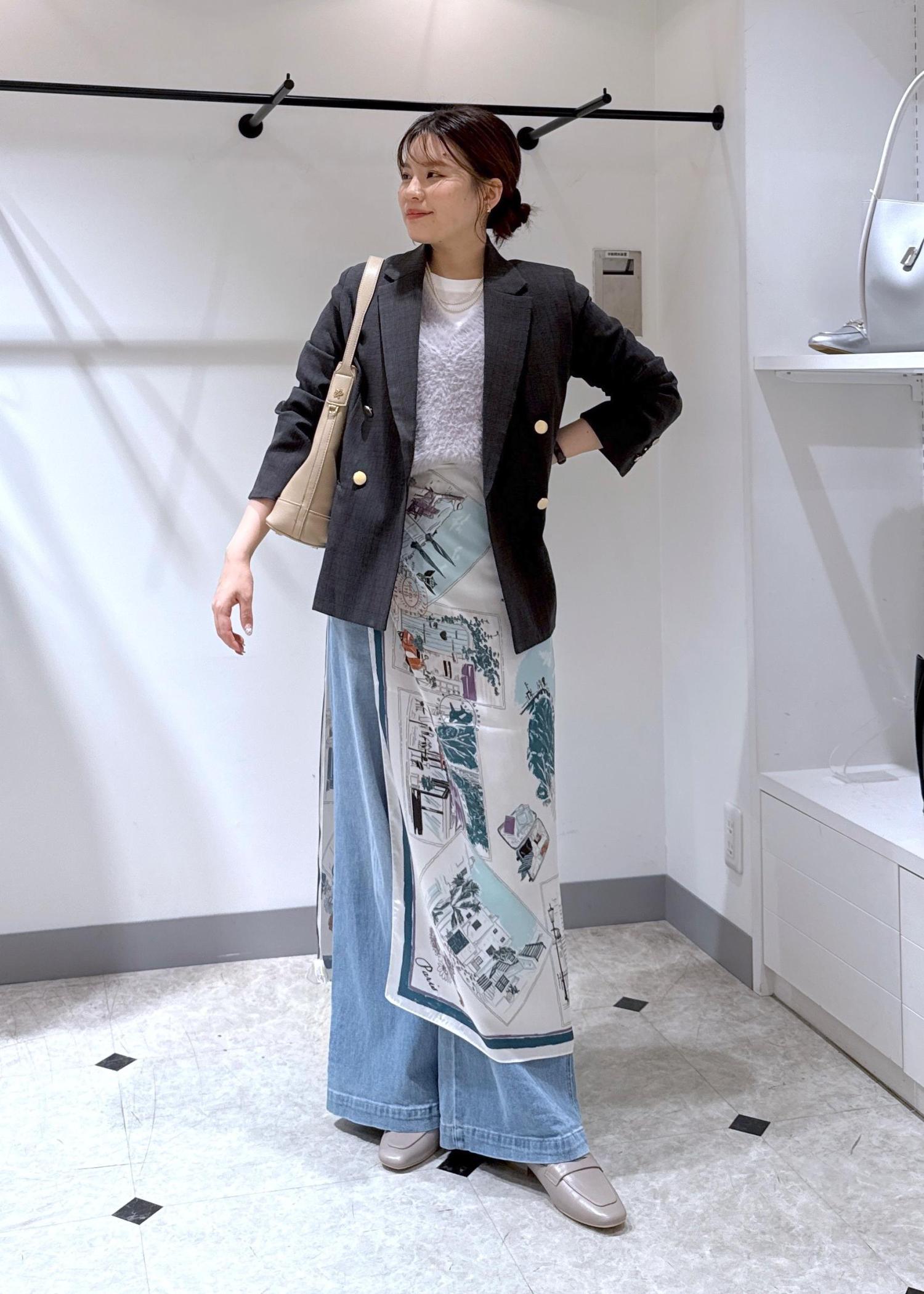 フェザーニットベストやスカーフアレンジなど今年らしいアイテムにジャケットを合わせたトレンド感のある大人カジュアルコーデにしてみました!