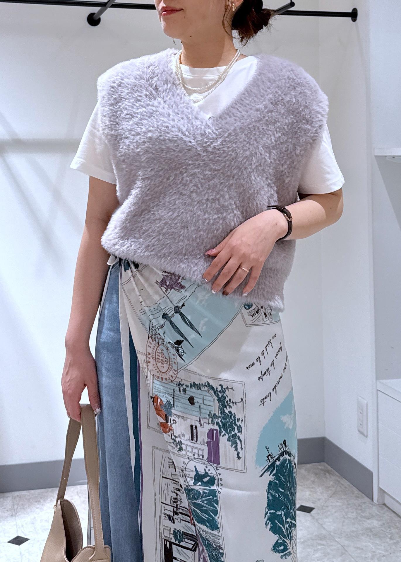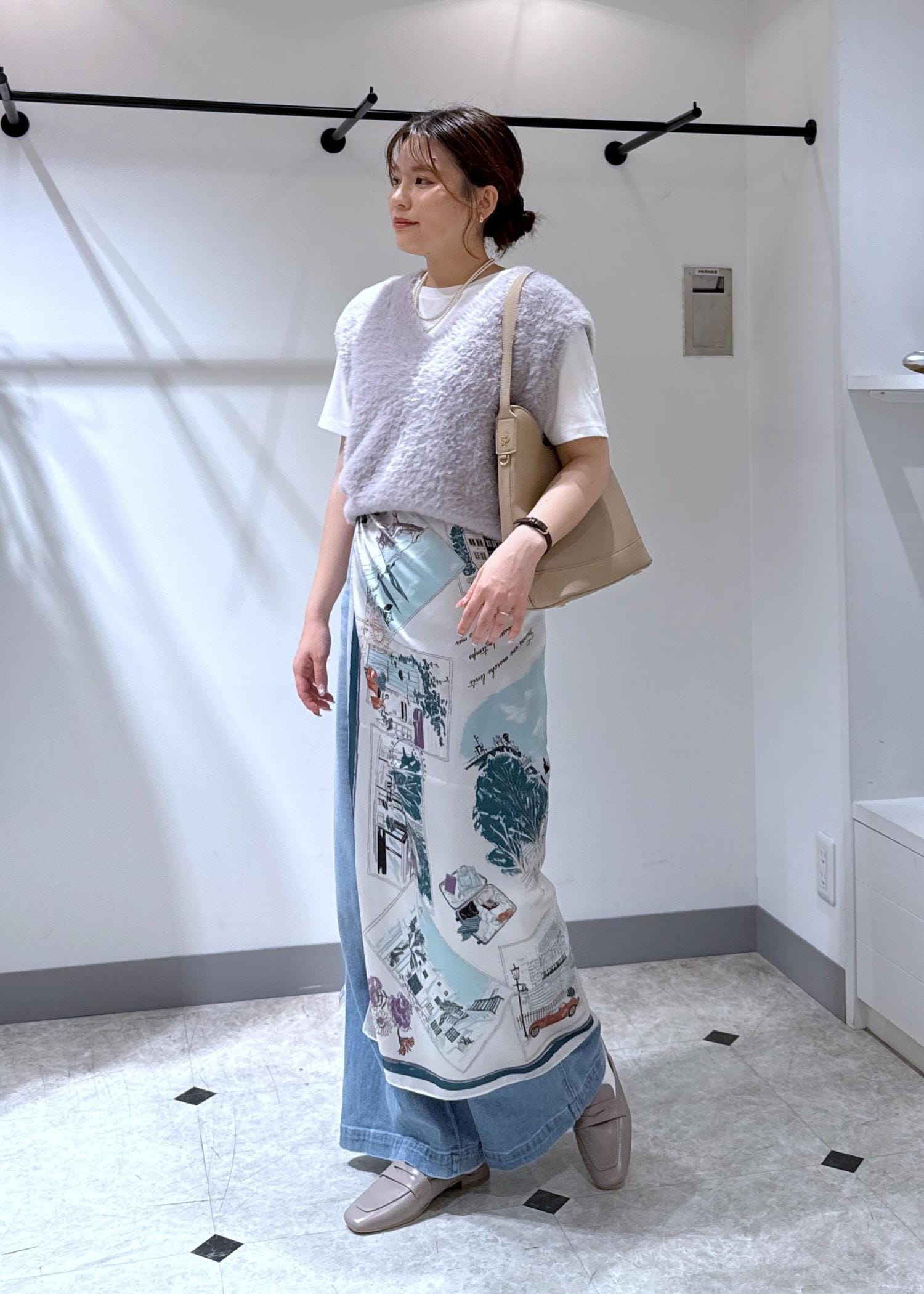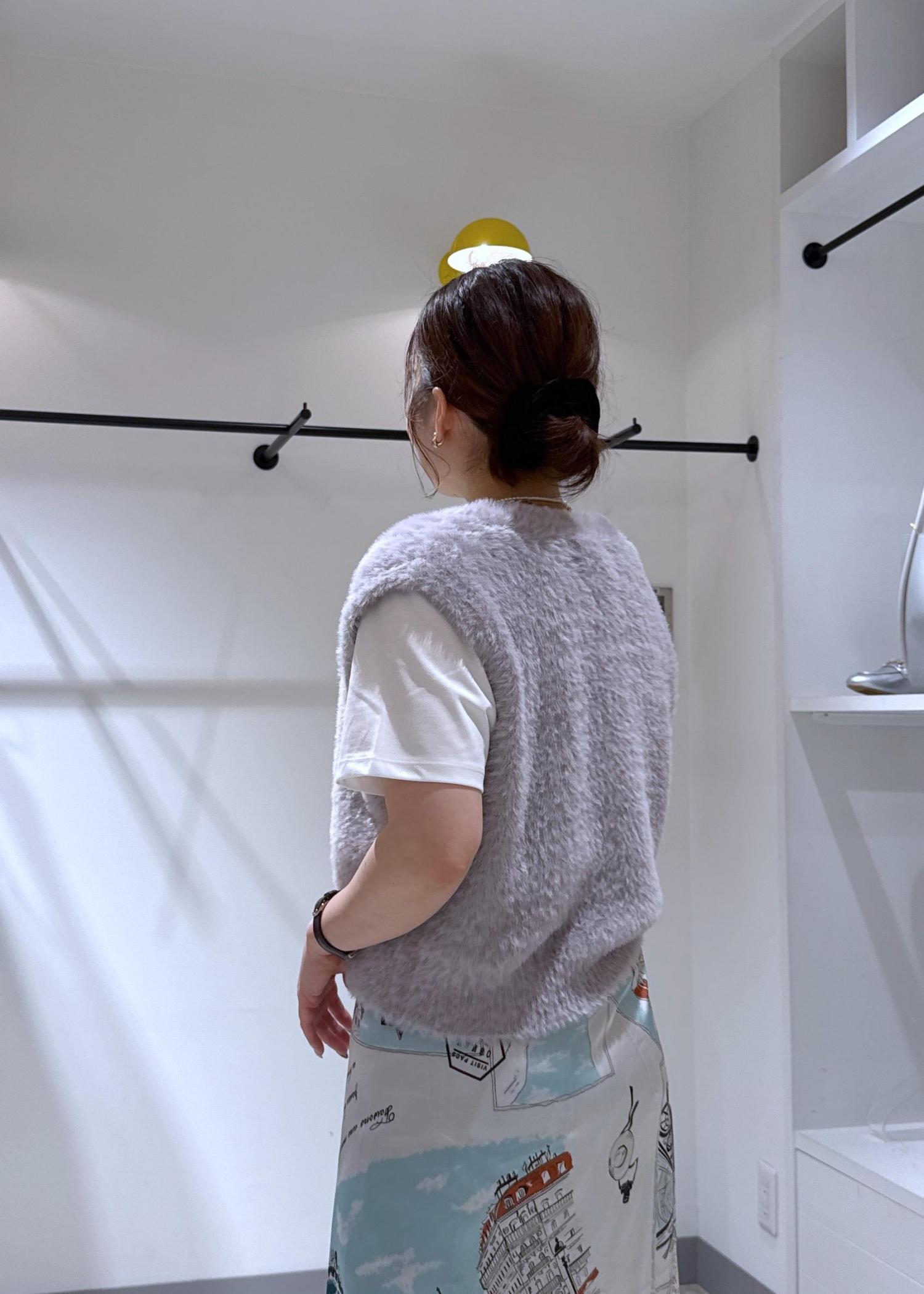 アームホールは広めなので袖にボリュームのあるトップスなどにも合わせられそうです。