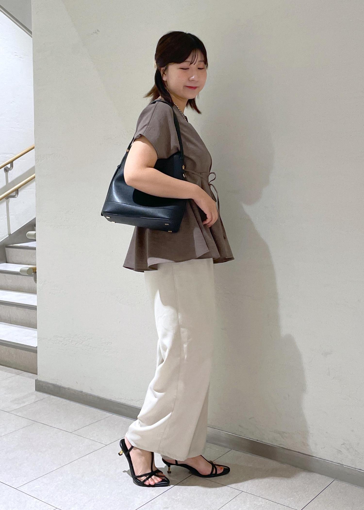 中間色だからボトムは明るくても暗めのカラーでも合わせやすいですよ。