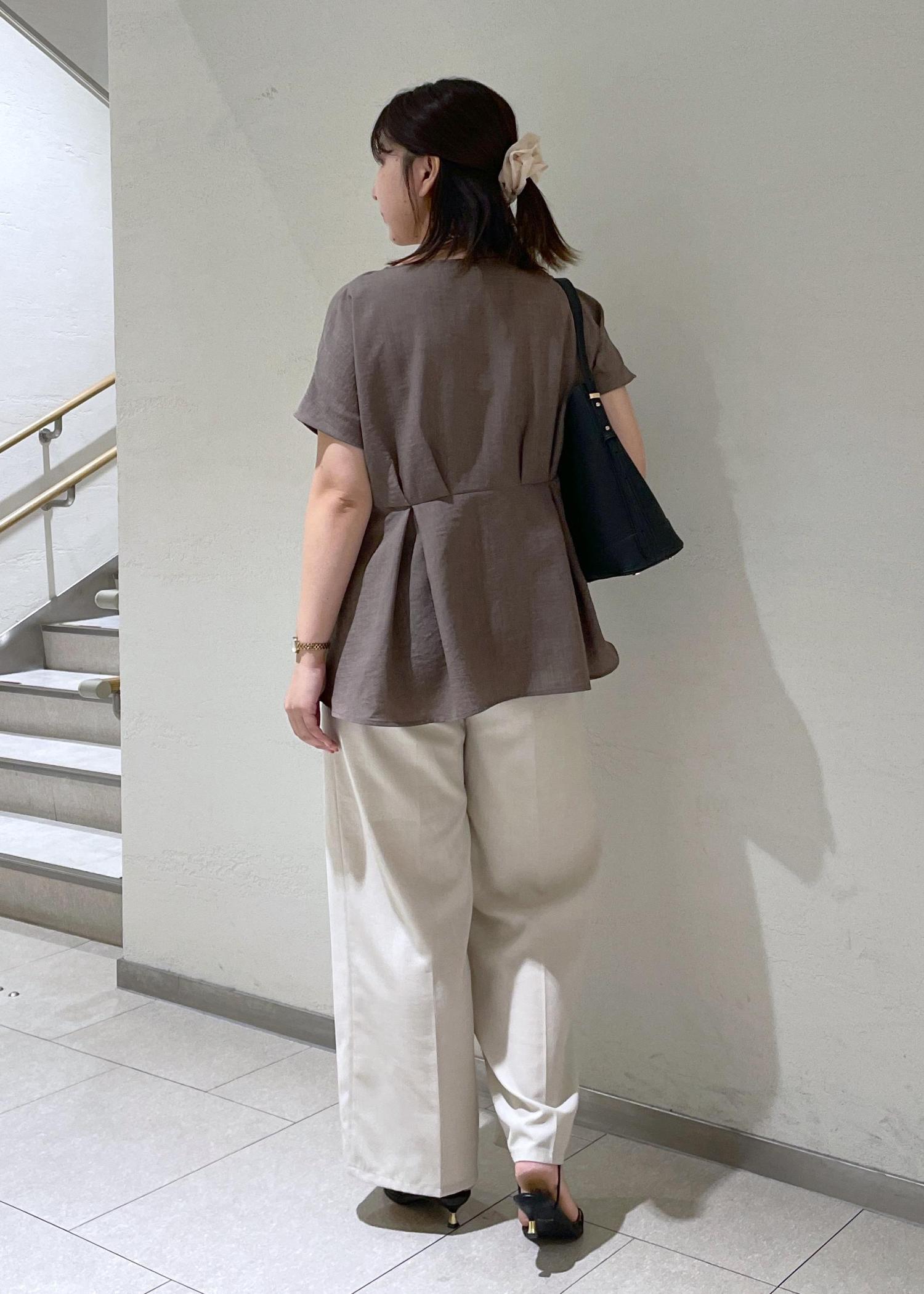 生地感は麻っぽいシャリっとしていますがチクチクした感じはなく涼しく着用できます。