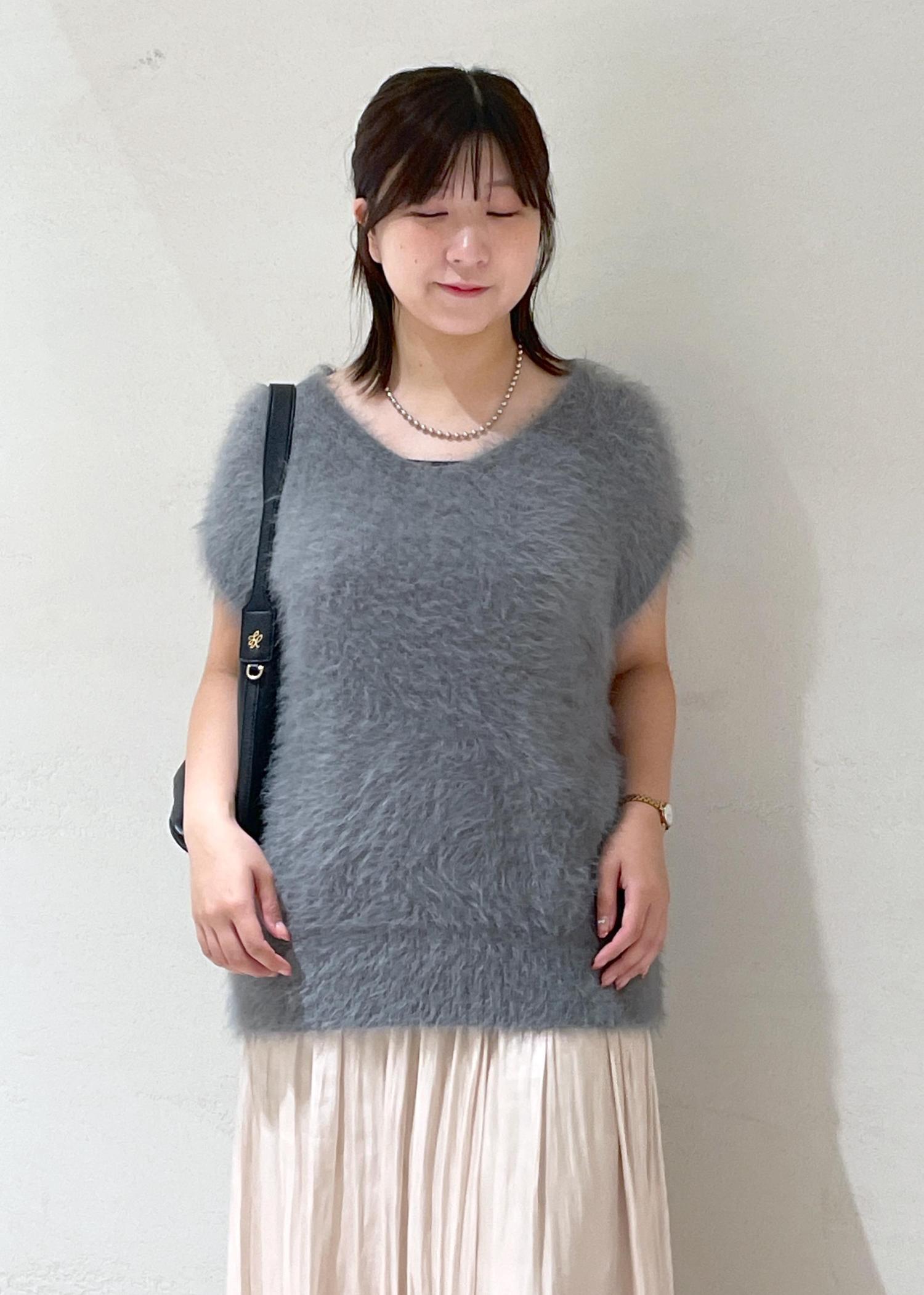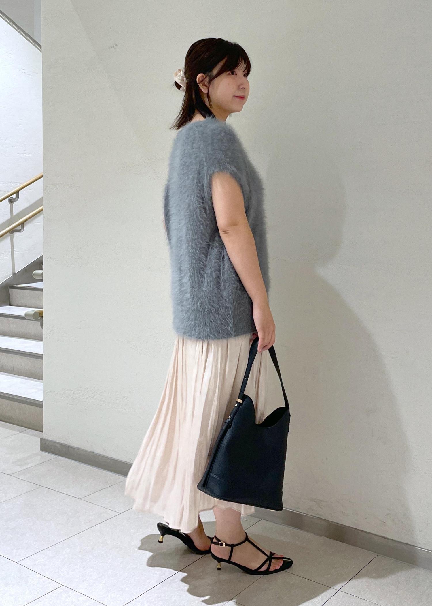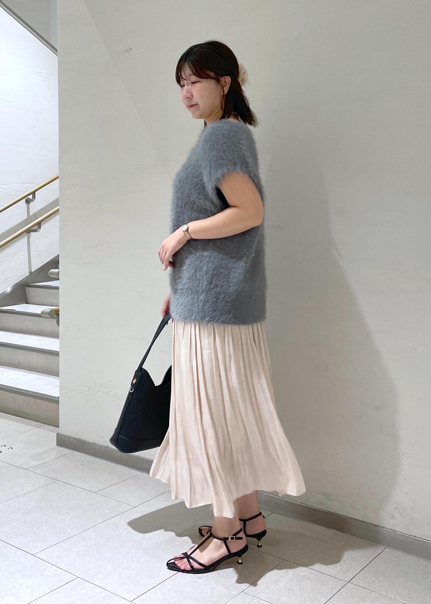 毛足のあるニットはボトムを軽やかにすると、8月からも着用でき重たくない印象にしてくれます。
