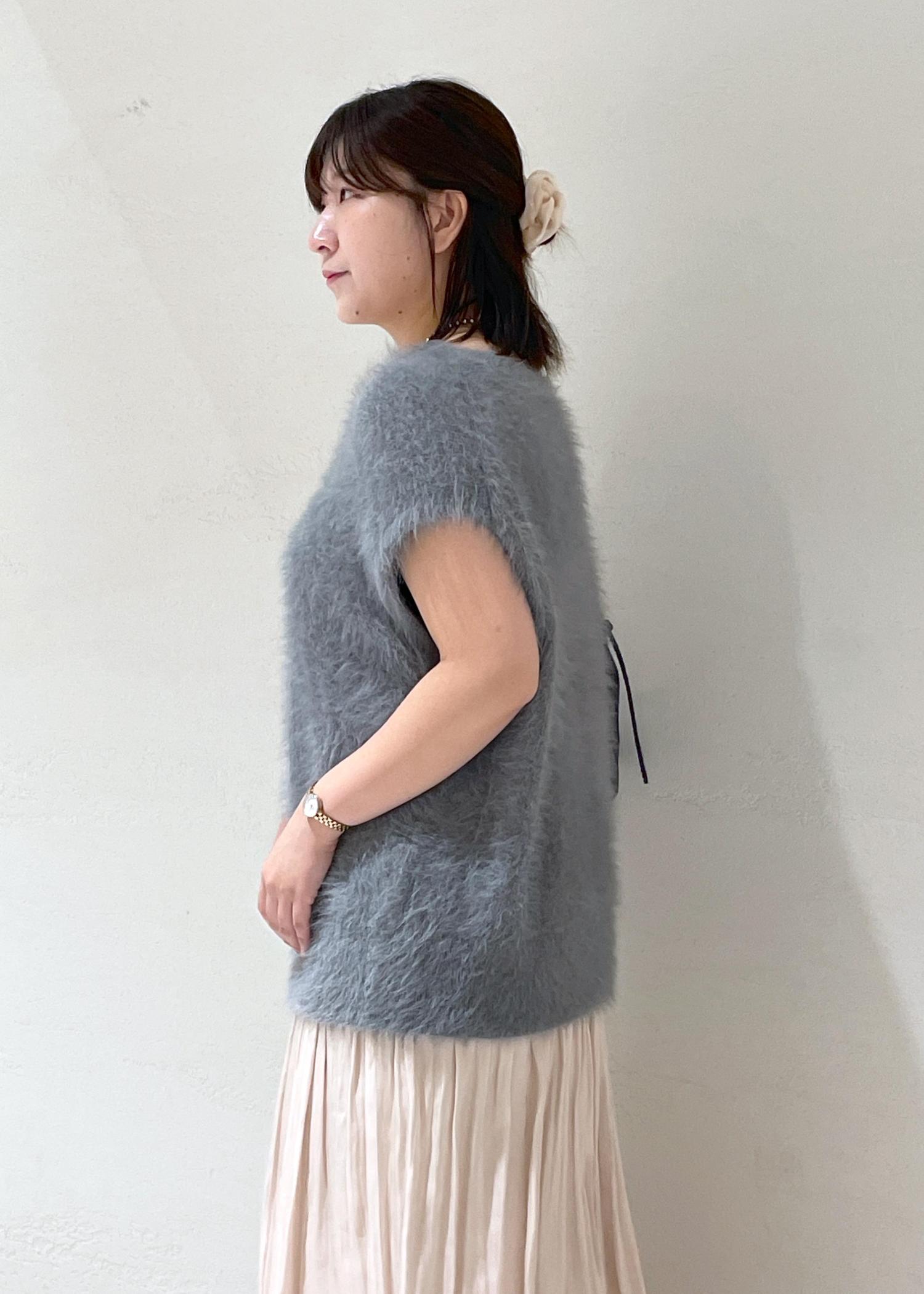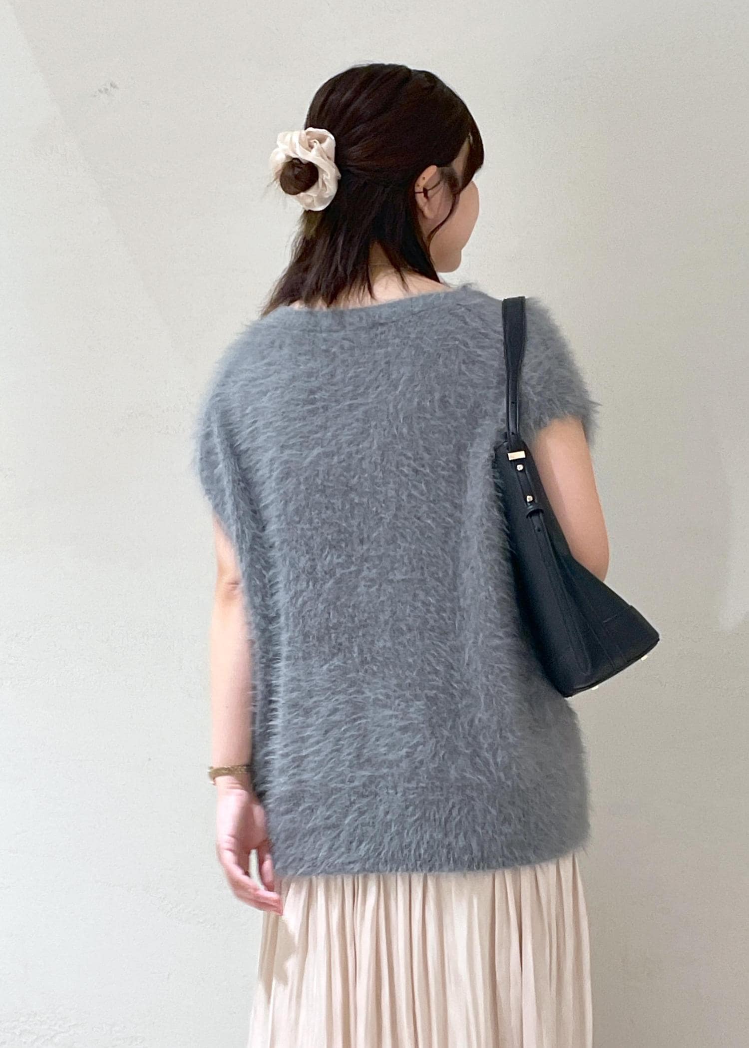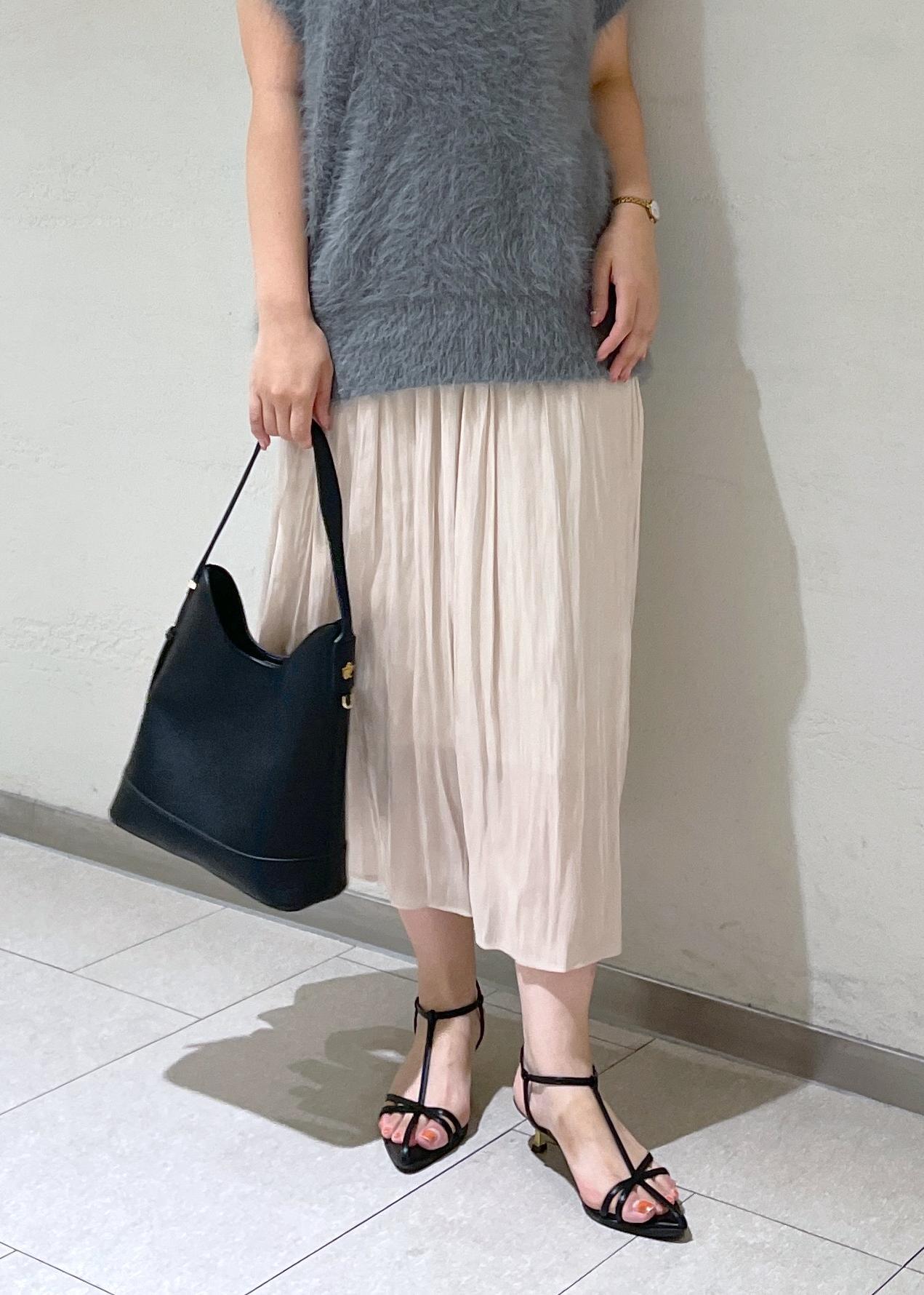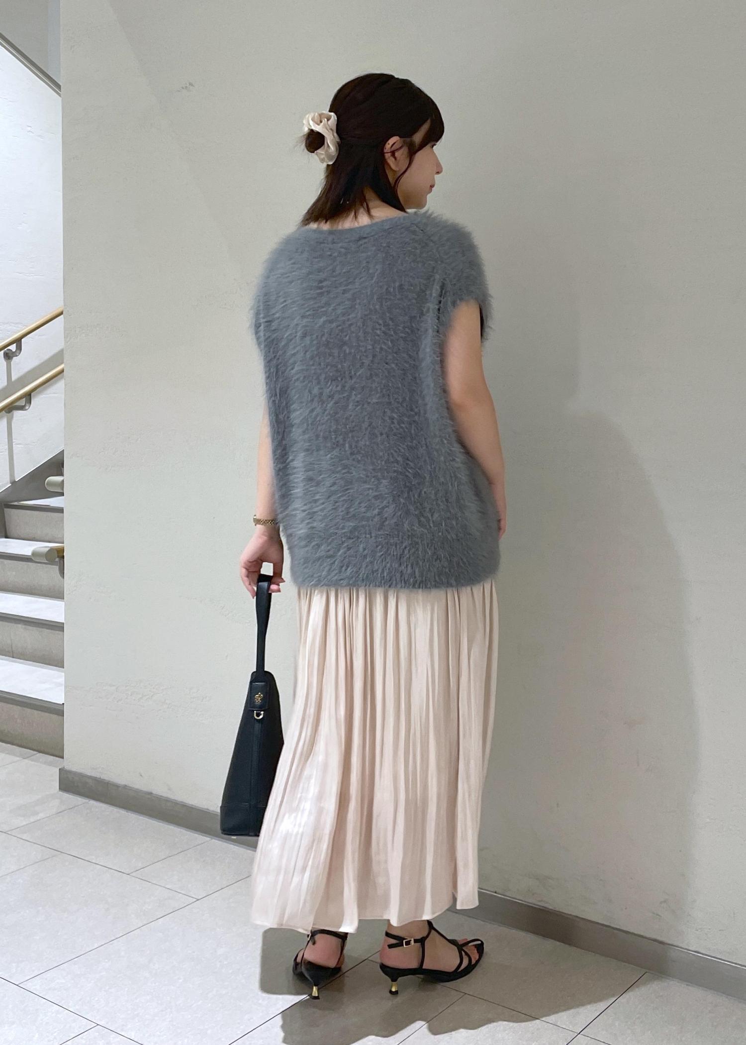 毛足のあるニットはボトムを軽やかにすると、8月からも着用でき重たくない印象にしてくれます。