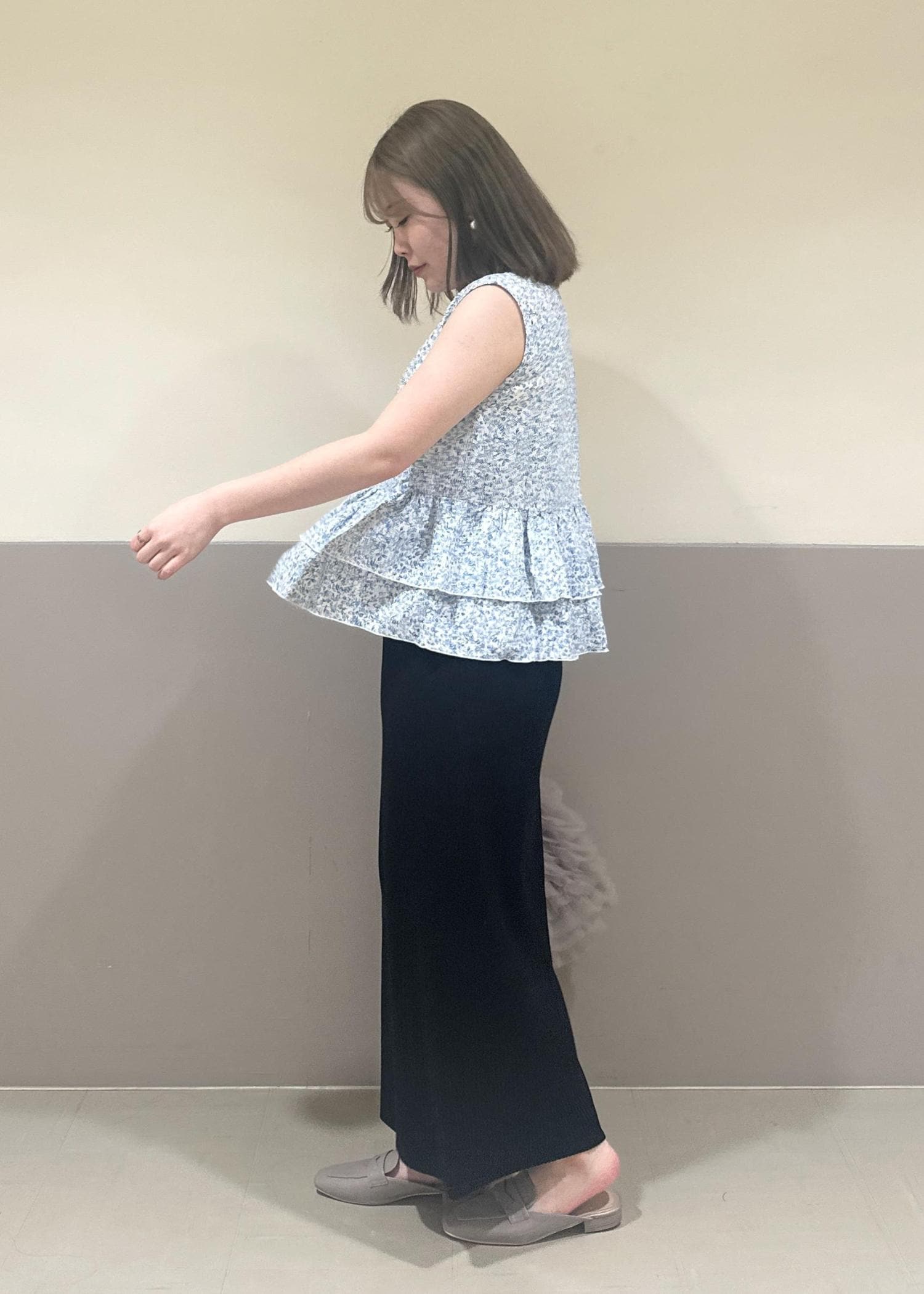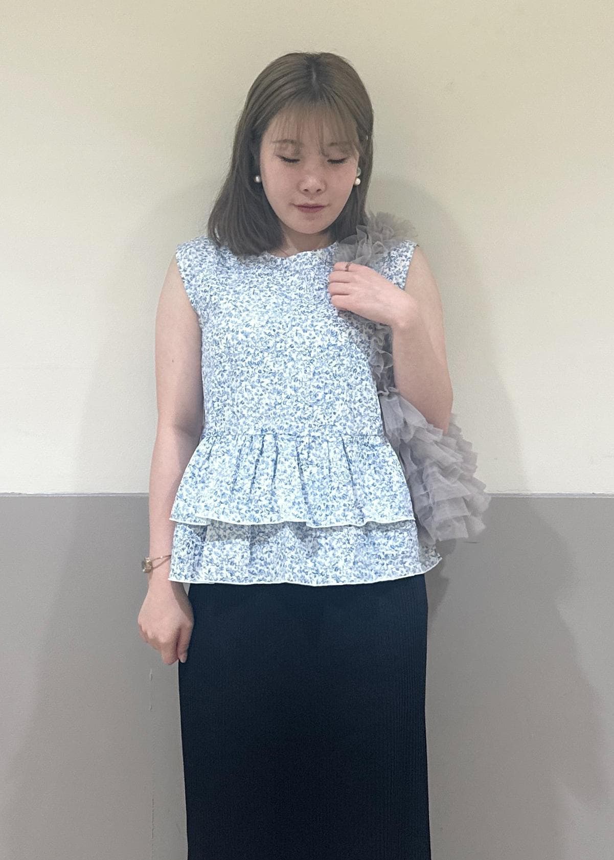2段のティアードが腰周りをカバーしてくれて、上半身に目線が行く1枚でサラッとコーディネートが決まるトップスです♪♪ -