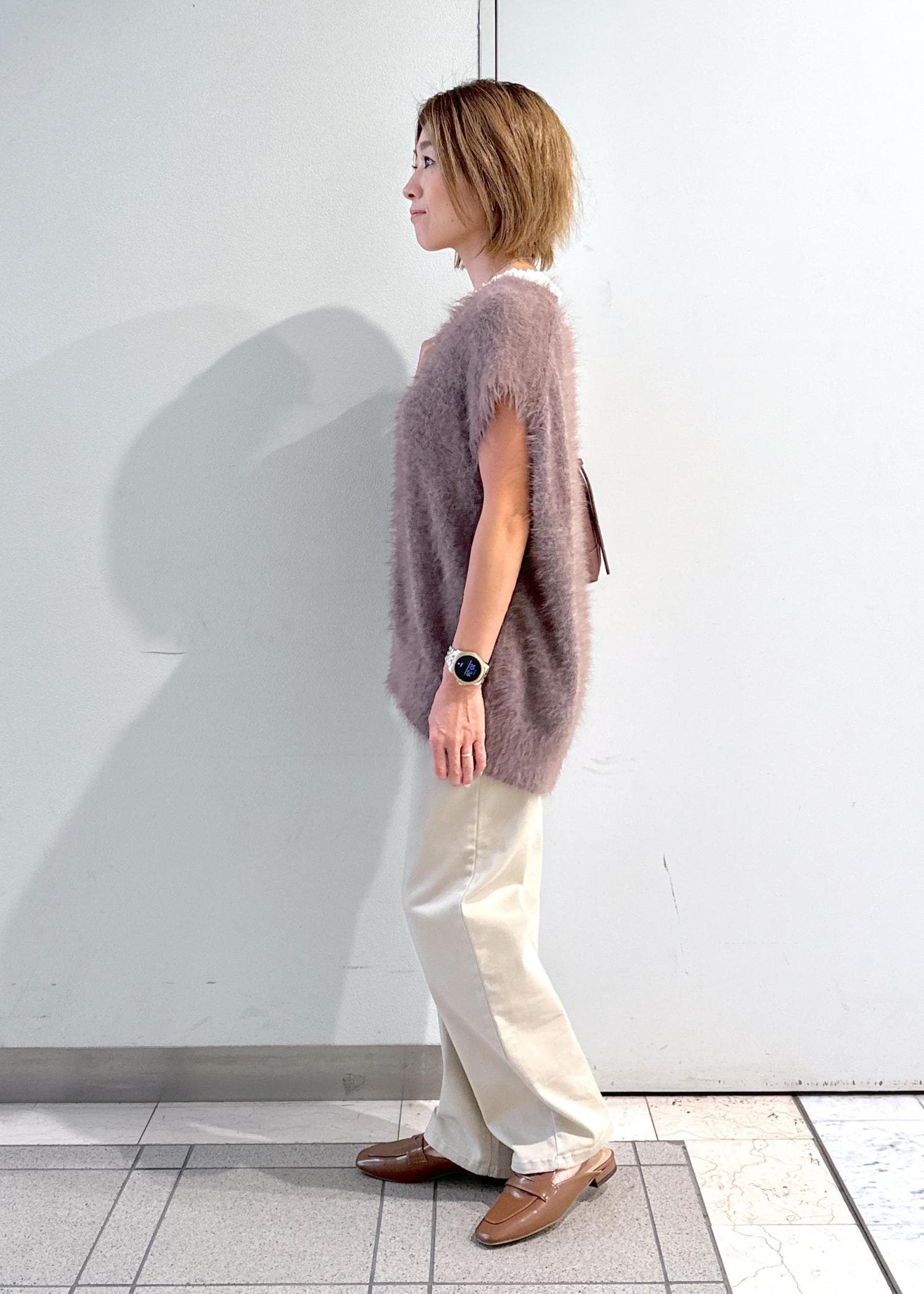 着丈もスッキリとしているので、スニーカーやフラットシューズの合わせもオススメです。 -