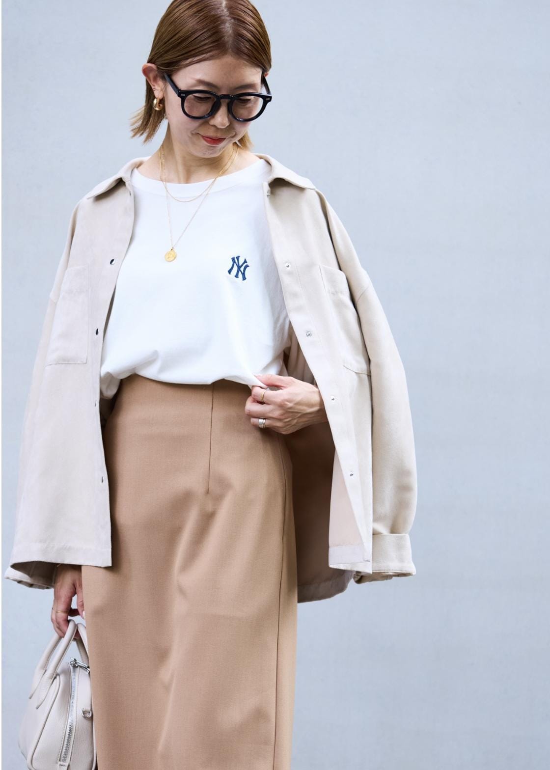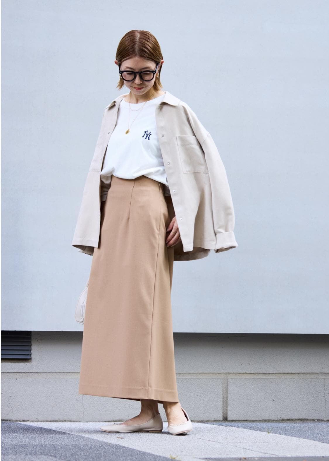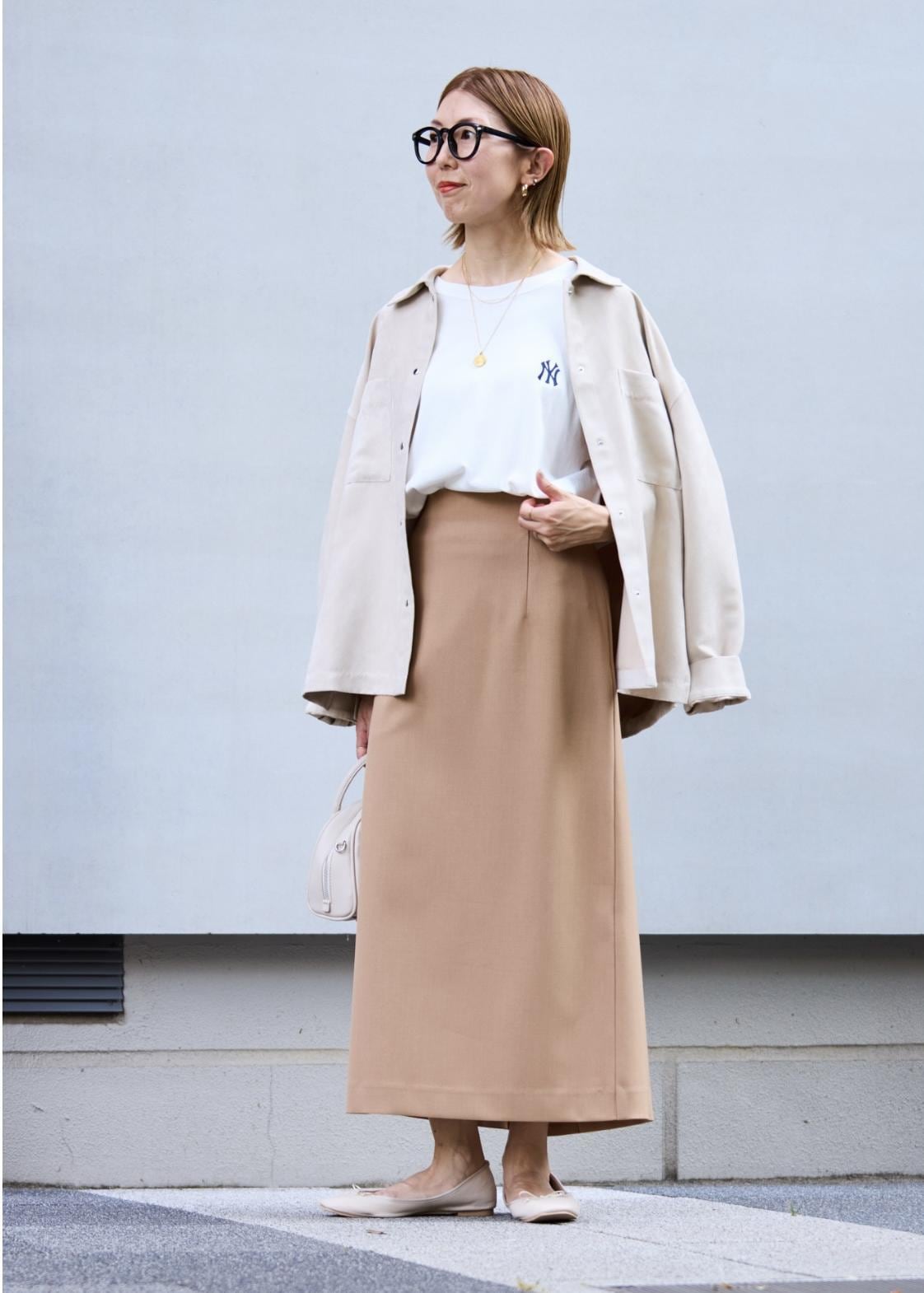 秋のはじまりに着たいベージュのワントーンスタイリング。