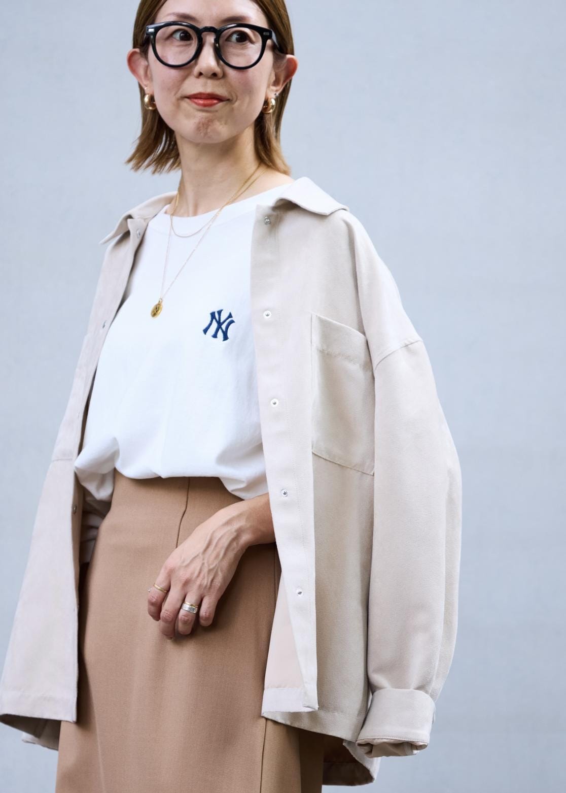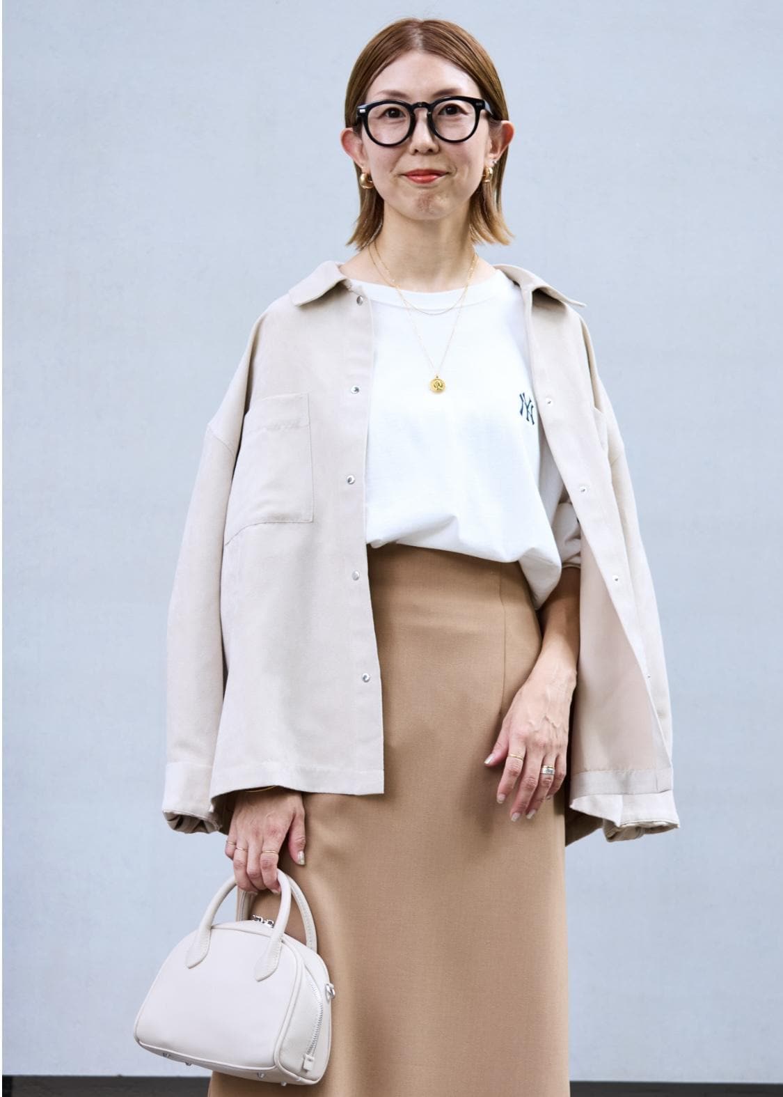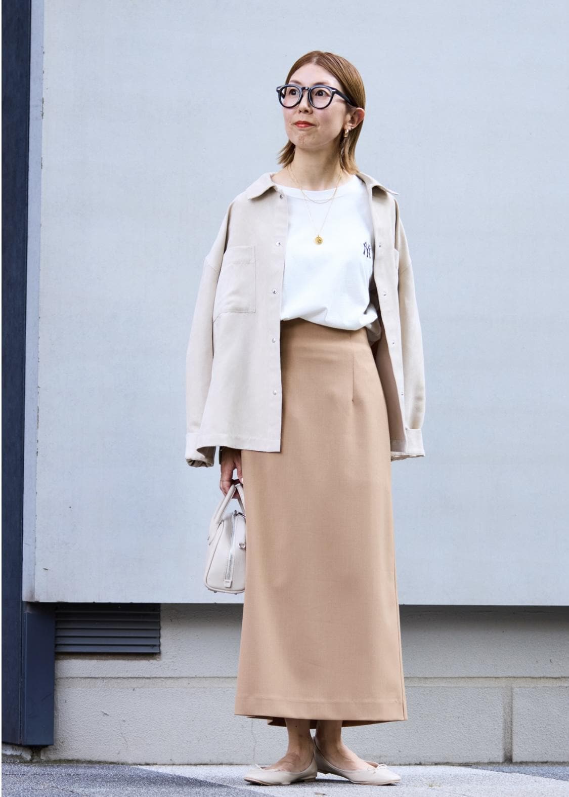 秋のはじまりに着たいベージュのワントーンスタイリング。