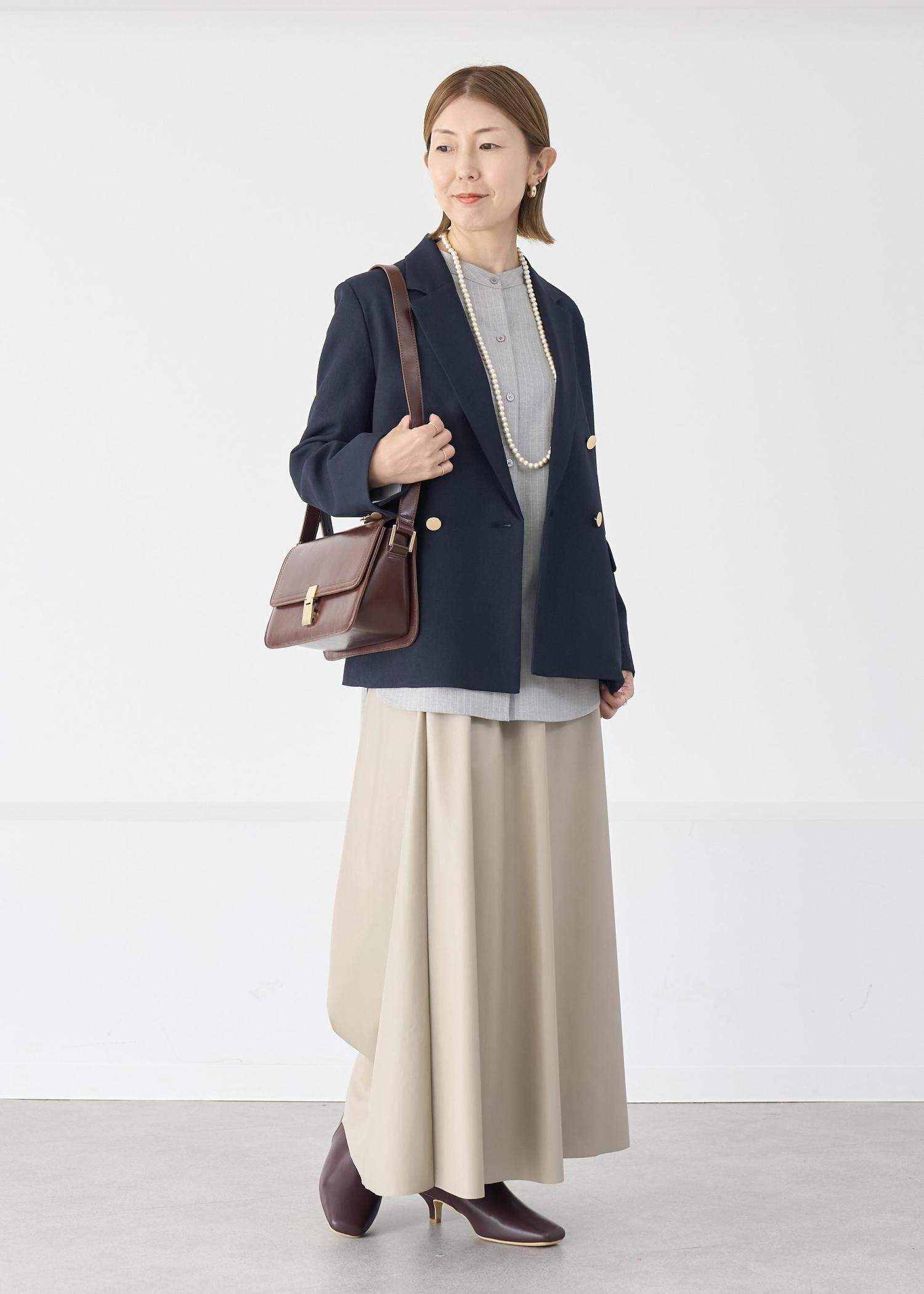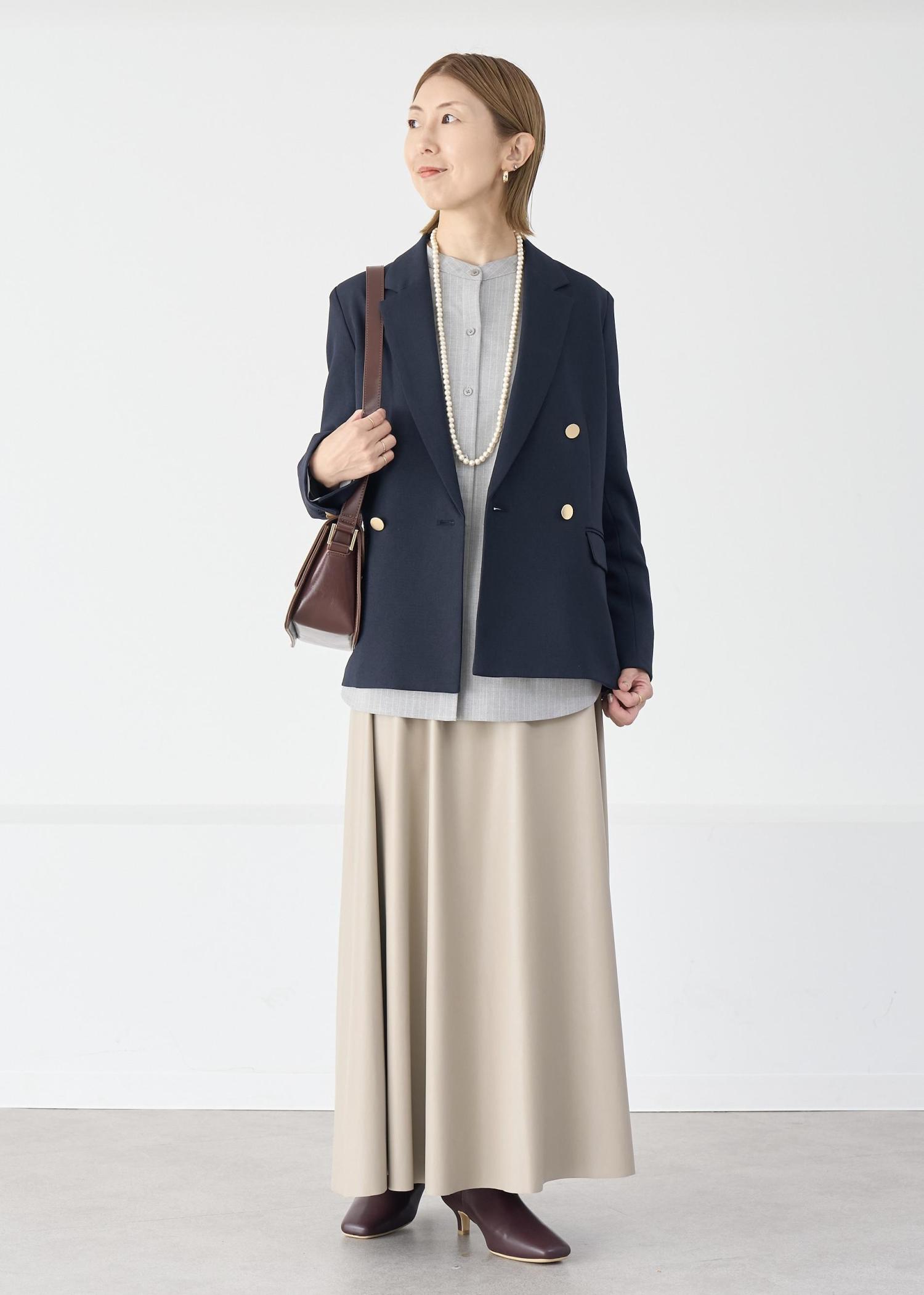 小柄さんが着られてる感じがなく、スッキリ着られるジャケットです。 -