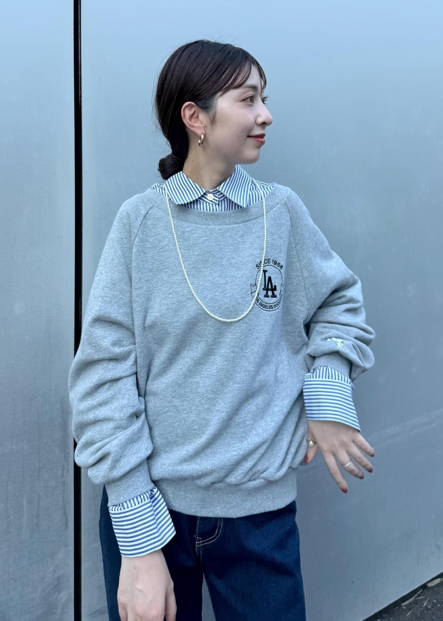 ROPÉ PICNIC【PEANUTS×MLB COLLECTION by ROPE' PICNIC】オフショルスウェットライトグレー / F¥5,489レビューコットン素材なので柔らかくコシのある生地です。身幅はシャツなどをレイヤード出来るサイズ感ですが着てみると割とコンパクトに見える印象です。裾、袖先はリブが効いているのでくしゅっとさせたり着丈バランスの微調整が可能。ヘルシーに着たい方は片側をオフショルにして着ることも出来ます♪
