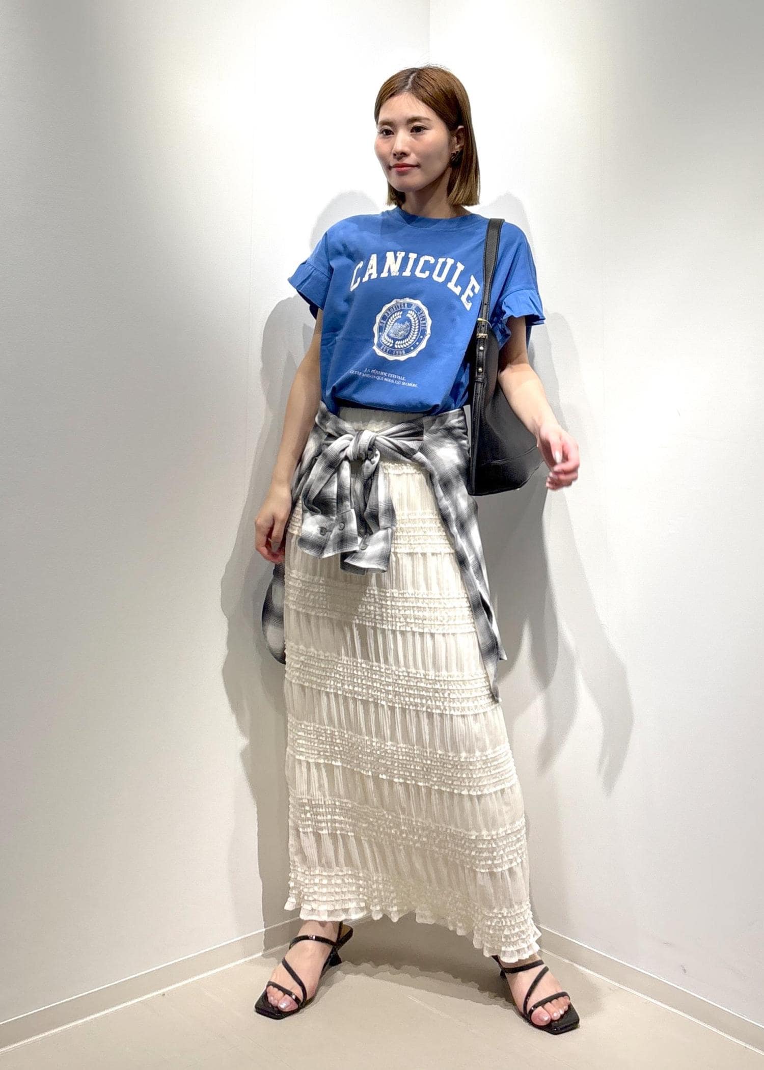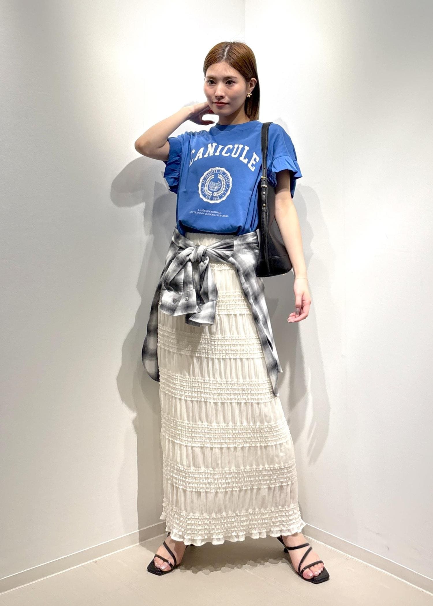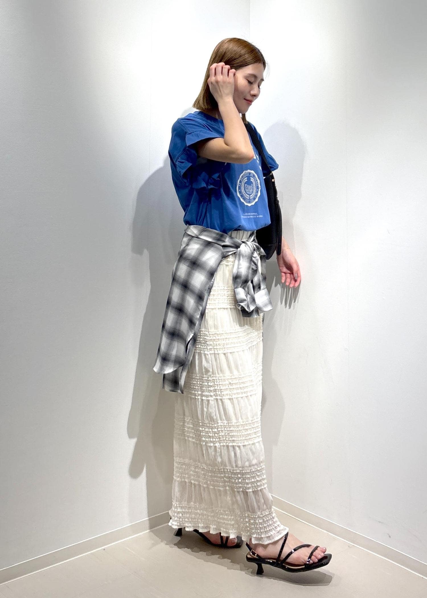 ROPÉ PICNICフリルギャザーロングスカートホワイト /¥6,490レビューウエストがゴムになっていて窮屈感を感じずストレスフリーでお召しいただけます。