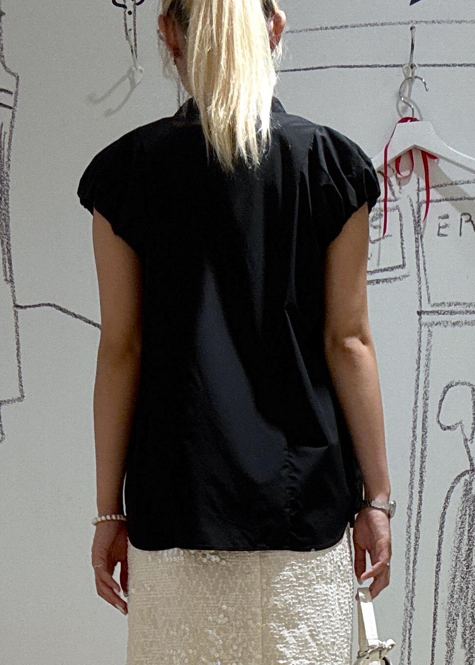 バルーンスリーブは二の腕のシルエットを隠しながら、シンプルなブラウスに可愛い印象を与えてくれます。 -