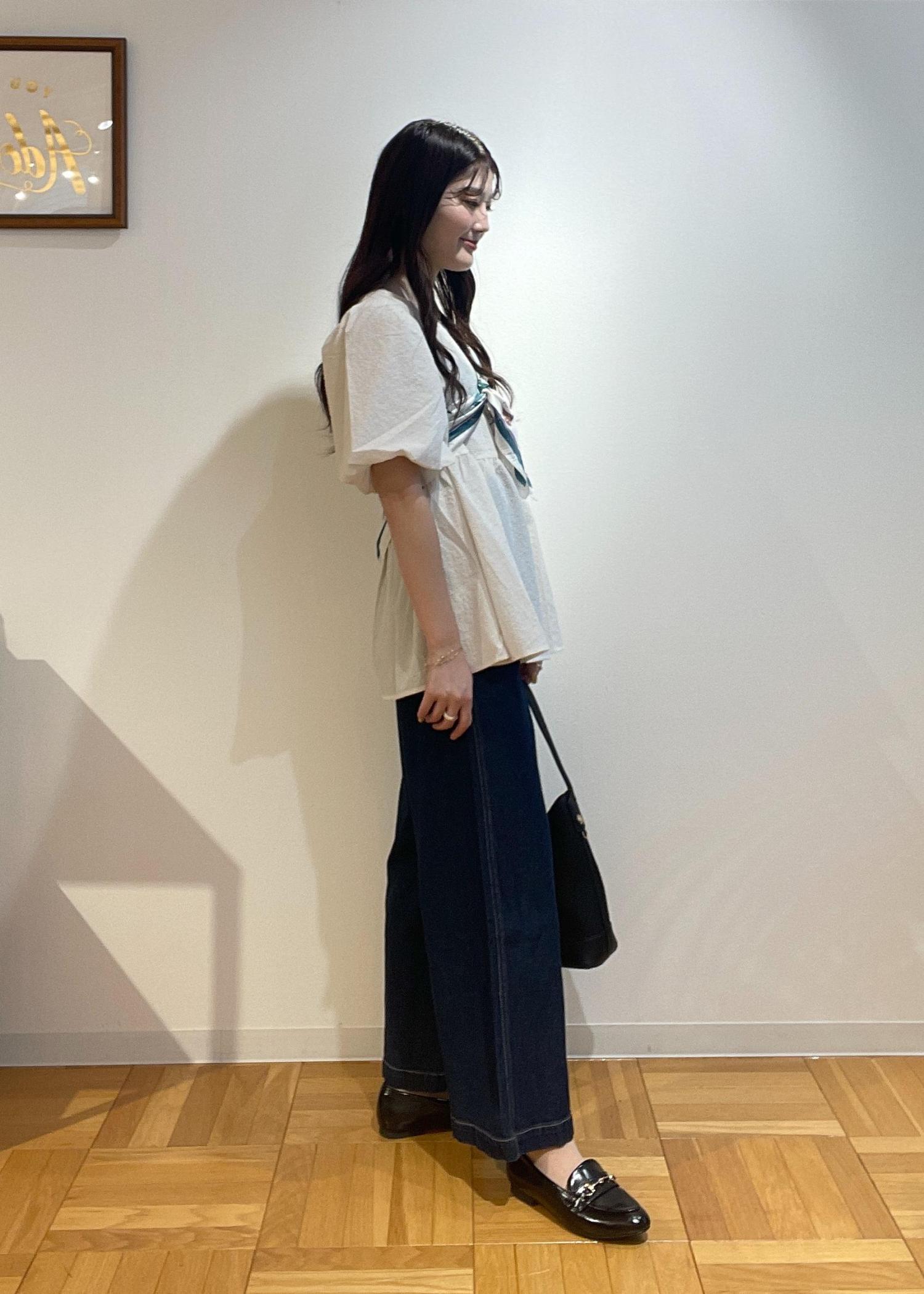 靴はローファーで引き締め、バッグと色味を揃えて、可愛すぎないコーディネートです!^ ^