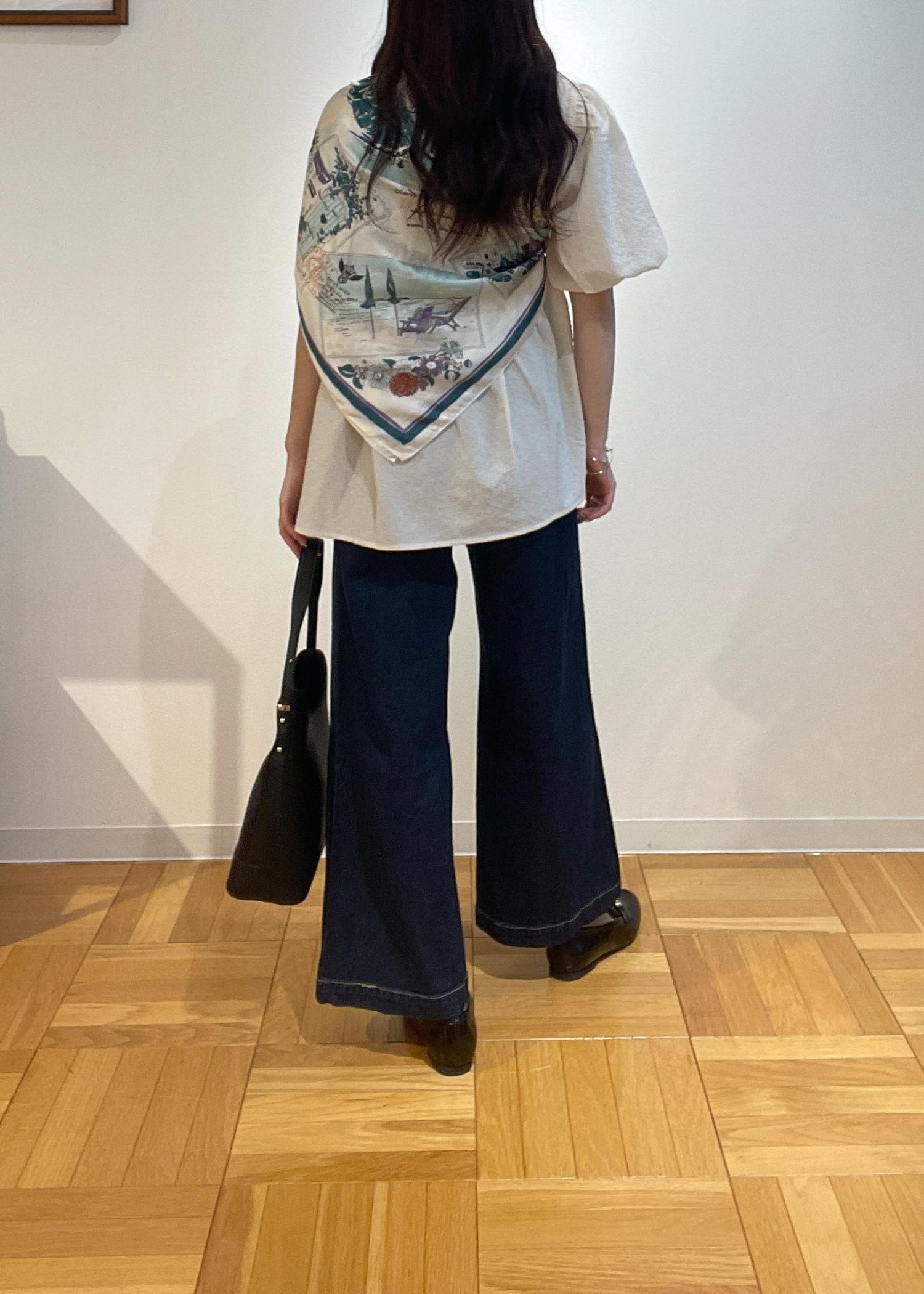 袖のバルーンを控えめに見せたい方にはこのようにスカーフを巻いてあげると控えめ見えします!◎