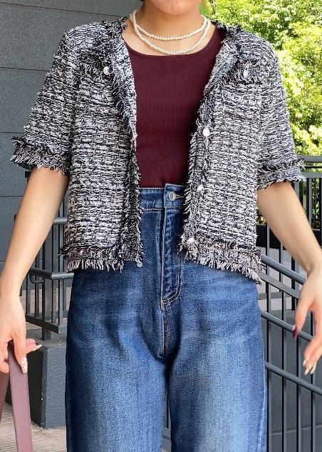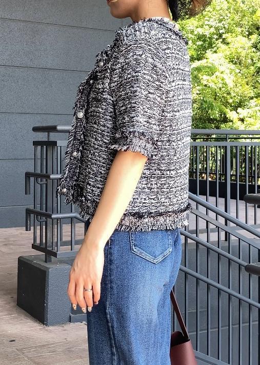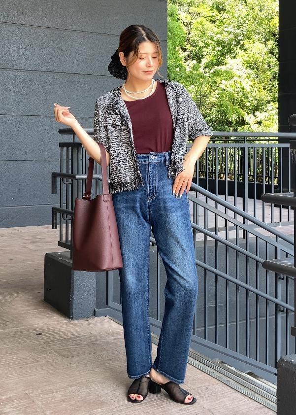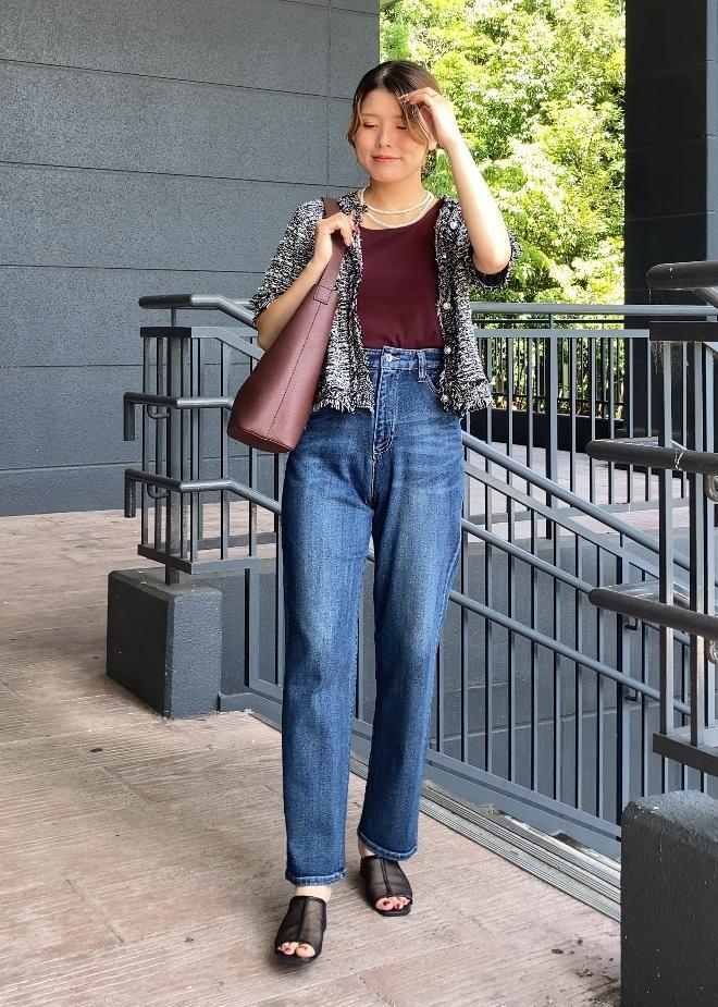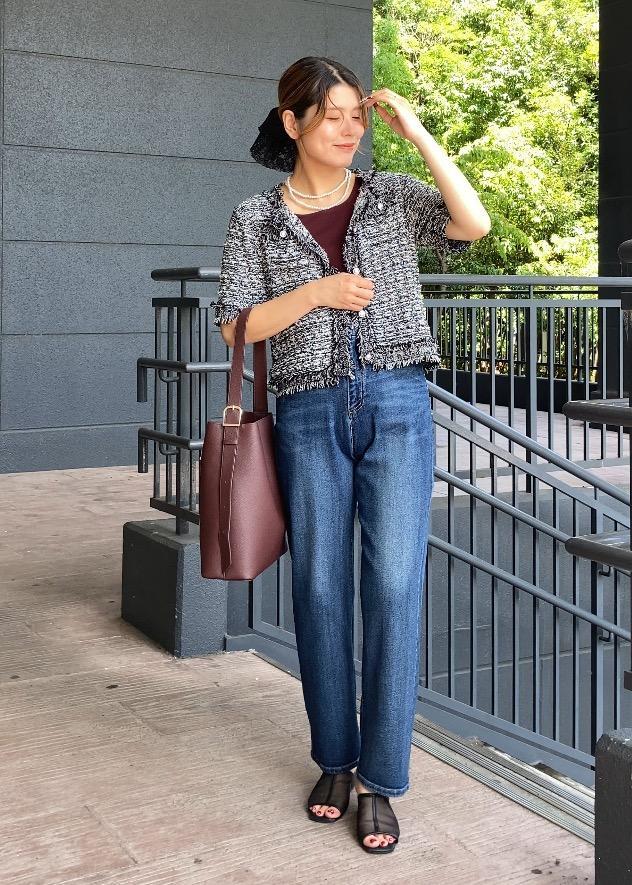 サマーツイードカーディガン×デニムの秋っぽコーデ