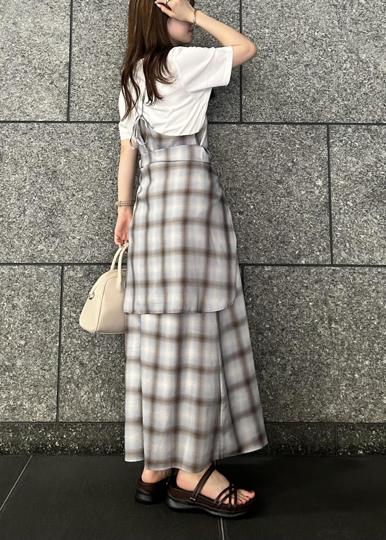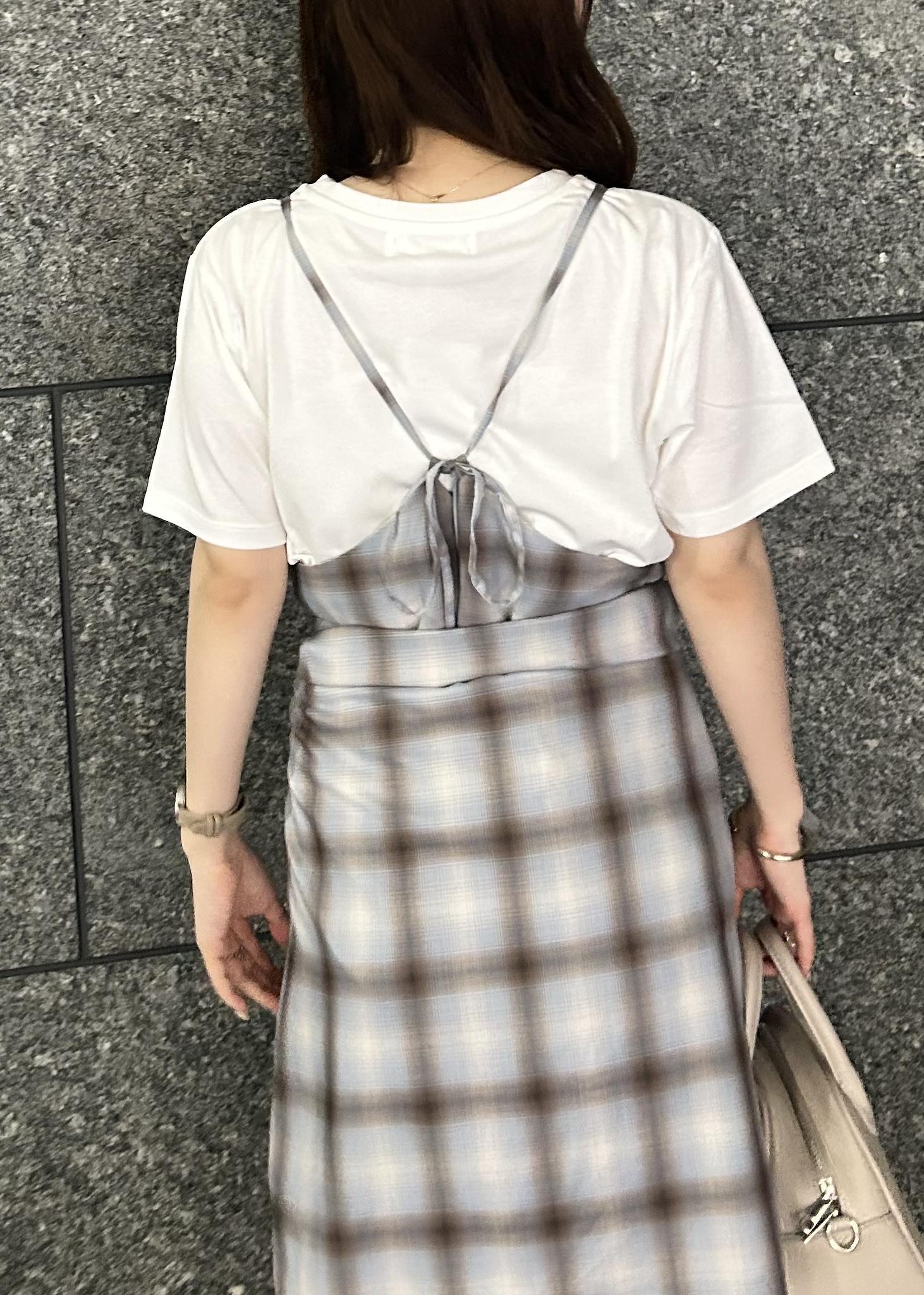 ROPÉ PICNICオンブレチェックキャミソールワンピースサックス / 38¥5,995レビューサラッとした素材感で着心地のいいキャミワンピースです。丈は長めでしたが後ろの紐を調節すると引きずることなく着こなせました。